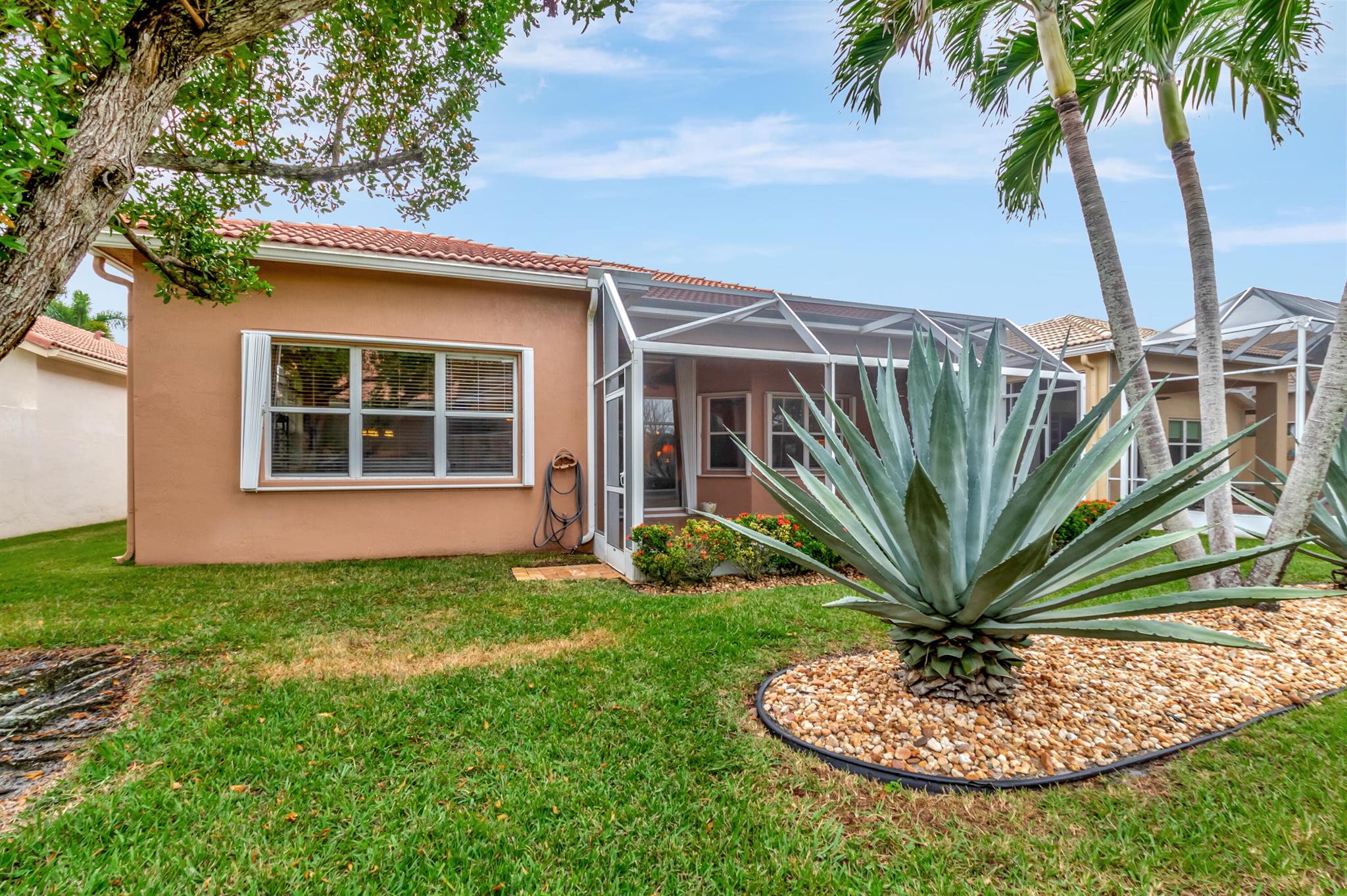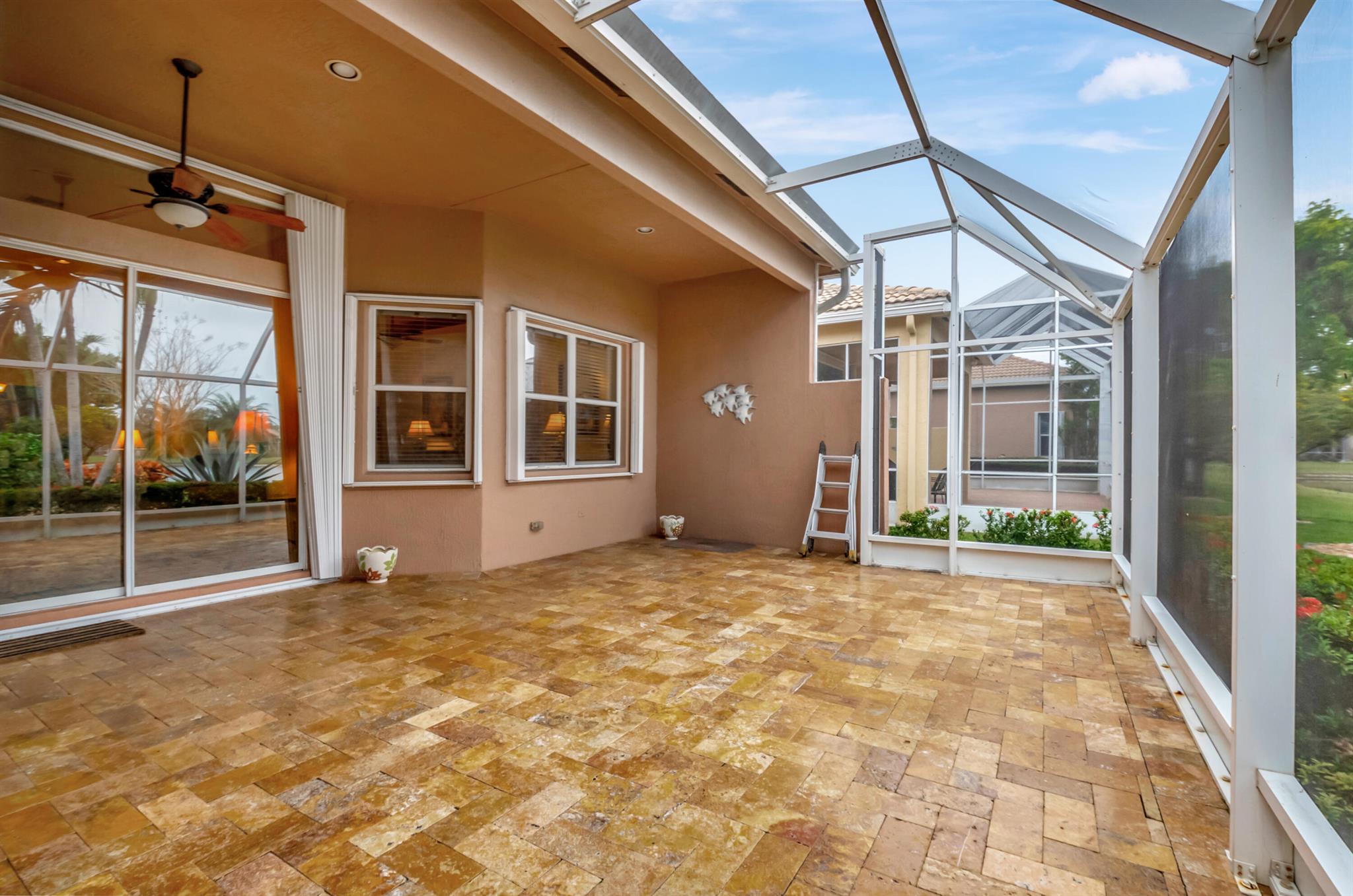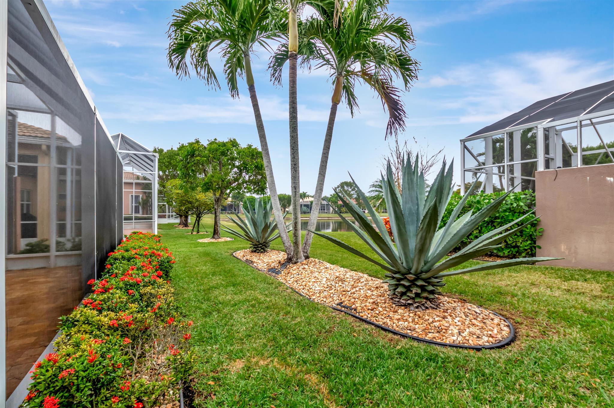 BEAUTIFULLY PROFESSIONALLY LANDSCAPED NOVARA MODEL. SCREENED ENTRY. NEUTRAL CERAMIC TILE SET ON A DIAGONAL (WITH MARBLE INSERTS & SET LIKE MARBLE). CROWN MOLDING, LARGE BASEBOARD, & NUMEROUS HI HATS IN EACH ROOM. THE OPEN & SPACIOUS KITCHEN HAS A TILED WITH MARBLE INSERTS SNACK BAR, UPGRADED GRANITE, GRANITE BACKSPLASH, UNDERMOUNT S/S 90/10 SINK . THE MASTER BATH HAS WOOD CABINETS, GORGEOUS TILE TO CEILING WITH LISTELLO IN THE SHOWER, UPGRADED LIGHTING & PLUMBING FIXTURES & LARGE MIRRORS. THE GUEST BATHROOM ALSO HAS TILE TO THE CEILING IN THE SHOWER WITH A BEAUTIFUL LISTELLO. A/C IS 2021. EXTENDED PATIO WITH UPGRADED PAVERS. THE HOUSE HAS LEADERS/GUTTERS. FURNITURE IS INCLUDED IN PRICE!! **EXCLUDE ICE MAKER & GARBAGE DISPOSAL**. SOLD AS IS WITH THE RIGHT TO INSPECT. ALL INFO DEEMED