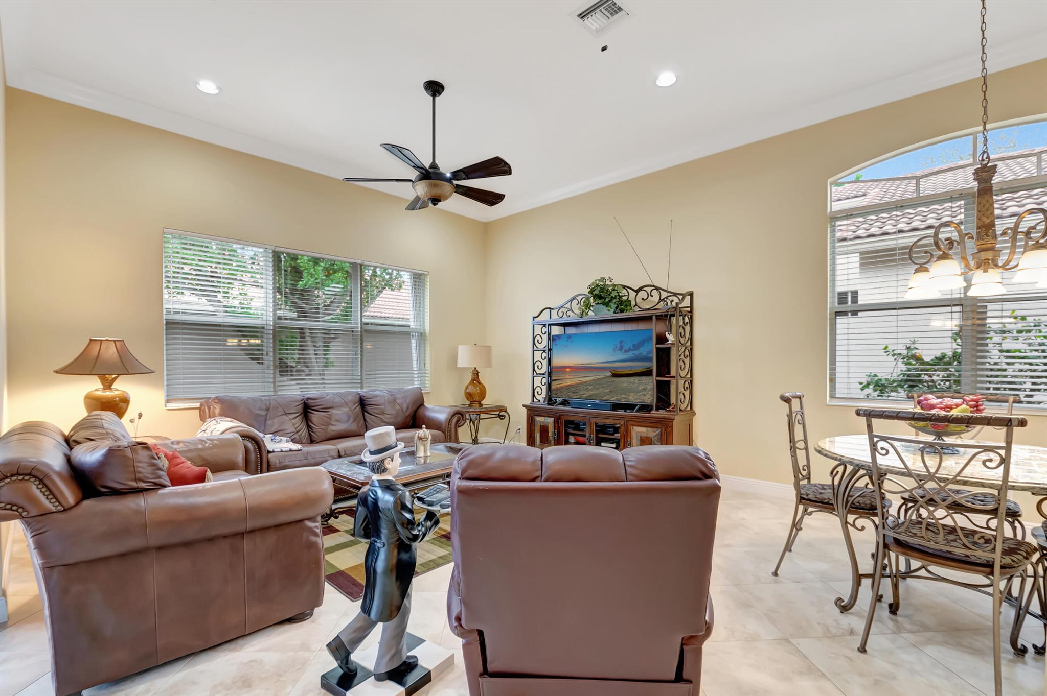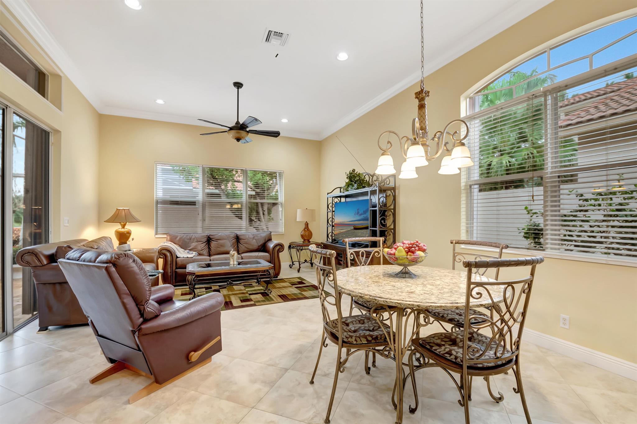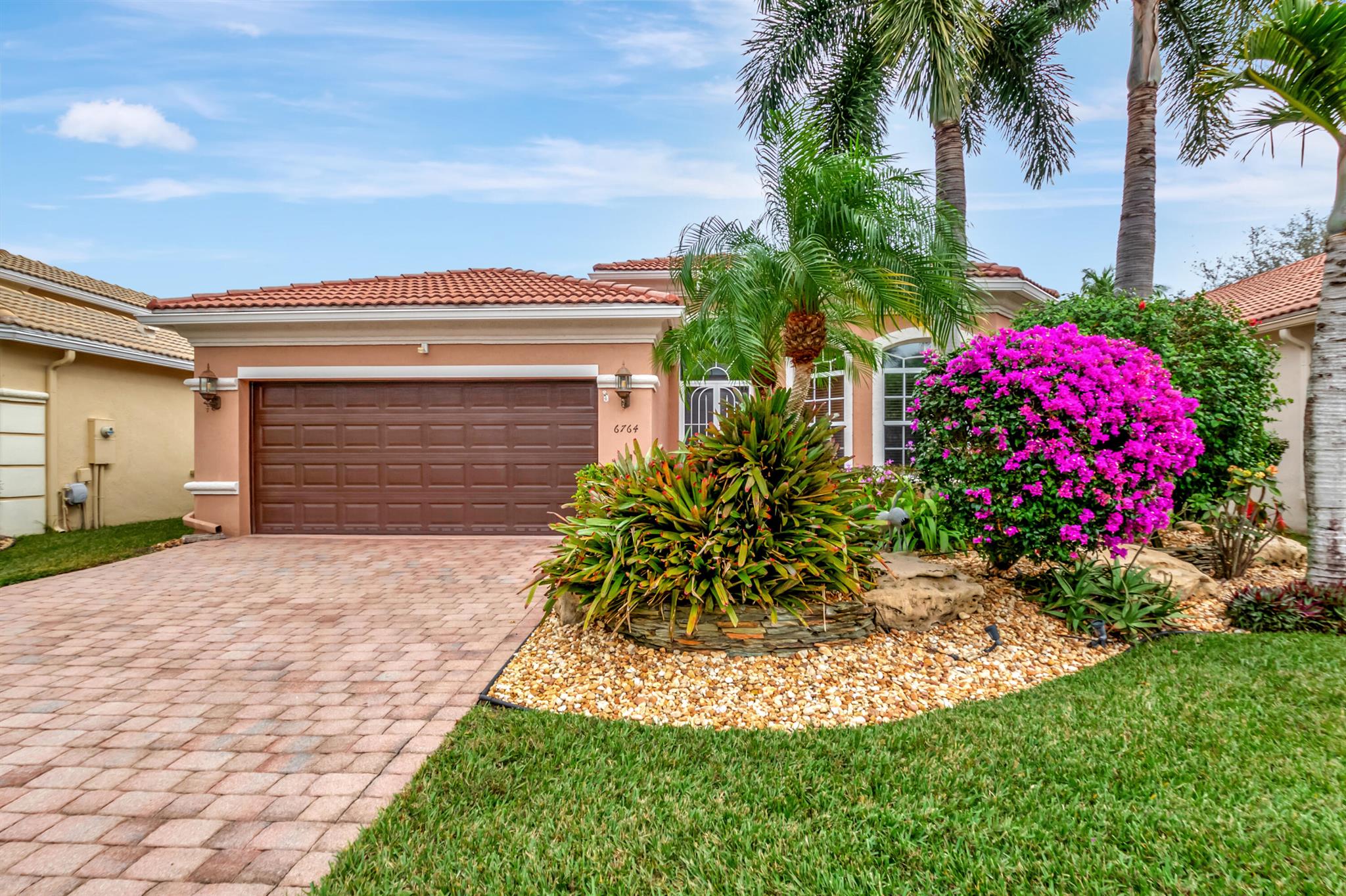 BEAUTIFULLY PROFESSIONALLY LANDSCAPED NOVARA MODEL. SCREENED ENTRY. NEUTRAL CERAMIC TILE SET ON A DIAGONAL (WITH MARBLE INSERTS & SET LIKE MARBLE). CROWN MOLDING, LARGE BASEBOARD, & NUMEROUS HI HATS IN EACH ROOM. THE OPEN & SPACIOUS KITCHEN HAS A TILED WITH MARBLE INSERTS SNACK BAR, UPGRADED GRANITE, GRANITE BACKSPLASH, UNDERMOUNT S/S 90/10 SINK . THE MASTER BATH HAS WOOD CABINETS, GORGEOUS TILE TO CEILING WITH LISTELLO IN THE SHOWER, UPGRADED LIGHTING & PLUMBING FIXTURES & LARGE MIRRORS. THE GUEST BATHROOM ALSO HAS TILE TO THE CEILING IN THE SHOWER WITH A BEAUTIFUL LISTELLO. A/C IS 2021. EXTENDED PATIO WITH UPGRADED PAVERS. THE HOUSE HAS LEADERS/GUTTERS. FURNITURE IS INCLUDED IN PRICE!! **EXCLUDE ICE MAKER & GARBAGE DISPOSAL**. SOLD AS IS WITH THE RIGHT TO INSPECT. ALL INFO DEEMED