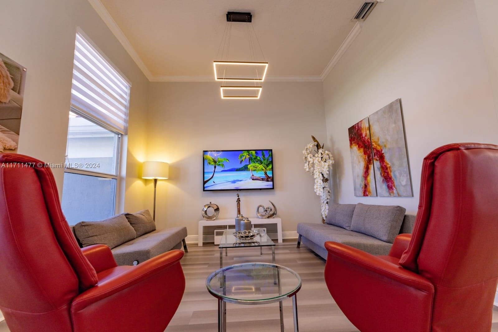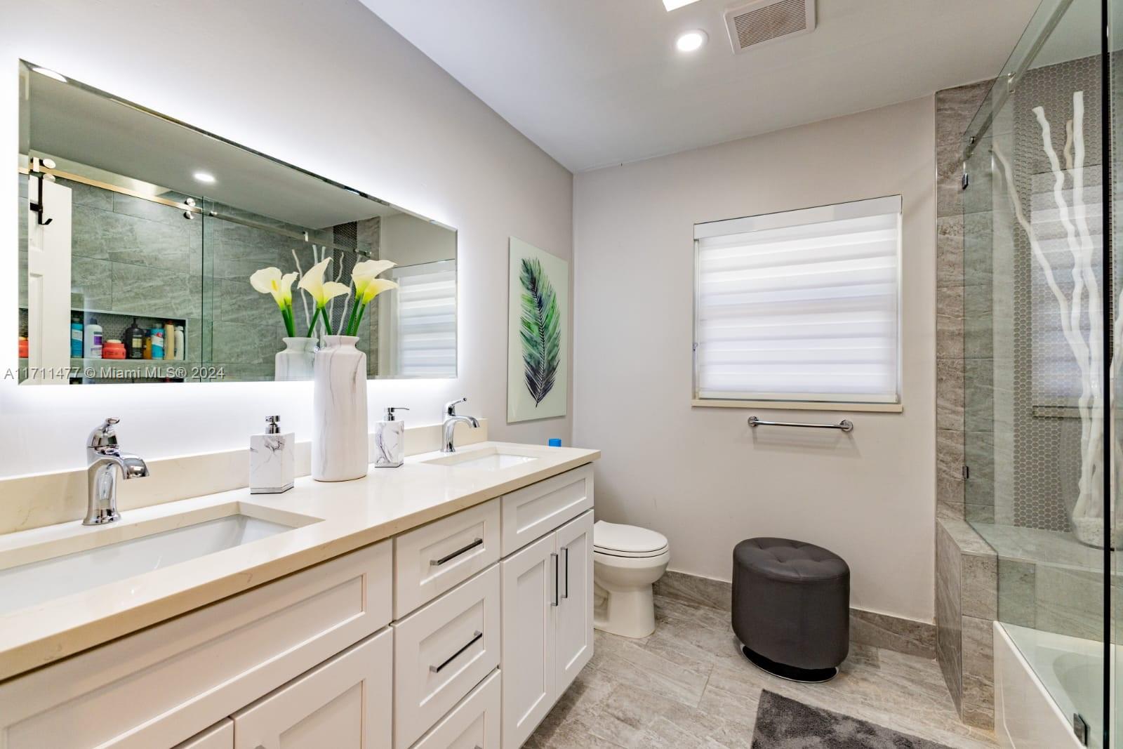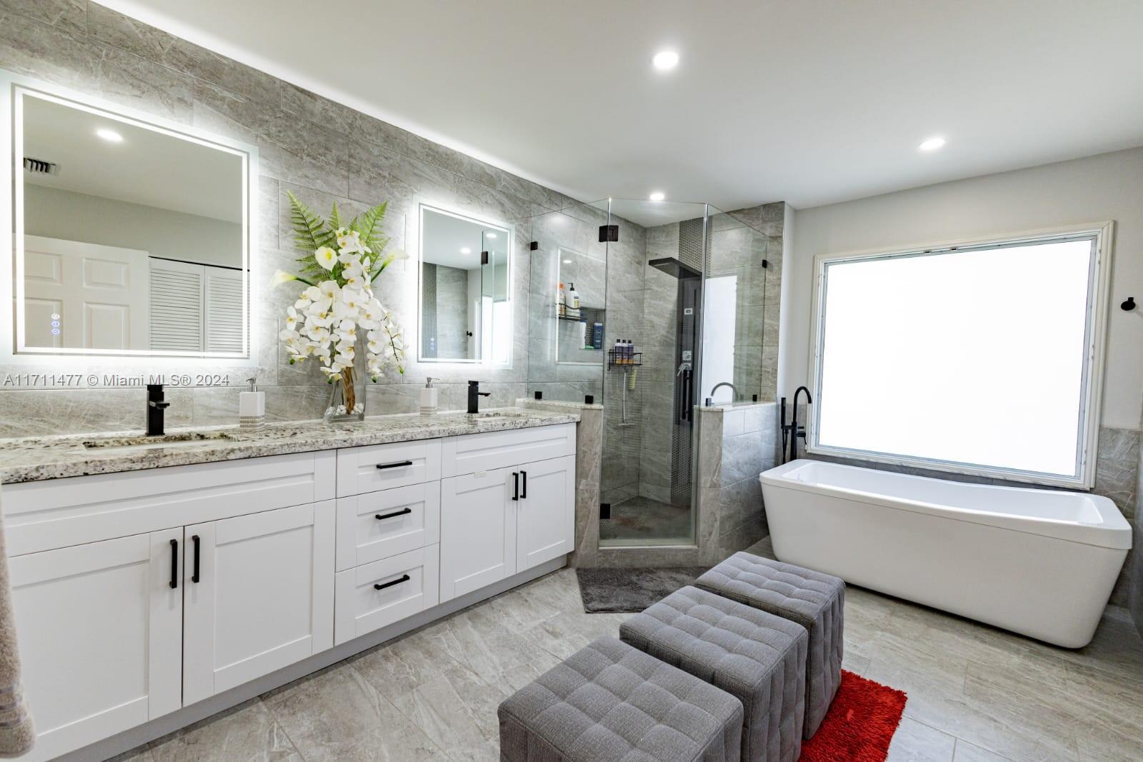 Welcome to this fully remodeled home offers a blend of elegance and comfort, featuring 5 bedrooms, 3 bathrooms. Upon entry, you are greeted by a Living room & grand open concept boasting a dramatic high ceiling, creating an impressive sense of space and light. Adjacent is the office which can be used as a room. Enjoy the dream master suite with modern's bathtub and shower in the bathroom. The kitchen offers white shaker cabinets, stunning glass tile backsplash and ample quartz countertops, a center island, stainless steel appliances, high hat lighting, a convenient coffee station inside cabinets. The heart of the home is the inviting family room, ideal for relaxation and entertainment. Other highlights include the spacious backyard with brand new pool and enclosure.