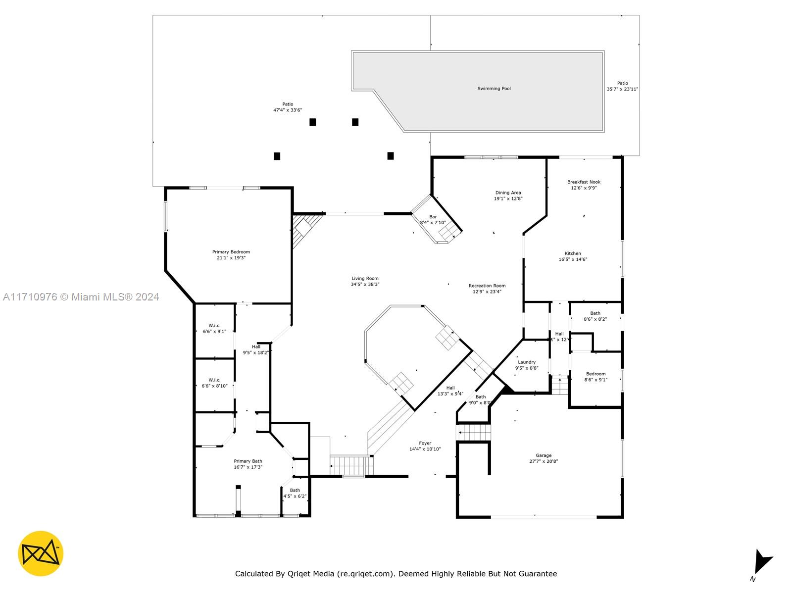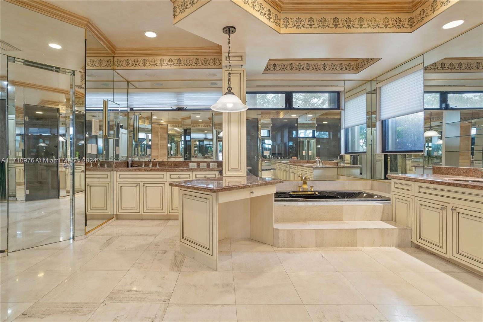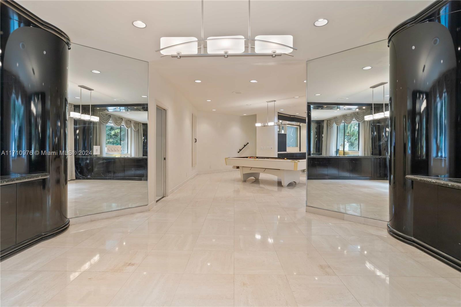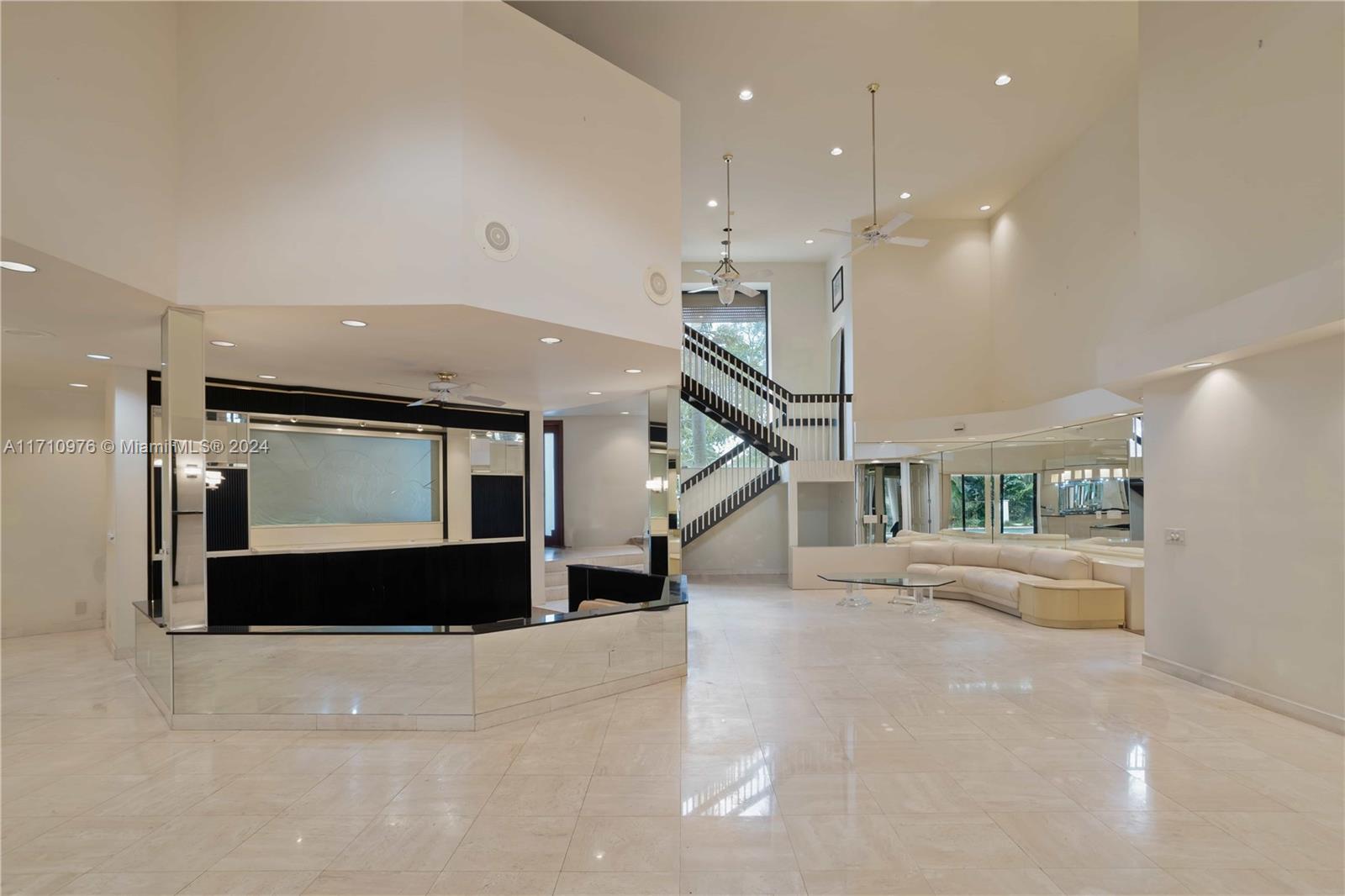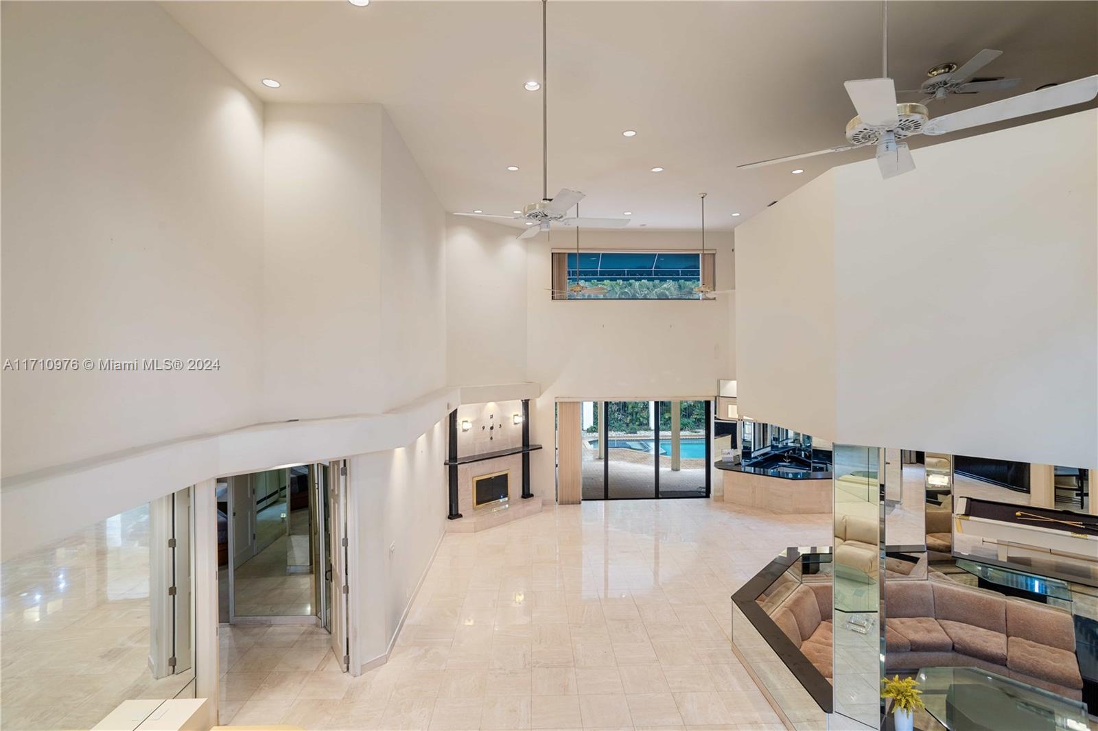 This exceptional residence, located in prestigious Jacaranda Country Club in Plantation, Florida, is truly one of a kind. Upon entering through the elevated entrance, you'll immediately sense a welcoming atmosphere. The expansive great room, featuring impressive 22-foot ceilings, includes five distinct areas designed for entertainment. A custom-built space is ready for your theater room, while a magnificent wood-burning fireplace creates a warm, relaxed environment. The wet bar, equipped with a refrigerator, ice maker, and ample seating around granite countertops, is perfect for hosting gatherings. The pool table and its equipment are also included. The open-concept layout flows effortlessly to the expansive outdoor patio, situated in a great golf course community, this home is a must-see!