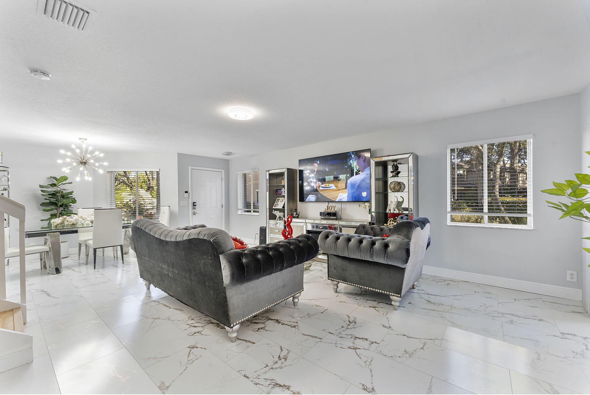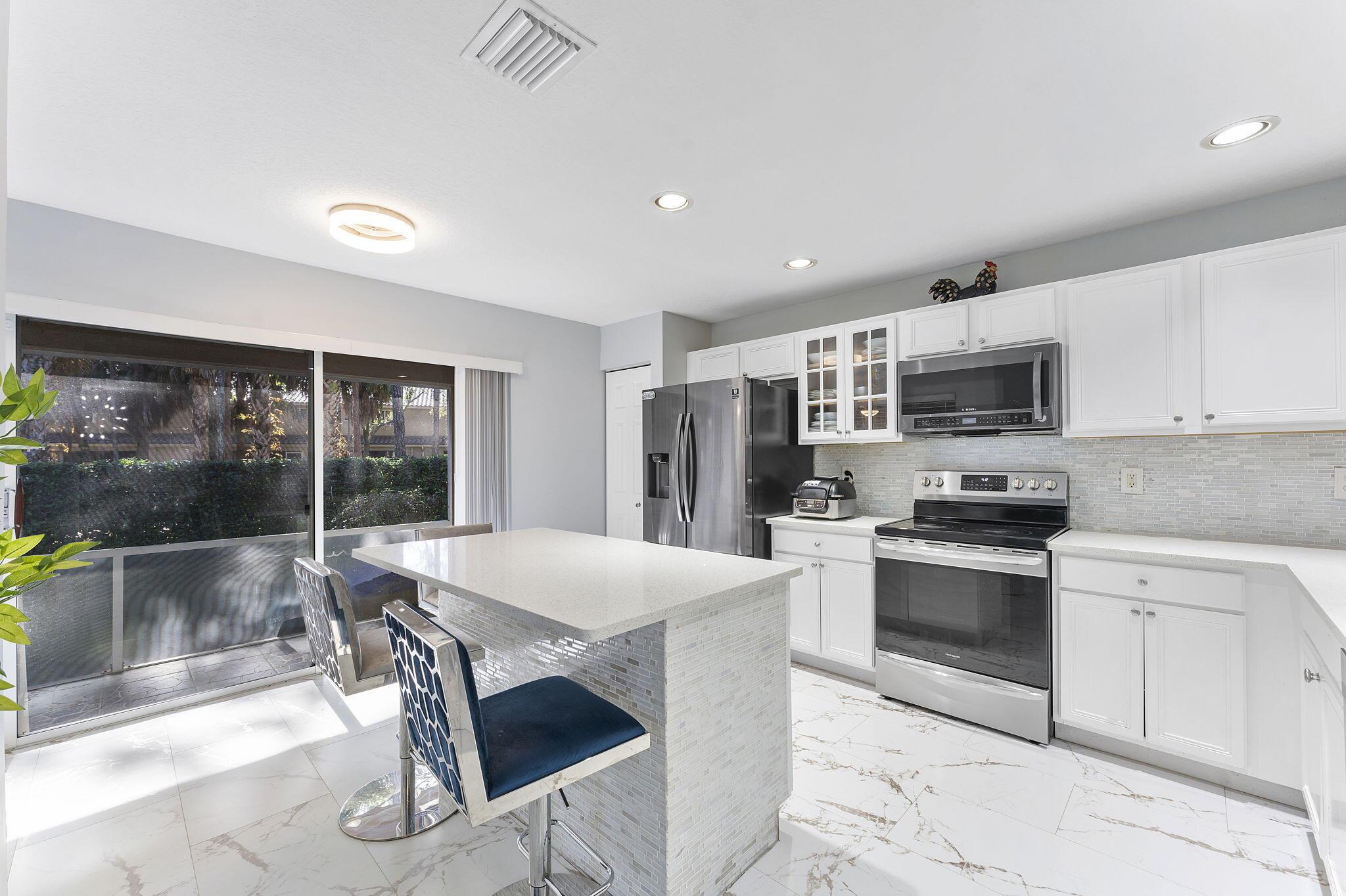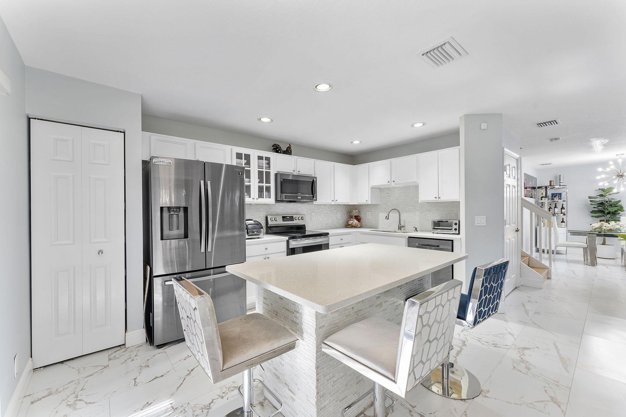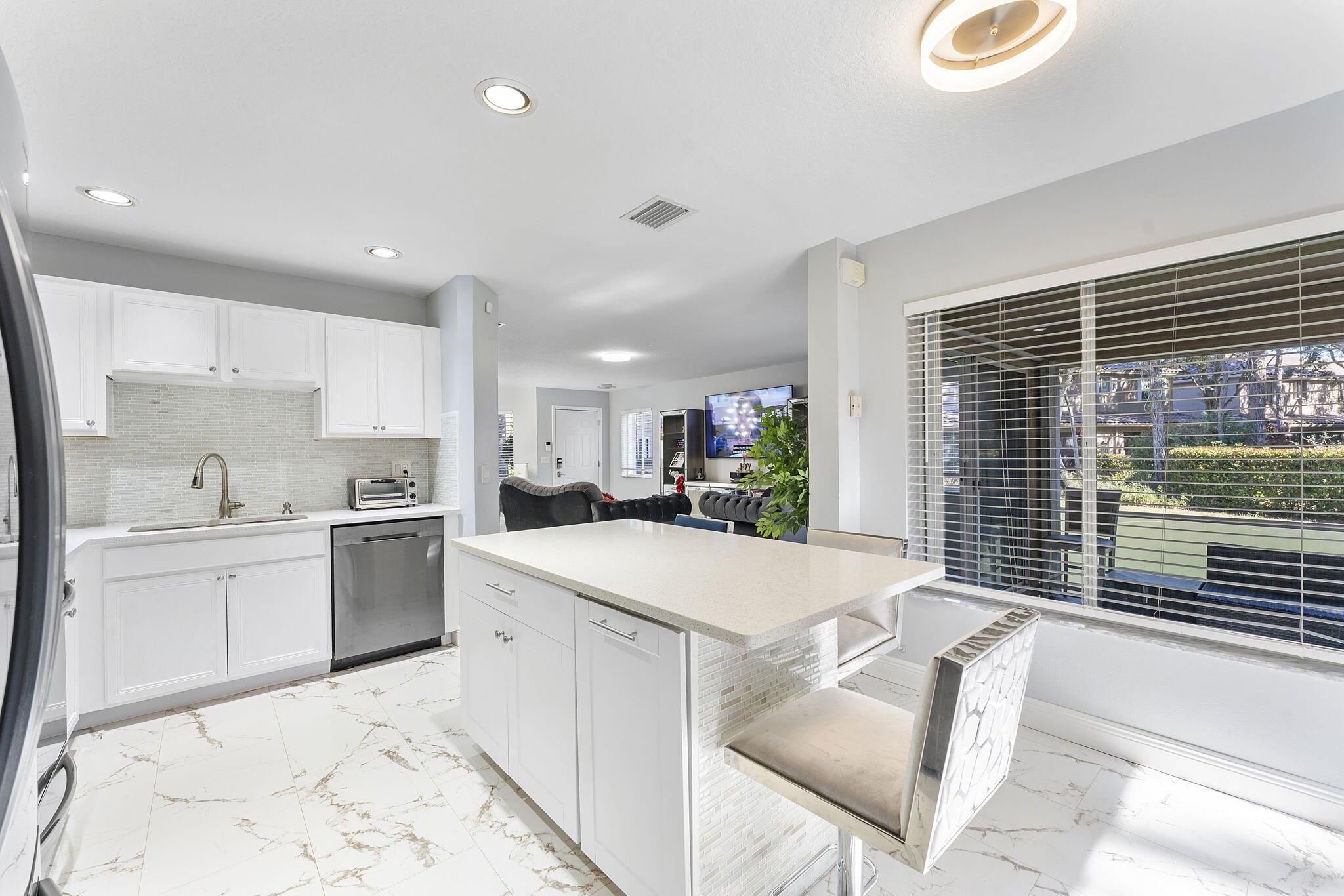 Experience modern living in this stunning 3-bedroom, 2.5-bathroom corner-unit townhouse with a brand-new roof and a 1-car garage. Nestled in a quiet community, this home offers an abundance of natural light, sleek finishes, and versatile spaces to meet all your needs.The open-concept living area is perfect for entertaining, with gleaming marble-like tile floors and a contemporary kitchen featuring stainless steel appliances, white cabinetry, and a quartz island. The dining area flows seamlessly to the screened-in patio, where you can relax and enjoy views of the lush greenery.Upstairs, the spacious primary suite includes a walk-in closet and an en-suite bathroom with dual vanities. Two additional bedrooms, a large laundry room, and a versatile loft complete the second floor.