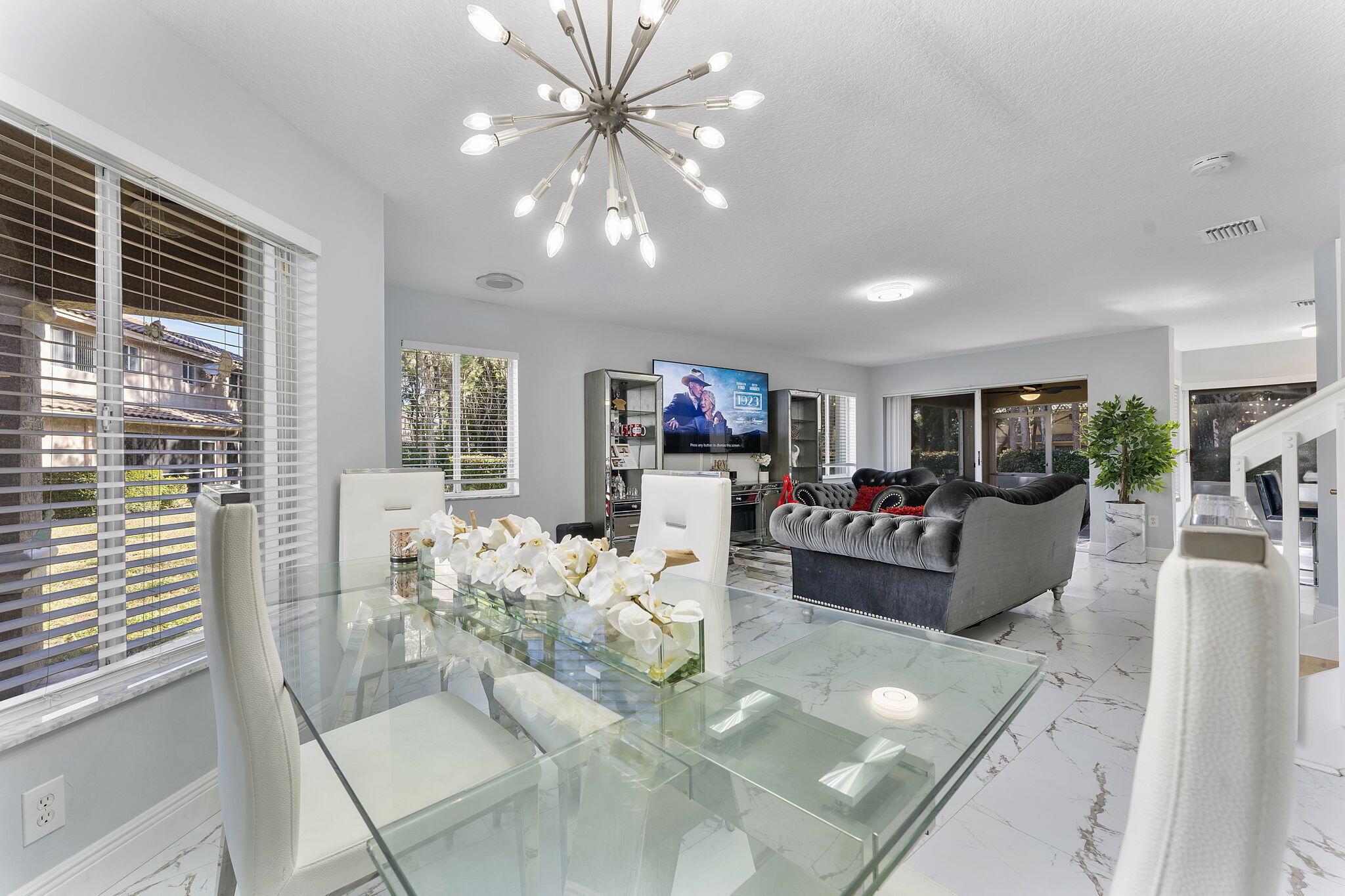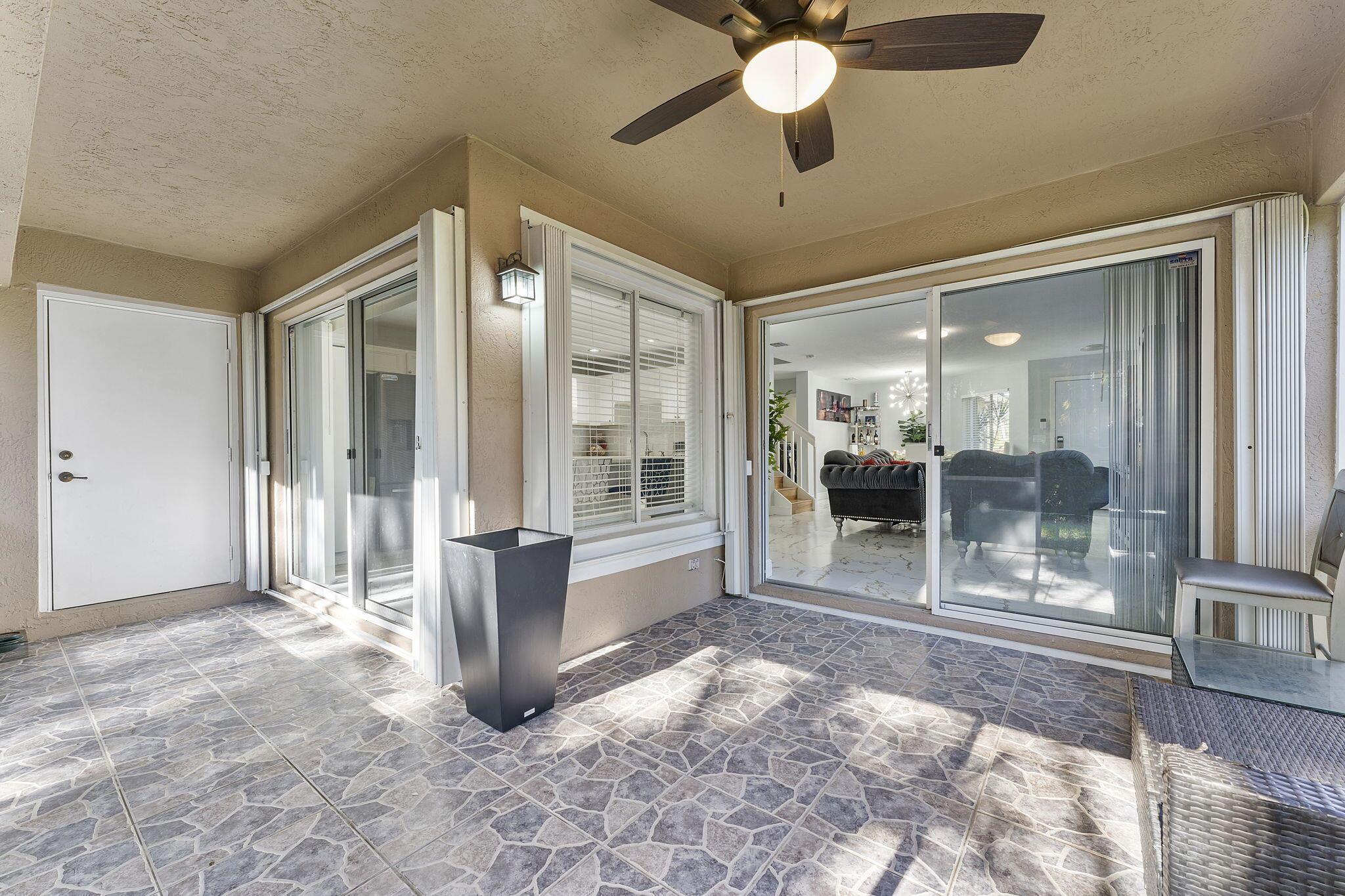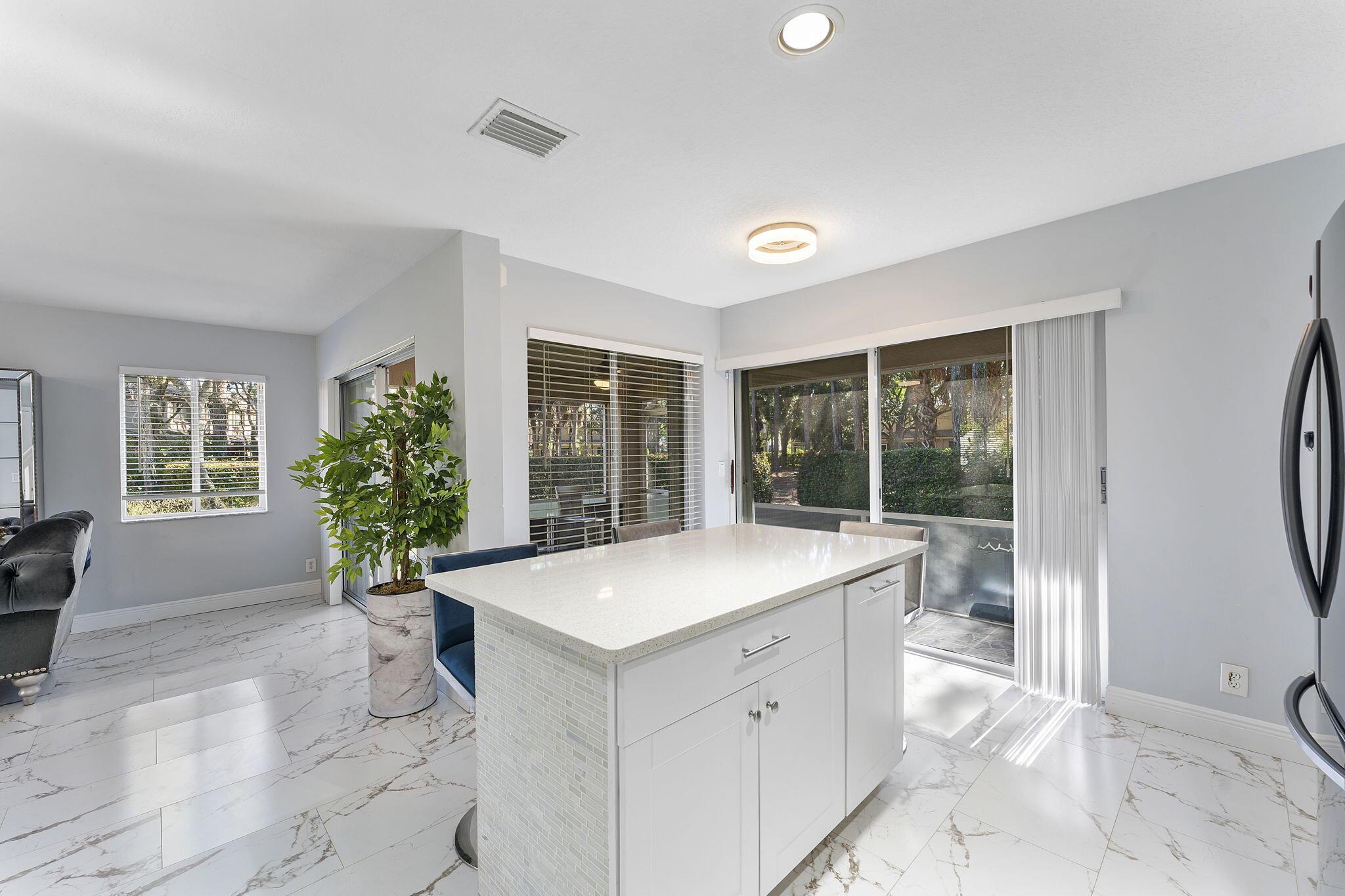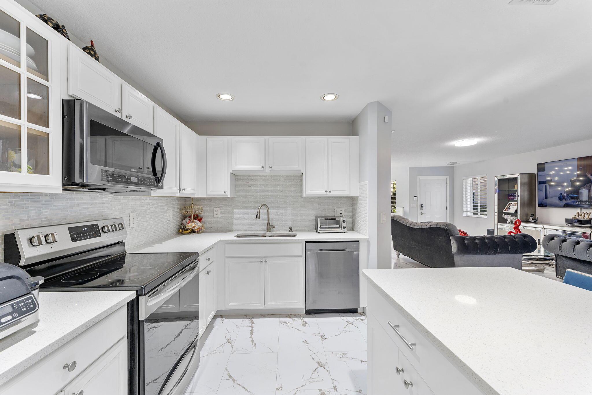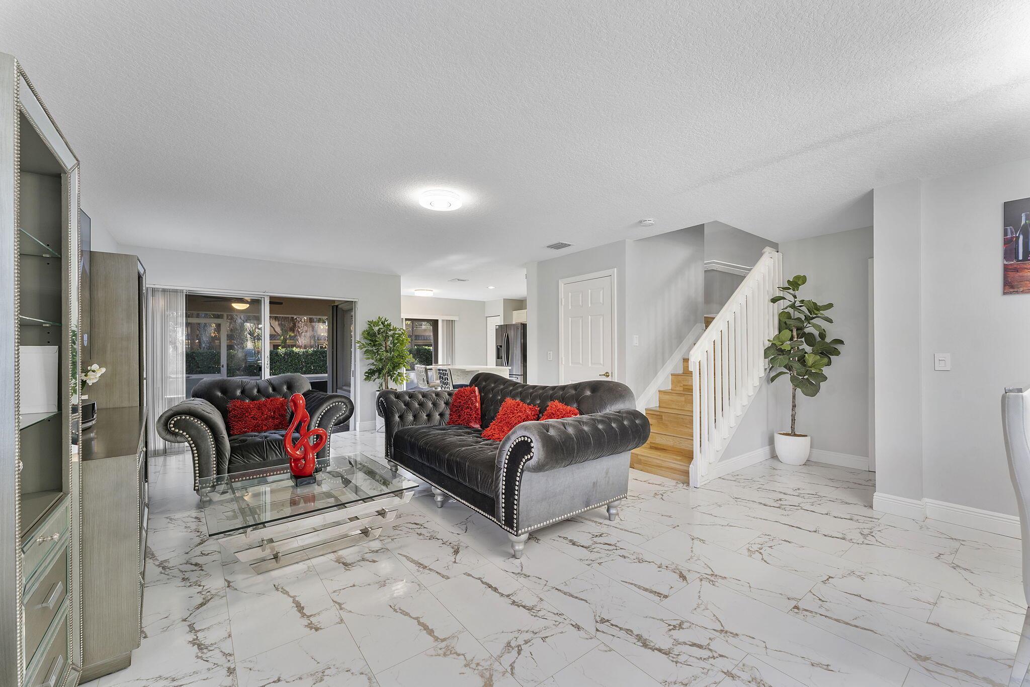 Experience modern living in this stunning 3-bedroom, 2.5-bathroom corner-unit townhouse with a brand-new roof and a 1-car garage. Nestled in a quiet community, this home offers an abundance of natural light, sleek finishes, and versatile spaces to meet all your needs.The open-concept living area is perfect for entertaining, with gleaming marble-like tile floors and a contemporary kitchen featuring stainless steel appliances, white cabinetry, and a quartz island. The dining area flows seamlessly to the screened-in patio, where you can relax and enjoy views of the lush greenery.Upstairs, the spacious primary suite includes a walk-in closet and an en-suite bathroom with dual vanities. Two additional bedrooms, a large laundry room, and a versatile loft complete the second floor.