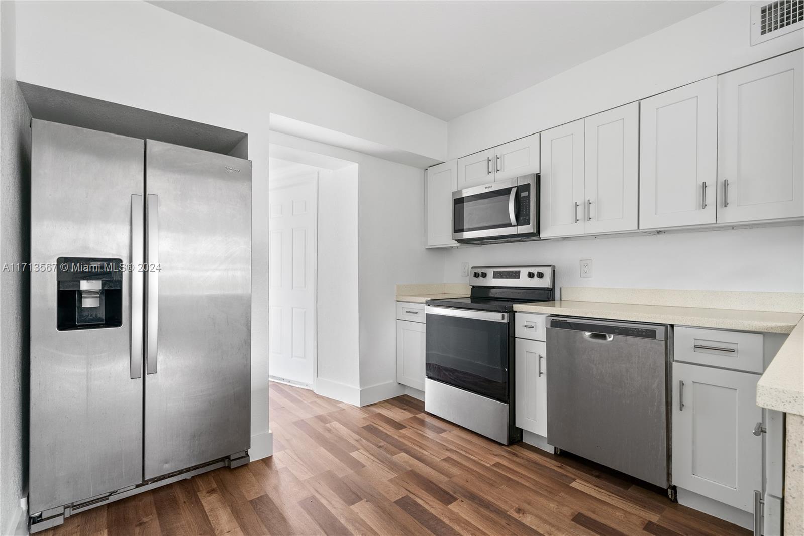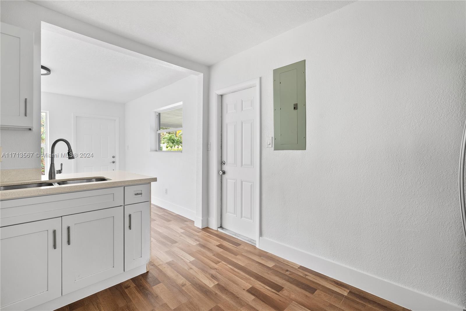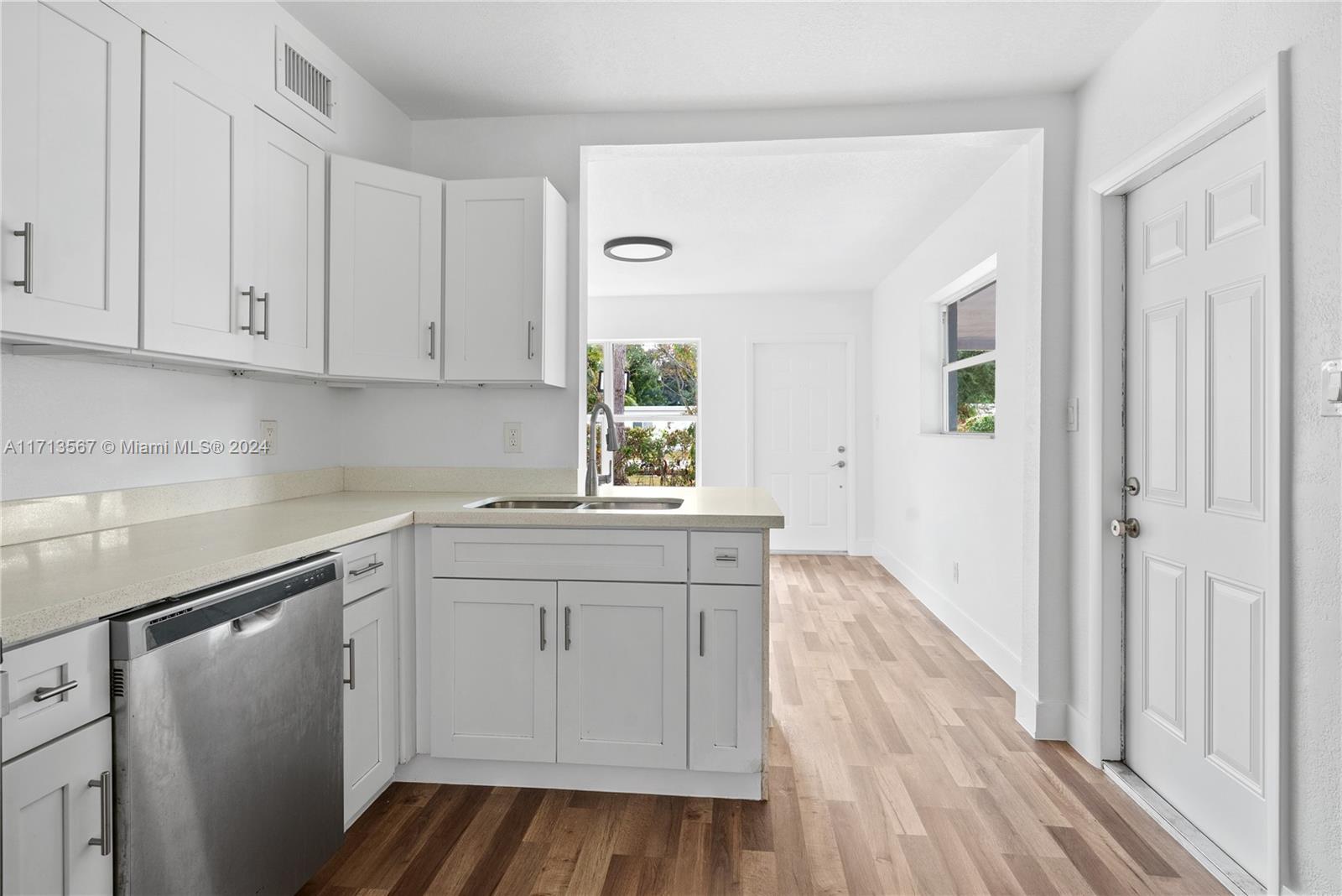 Charming 2-bedroom, 1-bathroom home featuring a spacious Florida room, perfect for relaxing or entertaining. The kitchen boasts white wood cabinets and quartz countertops, paired with durable vinyl wood flooring that runs throughout the house with updated bathrooms. Step outside to a huge backyard with plenty of room for a pool. The property includes a covered carport and enough parking for 3-4 vehicles. Conveniently located near the Florida Turnpike, Hollywood Beach, and the Hard Rock Casino, this home offers both comfort and prime location.