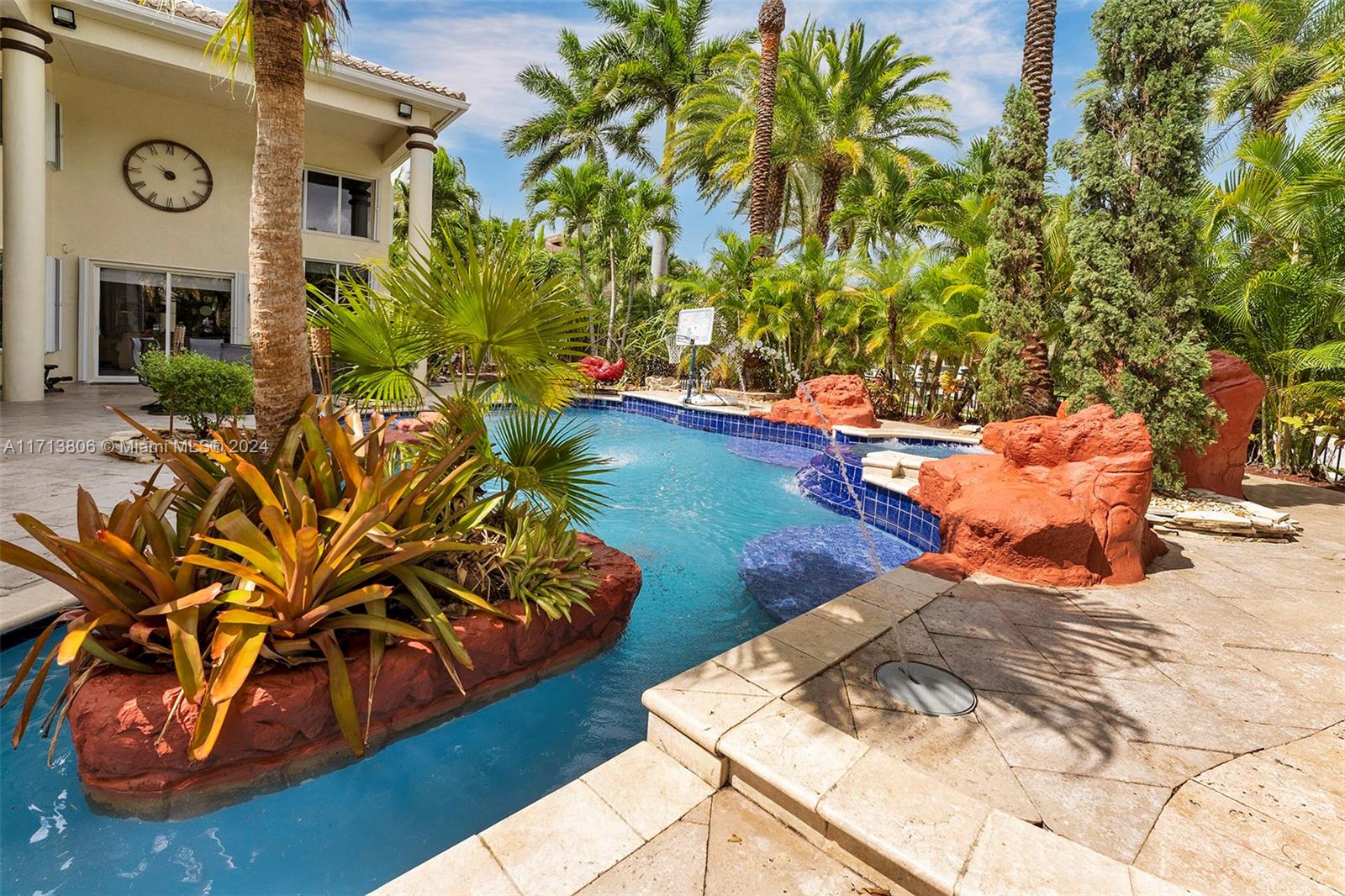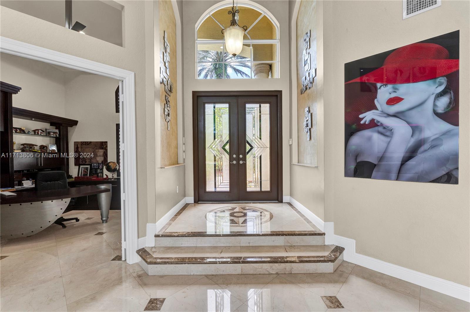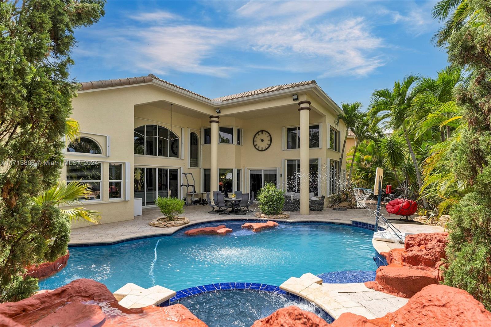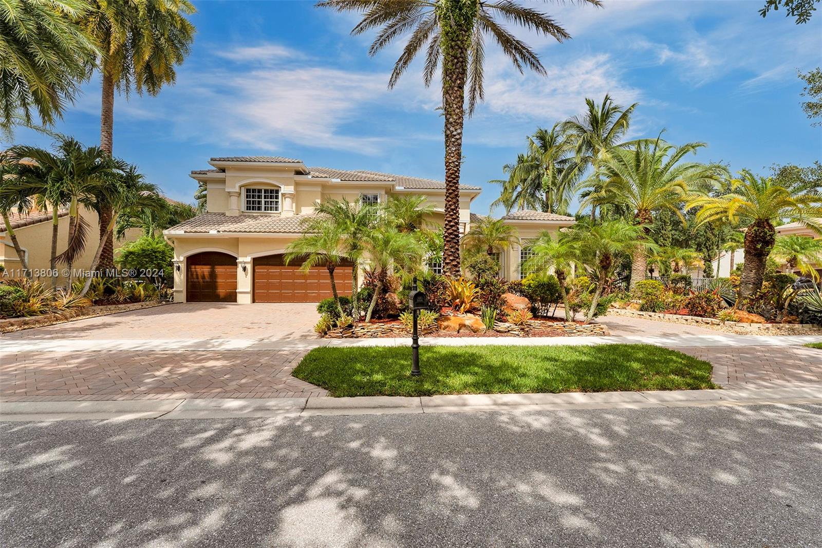 Located in prestigious Canyon Isles, this luxurious home features high ceilings throughout, including the patio. The interior boasts marble and wood floors, a private office, and a large primary bedroom with a foyer, patio access, dual shower, and jacuzzi tub. Enjoy a resort-style pool, jacuzzi, outdoor fire pit, and an oversized upstairs foyer for lounging or entertaining. The property includes a 3-car garage and $150,000 worth of landscaping. The furnished home offers a state-of-the-art sound system and two home theaters. It's a 5-minute walk to the clubhouse and a short drive to the expressway, mini mall, movie theater, bowling, restaurants, beach, golf courses, Brightline, and downtown Delray Beach. Upgrades include a 2023 pool pump, 5-year-old AC, and freshly painted exterior.