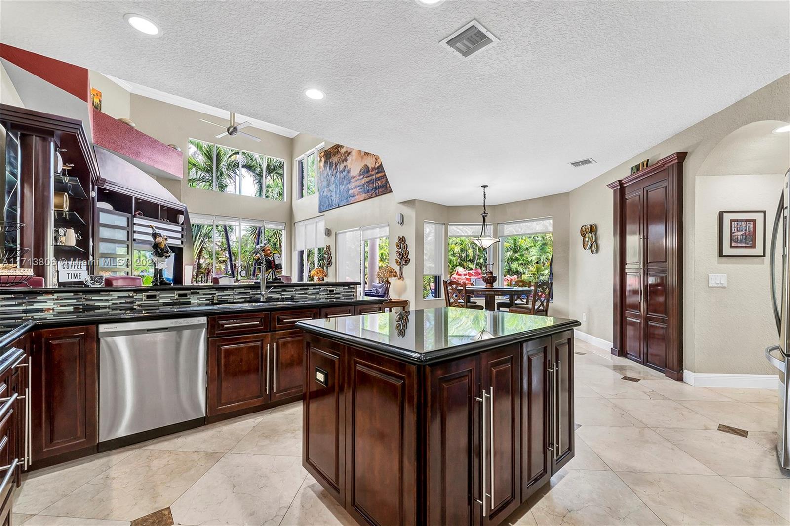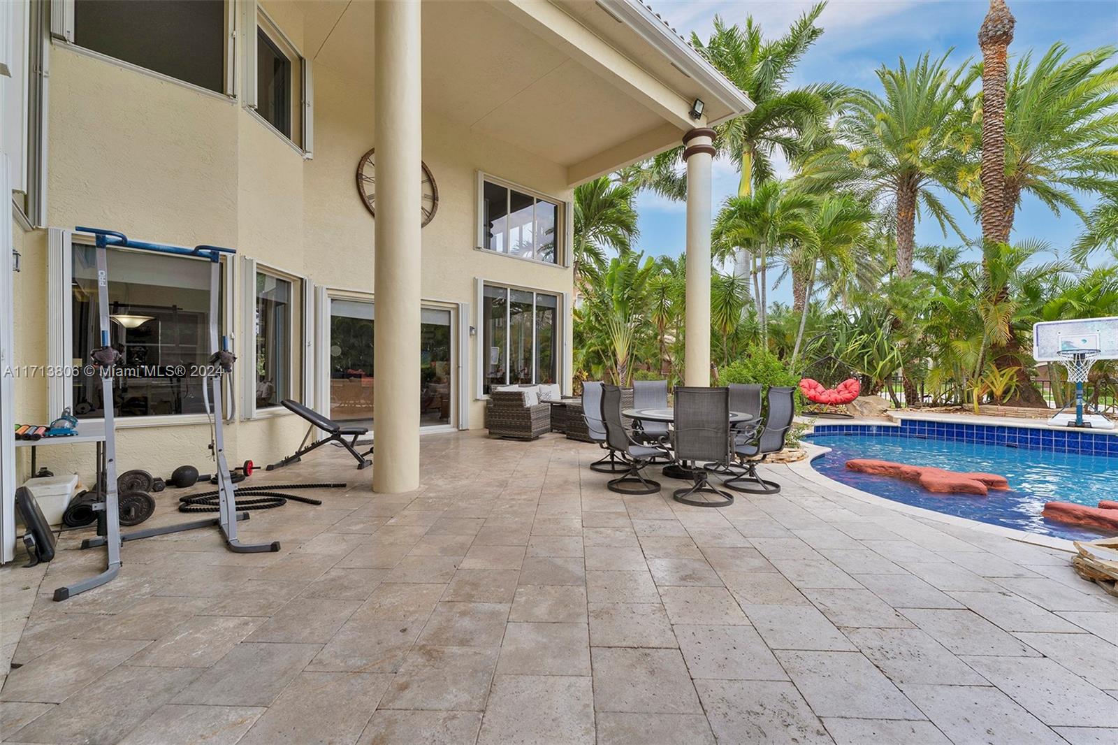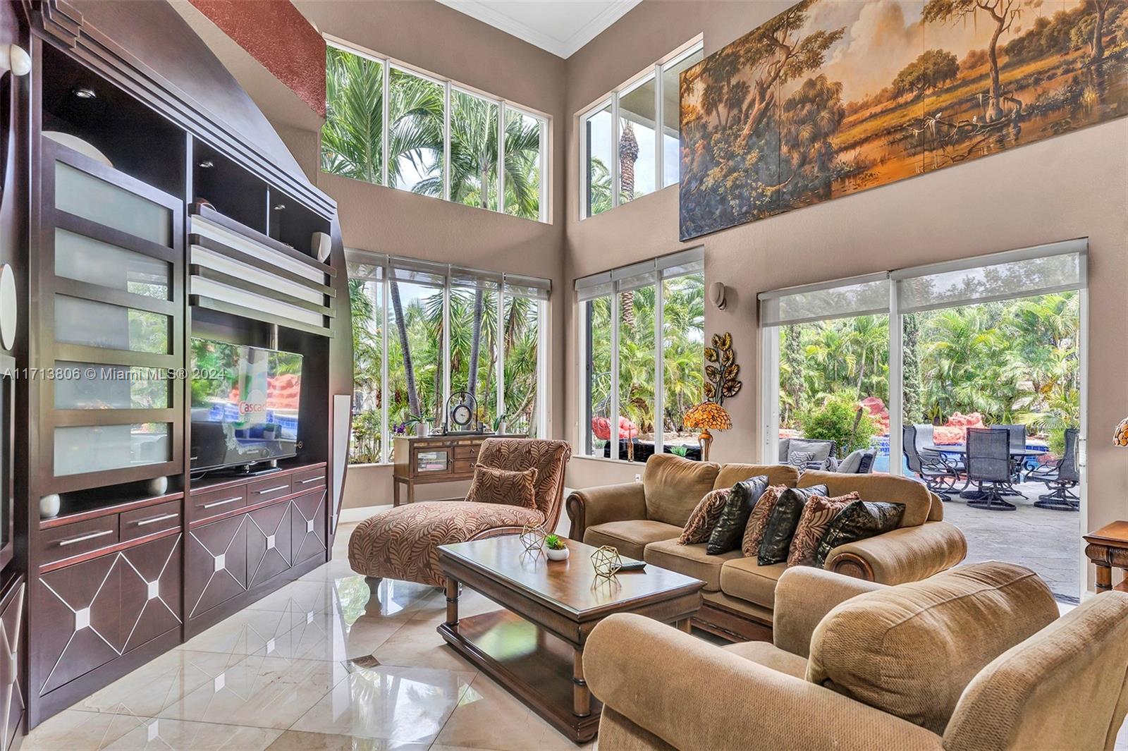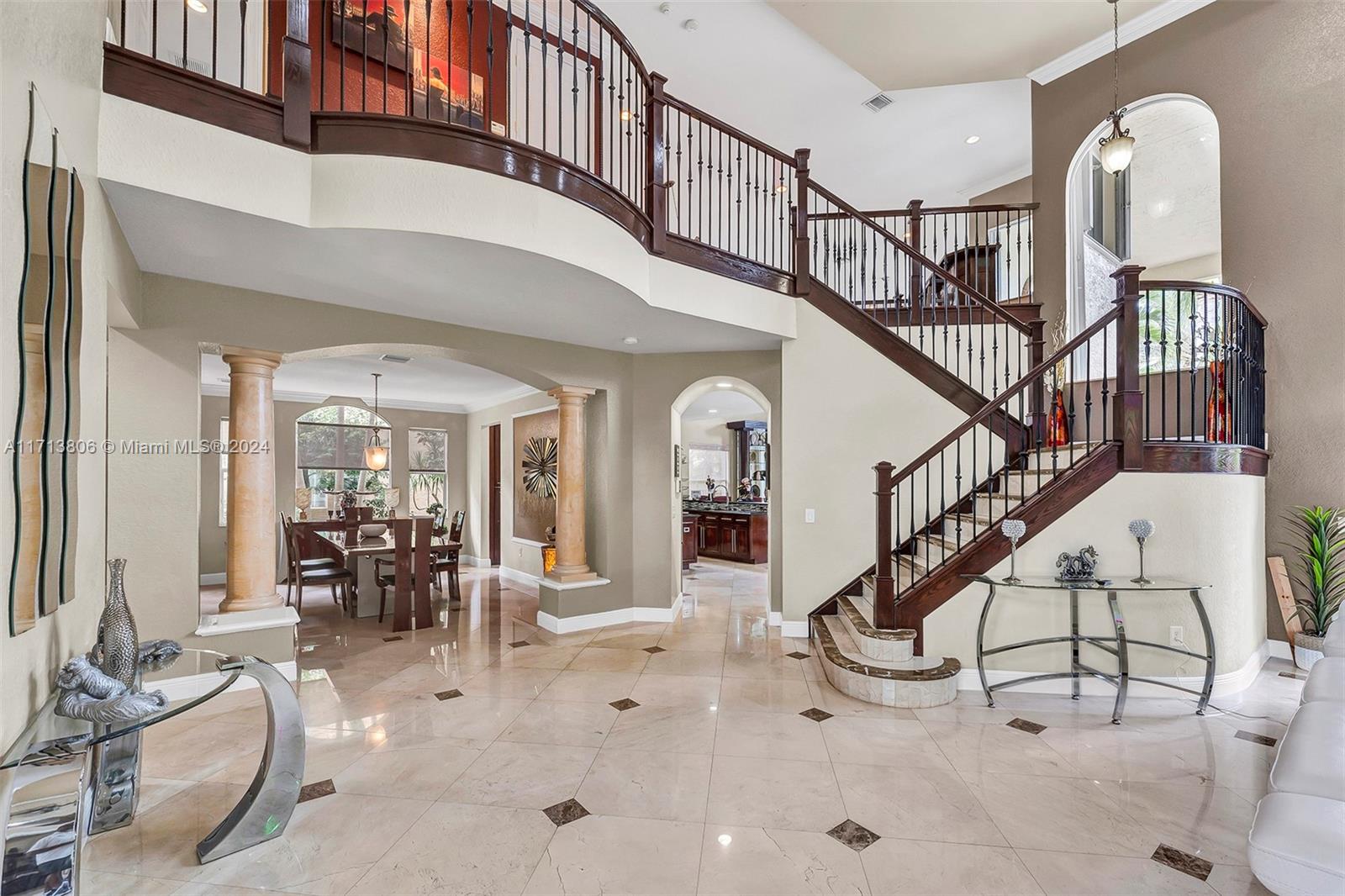 Located in prestigious Canyon Isles, this luxurious home features high ceilings throughout, including the patio. The interior boasts marble and wood floors, a private office, and a large primary bedroom with a foyer, patio access, dual shower, and jacuzzi tub. Enjoy a resort-style pool, jacuzzi, outdoor fire pit, and an oversized upstairs foyer for lounging or entertaining. The property includes a 3-car garage and $150,000 worth of landscaping. The furnished home offers a state-of-the-art sound system and two home theaters. It's a 5-minute walk to the clubhouse and a short drive to the expressway, mini mall, movie theater, bowling, restaurants, beach, golf courses, Brightline, and downtown Delray Beach. Upgrades include a 2023 pool pump, 5-year-old AC, and freshly painted exterior.