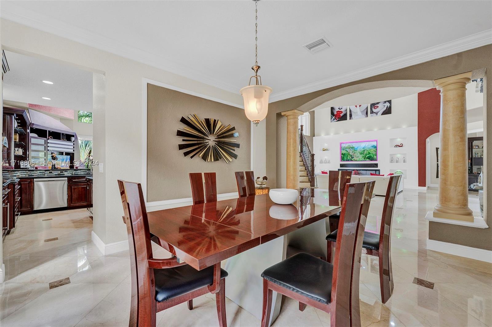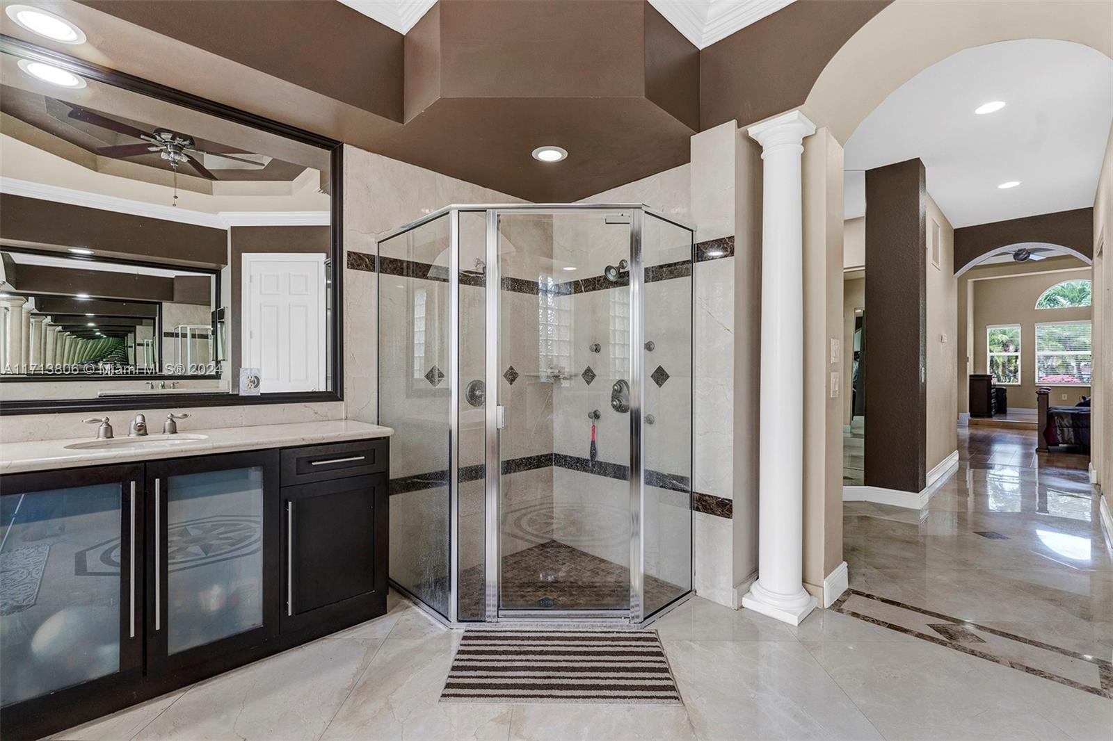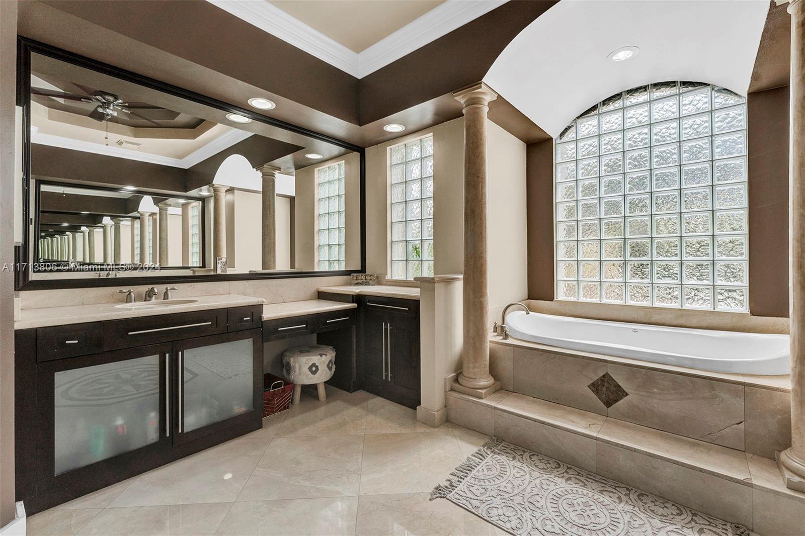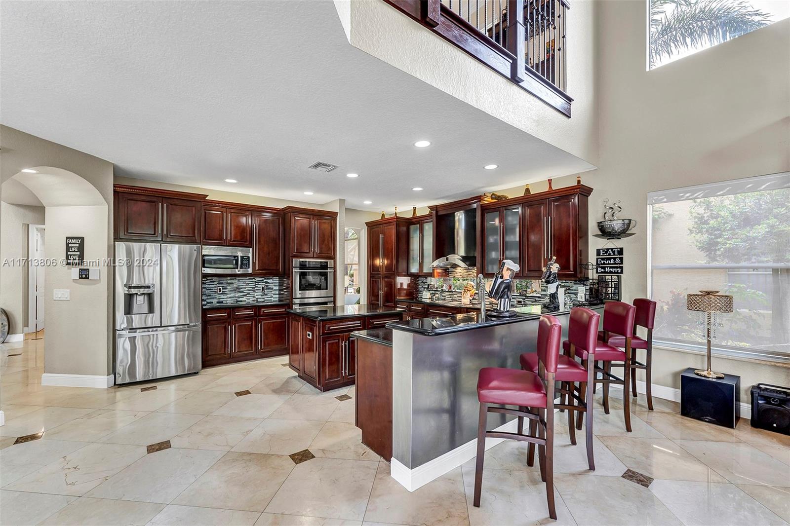 Located in prestigious Canyon Isles, this luxurious home features high ceilings throughout, including the patio. The interior boasts marble and wood floors, a private office, and a large primary bedroom with a foyer, patio access, dual shower, and jacuzzi tub. Enjoy a resort-style pool, jacuzzi, outdoor fire pit, and an oversized upstairs foyer for lounging or entertaining. The property includes a 3-car garage and $150,000 worth of landscaping. The furnished home offers a state-of-the-art sound system and two home theaters. It's a 5-minute walk to the clubhouse and a short drive to the expressway, mini mall, movie theater, bowling, restaurants, beach, golf courses, Brightline, and downtown Delray Beach. Upgrades include a 2023 pool pump, 5-year-old AC, and freshly painted exterior.