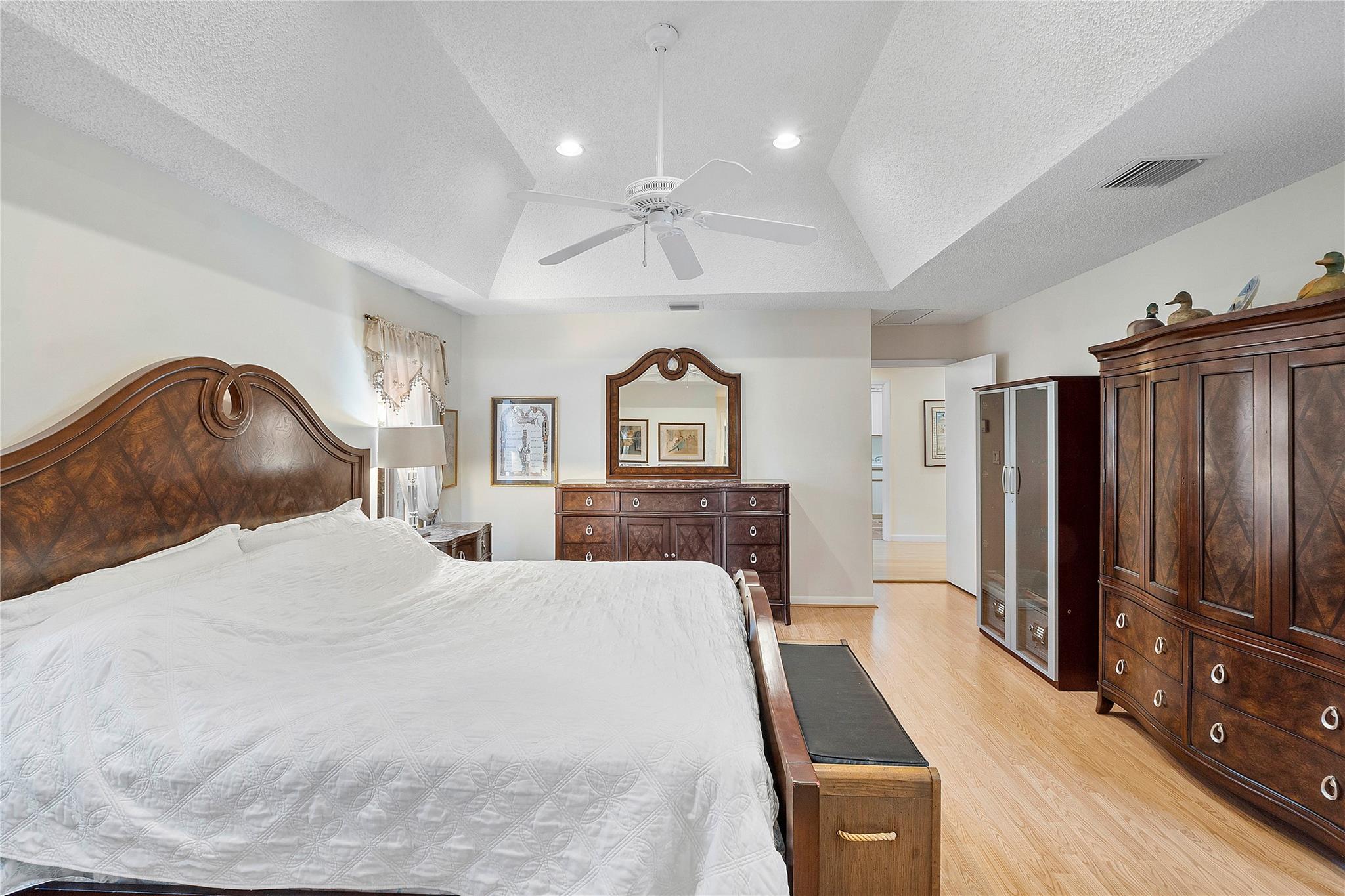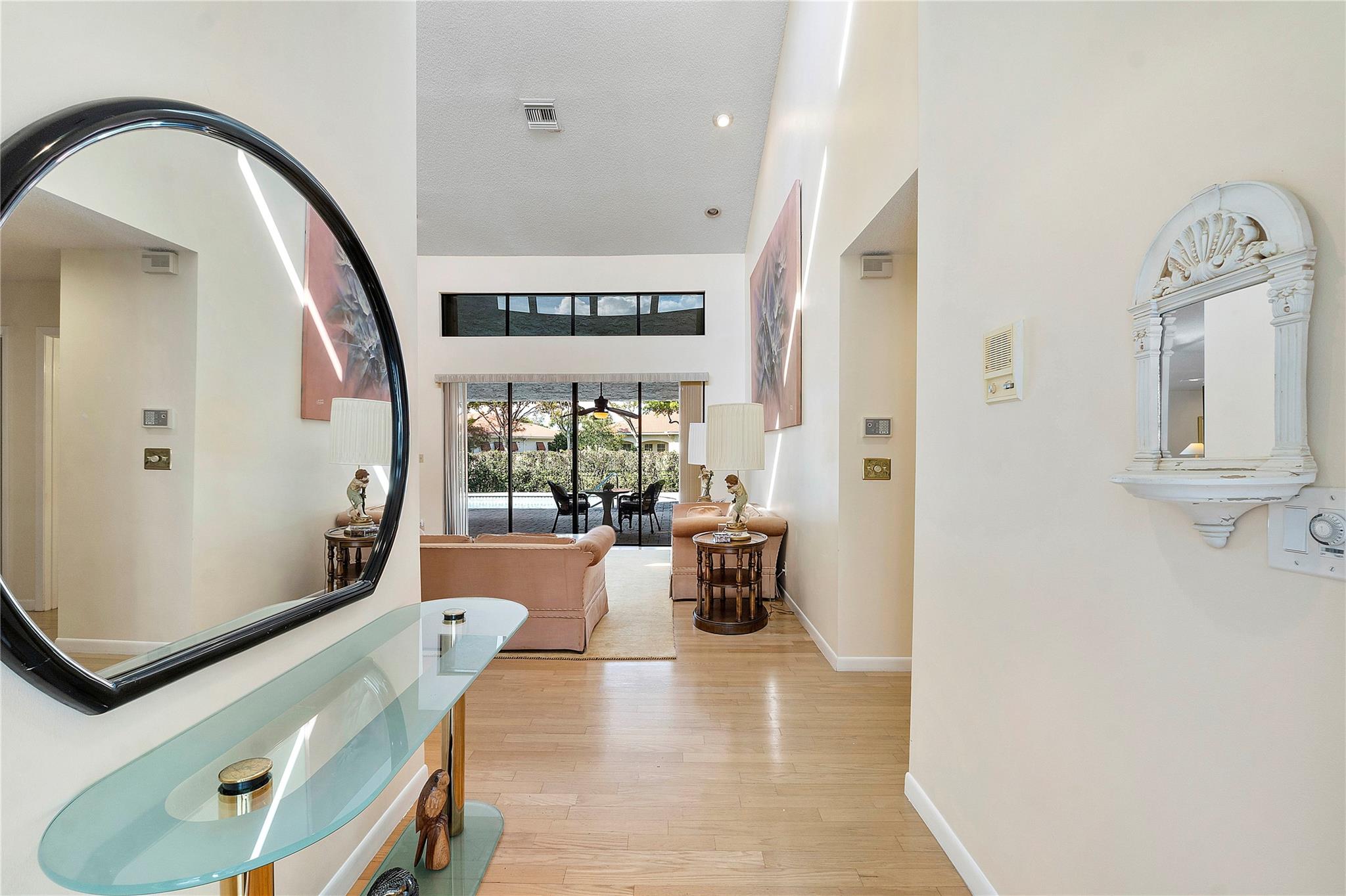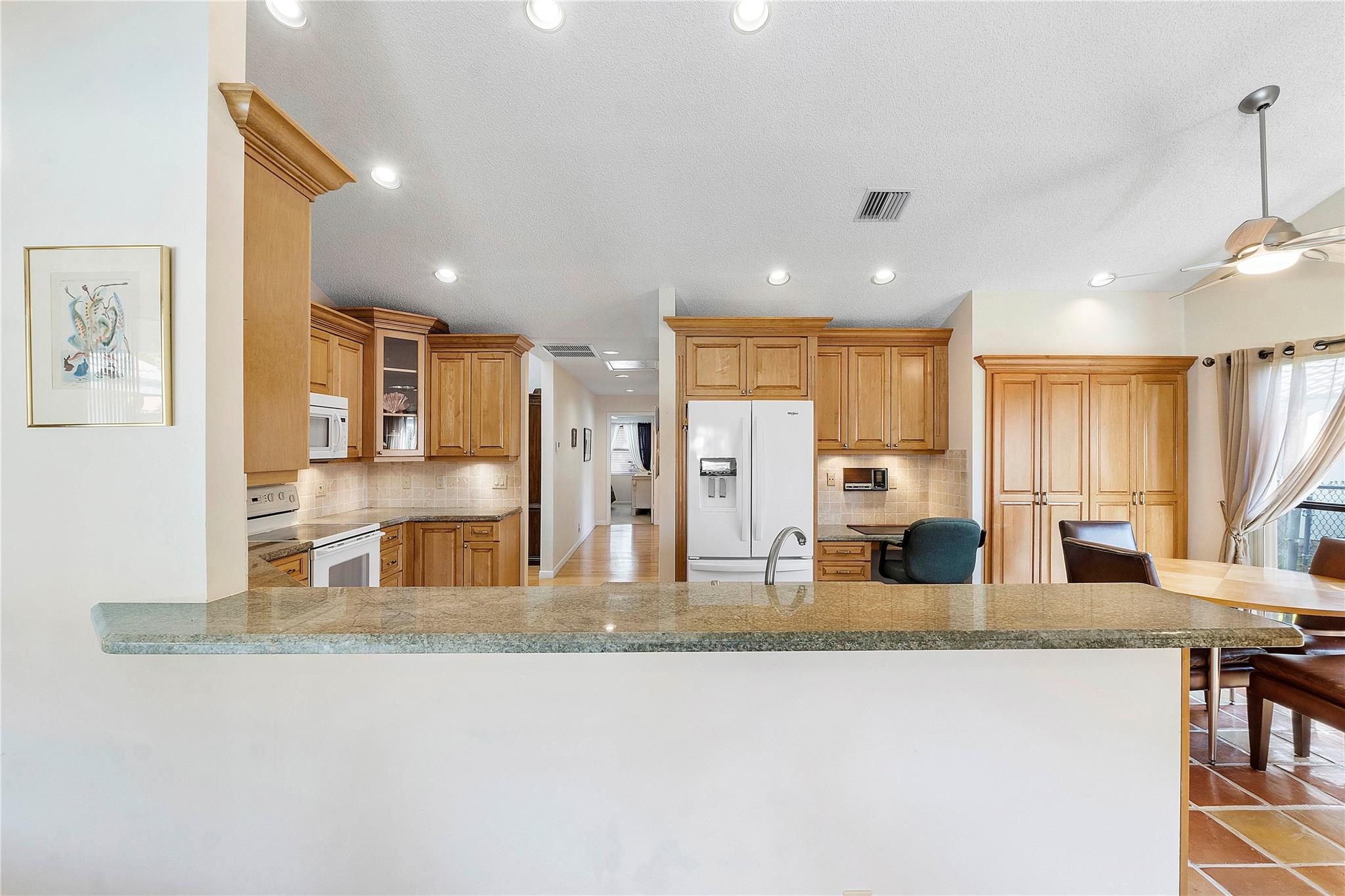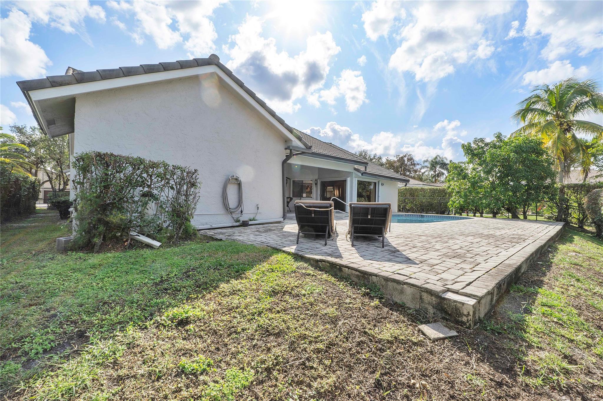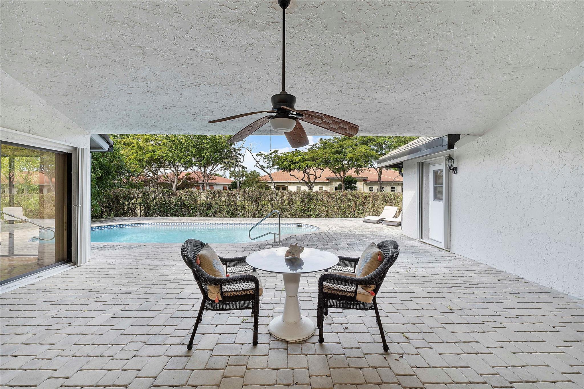 24 HOUR GATED COMMUNITY. SERENE AND BEAUTIFUL WATERFRONT PROPERTY. Best priced 5Br in a gated community!! The elegant hardwood floors and vibrant Mexican tile add character throughout. In 24/7 Guard gated community. The large kitchen boasts beautiful granite countertops, rich wood cabinets, a convenient work station, a pantry, and a cozy breakfast area, perfect for family gatherings. One of the bedrooms is currently utilized as an office, equipped with a built-in work station and a Murphy bed for versatility. The oversized primary bedroom features two generous closets, while the luxurious bathroom includes a Roman tub and a separate shower. Enjoy peace of mind with accordion shutters and relax in the fenced yard, complete with a sparkling pool, ideal for entertaining or unwinding.