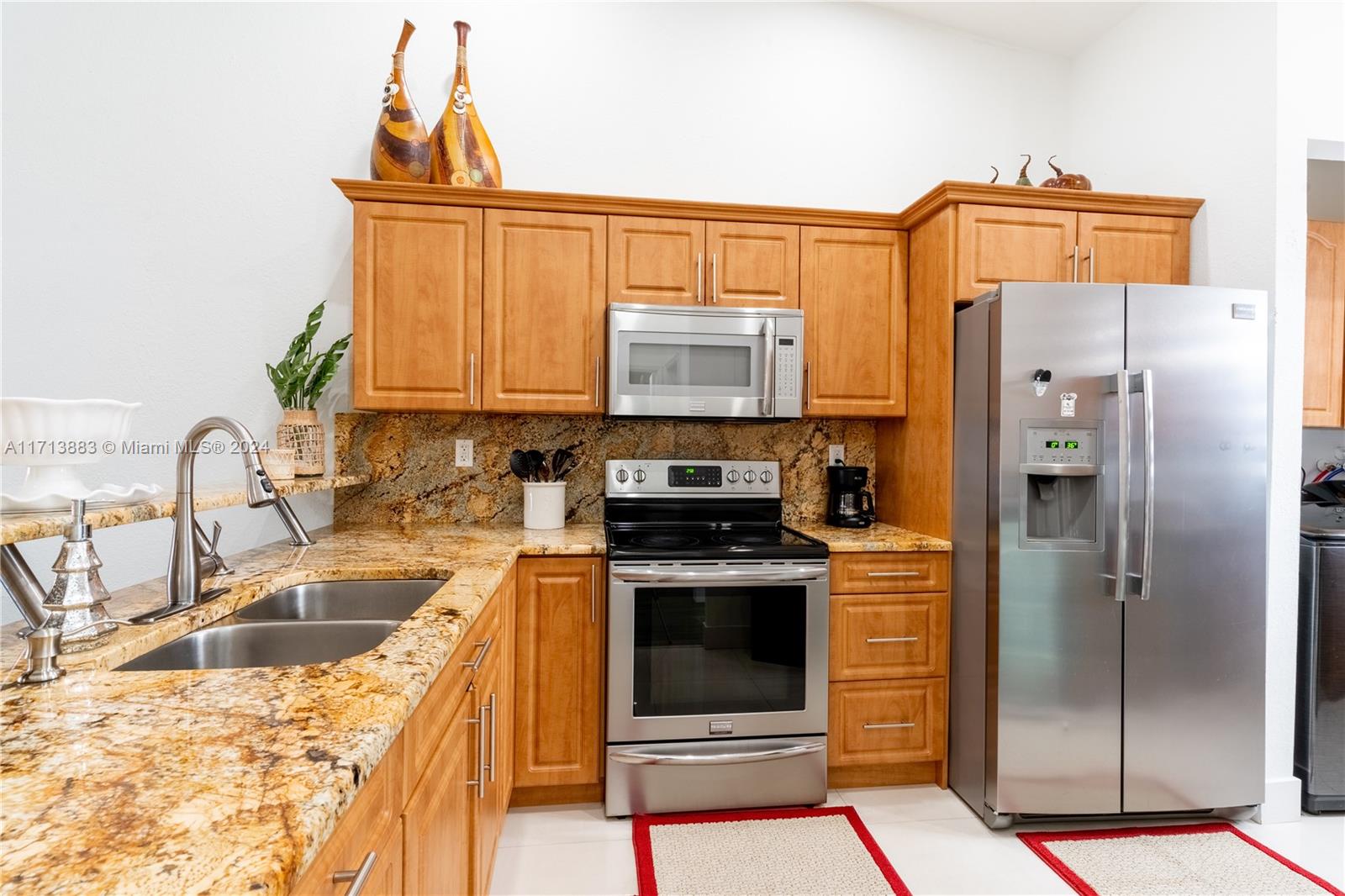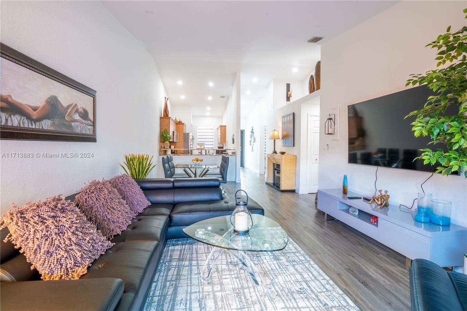 Stunning townhouse in a desirable location! Completely renovated with exquisite high-end finishes. Features include impact-resistant doors and windows with electric curtains, new AC, and a spacious kitchen with stainless steel appliances. The bathrooms boast modern designs, while the expansive, fully covered patio is perfect for family gatherings and outdoor entertaining. Come see for yourself all that this beautiful property has to offer!