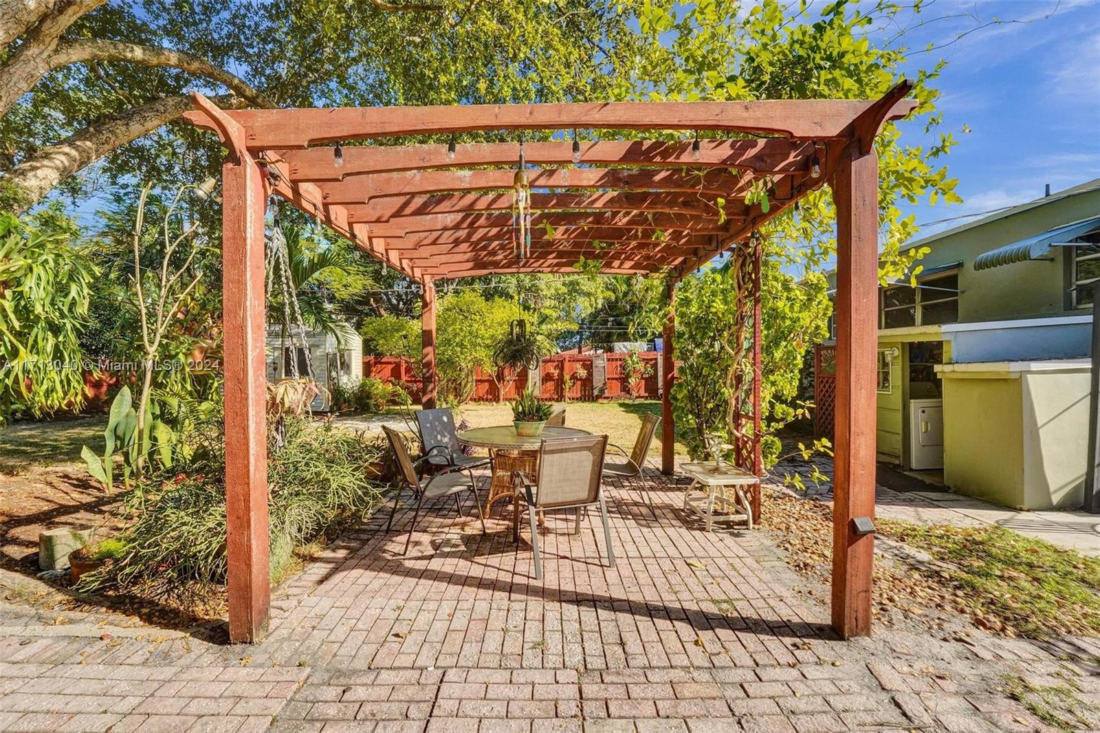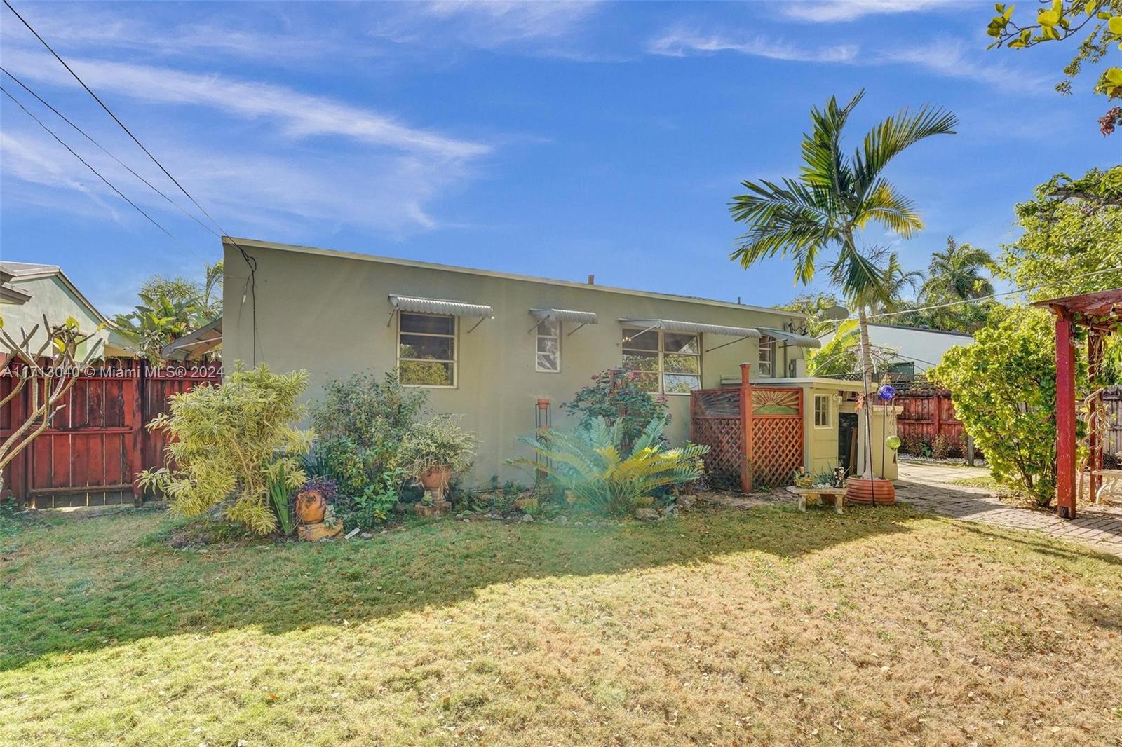 Charming 3-bedroom 2-bathroom one-story home in prime location East of US1, Hollywood. Recently updated in 2024 with a new roof, AC, attic insulation, tankless water heater, partial laminate floors. Features include impact windows in the front, hurricane awnings on the side and the back of the house, custom wood kitchen cabinets, updated bathrooms, and a circular driveway with Chicago bricks. The spacious, fenced backyard is a tropical oasis with lush landscaping, mature trees, a pergola for dining under the stars, an outdoor shower, a unique guitar-shaped walkway, and a large shed for storage. Conveniently located near the newly remodeled downtown Hollywood, the Arts Park at Young Circle, restaurants, Hollywood Beach Broadwalk, Gulfstream Park, Aventura Mall, and Fort Lauderdale Airport.