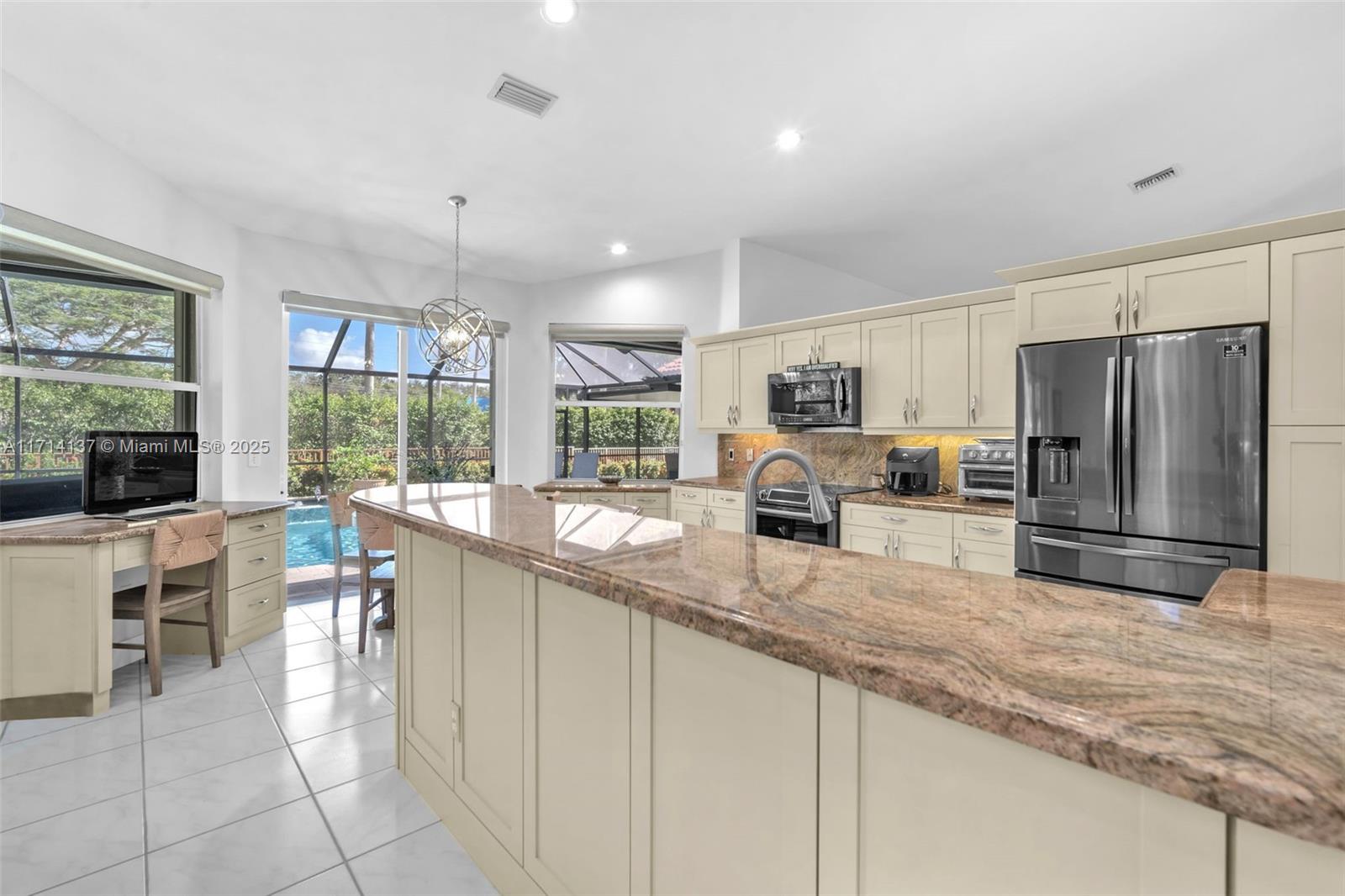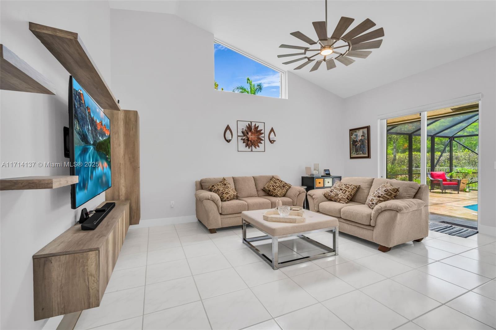 Golf daily and enjoy relaxing or entertaining in your very own backyard screened-in HEATED pool! Enjoy gatherings with an open upgraded kitchen, upgraded bathrooms, and separate living areas with volume ceilings throughout. Stay worry free for years to come for the ROOF, pool surface, travertine patio, screen, front impact/surrounding accordion shutters are all 5 years new. Want more? A long list of desirables includes a split-bedroom floor plan, remote controlled window treatments, a spacious partially covered patio/pool, no rear neighbors, auto sprinklers, fenced-in yard, and a long pavered driveway. This home is so clean, a true must see. Grand Palms is a guard gated GOLF community that is conveniently located near I-75, parks, schools, hospitals, restaurants, and shopping.