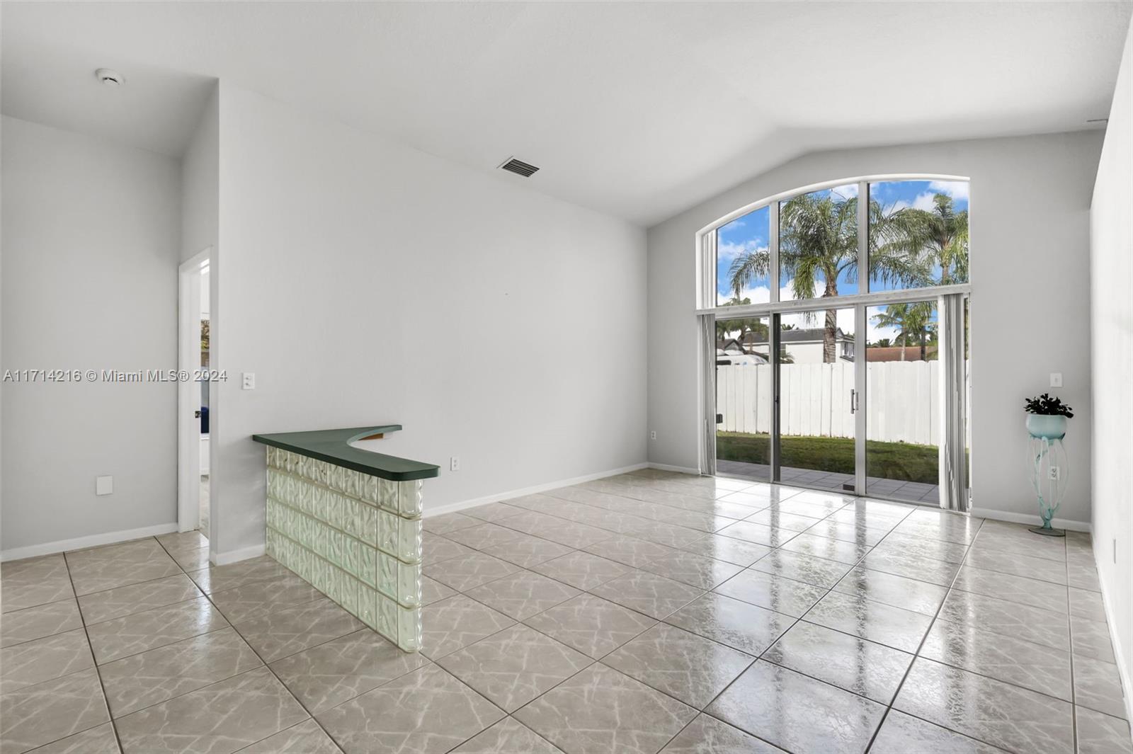 Beautiful, well maintained home in The Island at Spring Valley, a gated private community in Pembroke Pines. 3 bedrooms, 2 full bathrooms, formal dining/living room, open kitchen with breakfast nook and family room. Spacious kitchen with white cabinets, granite countertops and stainless steel appliances. Convenient laundry/storage room and central vacuum. Brand new wood style tiles in primary bedroom. Home is situated on a large corner lot with 2 car garage. New flat tile roof, garage door and AC. Includes security system with cameras. Low monthly HOA, includes cable & high speed internet Amenities include a community pool, 4 tennis courts, basketball and children's playground. Located in highly sought after area, only minutes from major highways, shopping, dining and top rated schools.