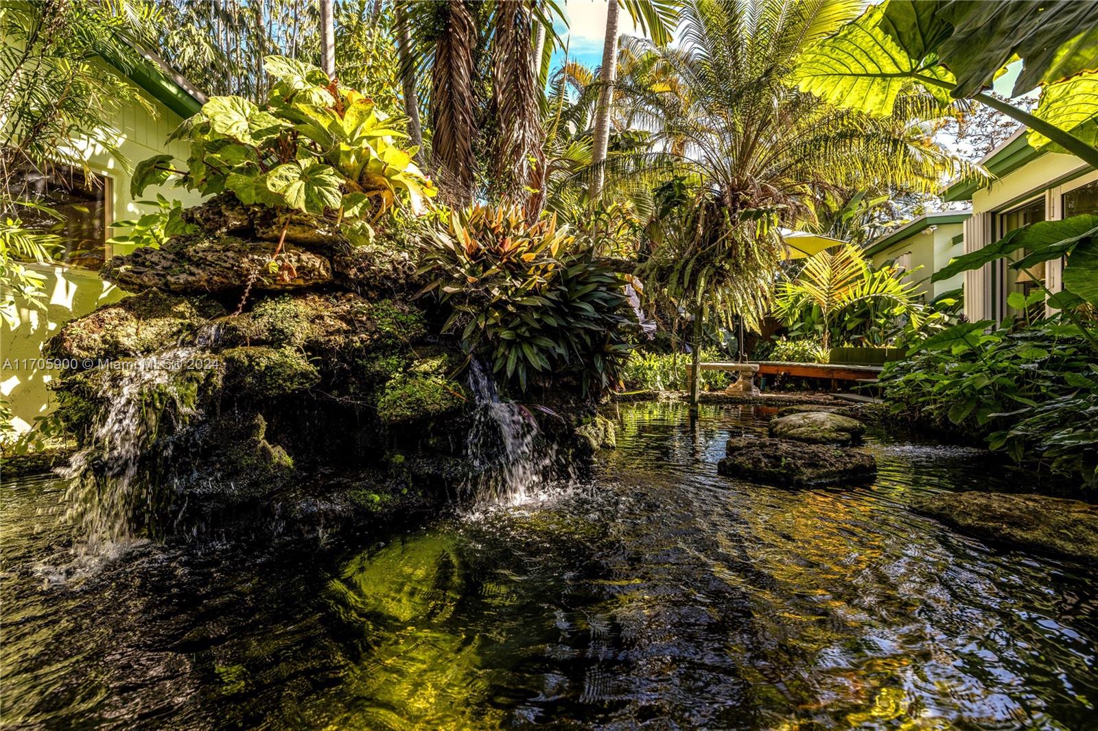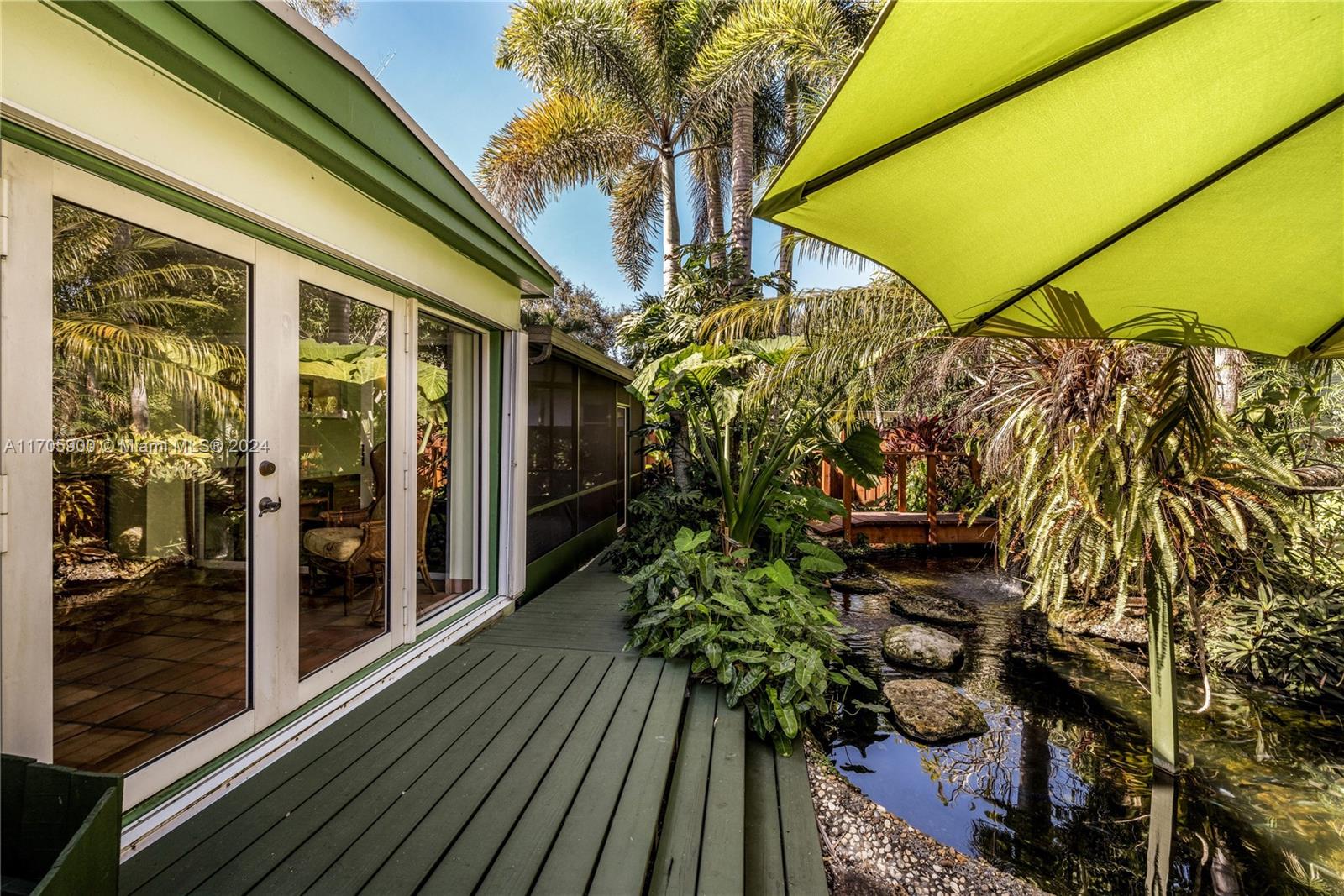 A Miami Shores ‘hidden secret’…Welcome home! Enter through lush landscaping and a winding front walkway!This artistically inspired home features 3 bedrooms and 2 full bathrooms with a split bedroom layout and one bathroom ensuite,as well as a large Florida room with views over the pond and landscaped backyard.A retreat for sure, with soft sun-washed colors.The roof is NEW.“MORE than meets the EYE” with a expansive pond full of fish to relax by and enjoy.A wonderful BONUS is the enormous detached air-conditioned garage offering MANY options…artist’s studio,yoga studio, home office and 2 spaces to care for important cars in your life. The possibilities are endless! This unique home is one-of-a-kind in today’s market. Showings are easy and personally accompanied.