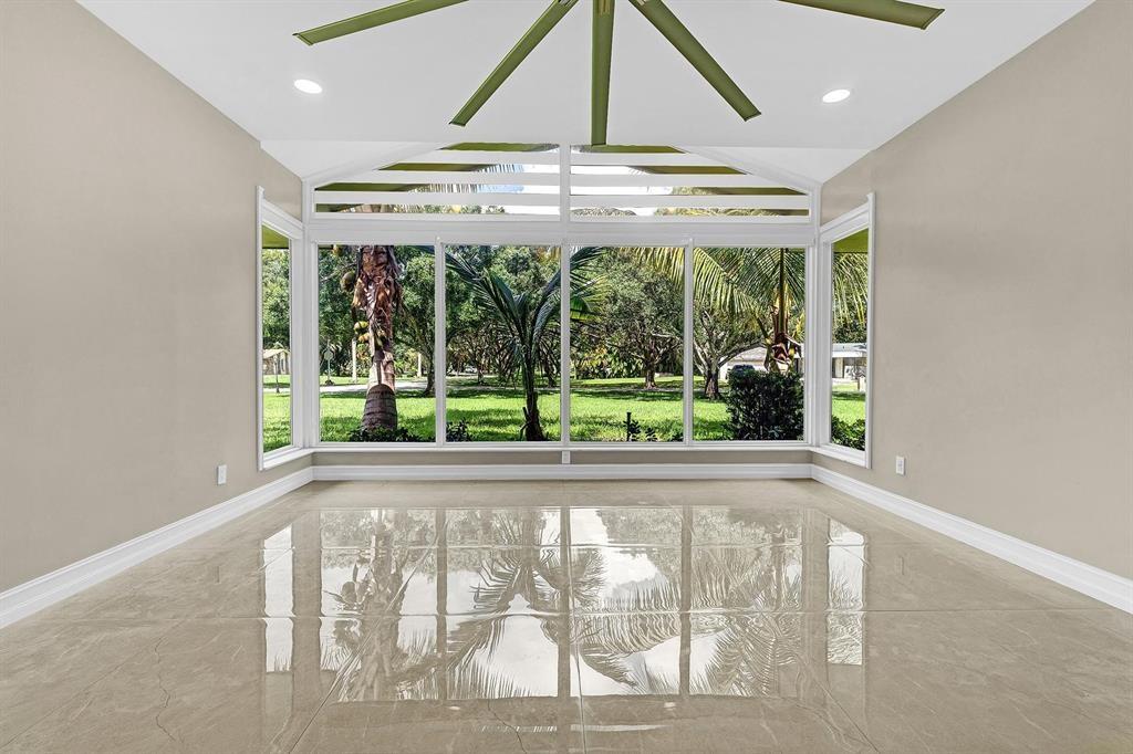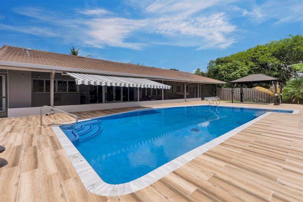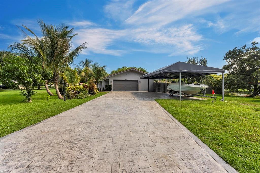Don't Miss Out!!! This property has been privately appraised, and we are listing it well below the appraised value. Situated on a sprawling 1.53-acre corner lot with lake views in Davie, this exquisite single-family home combines elegance with modern comfort. It features 4 beds, 3 baths, a 3-car garage, and a durable metal roof. Renovated with sleek porcelain tiles, a stunning quartzite island, impact-resistant windows, two tankless water heater, two air conditioning units, zebra blinds, and custom-built closets. Your private backyard oasis includes a sparkling pool, an above-ground jacuzzi, and a collection of tropical fruit trees, including mango, banana, tamarind, and starfruit. Located in a sought-after neighborhood known for its luxury and privacy, this home is truly a rare find.