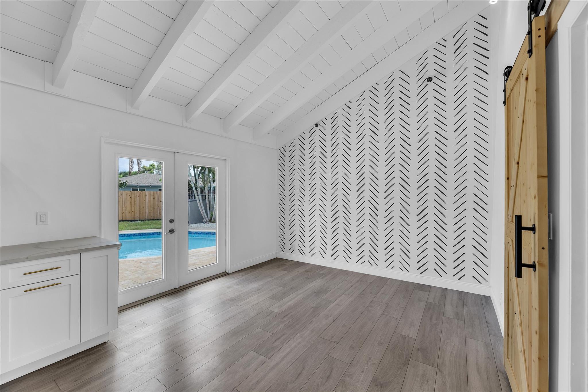 Welcome to your newly priced dream home in the heart of Palm Aire Village East! This beautiful 3-bedroom, 2-bathroom pool home offers a spacious open floor plan with a vaulted ceiling and luxury vinyl flooring throughout. The stunning, fully renovated modern kitchen features a gorgeous oversized island and tons of entertaining space. Step outside to your private backyard oasis, complete with a solar-heated swimming pool that has just been refinished, travertine tile patio, and a fully fenced space. Located in the highly desired, family friendly neighborhood of Palm Aire Village East with NO HOA! Minutes from Publix, restaurants, shops, I-95 and walking distance to Palm Aire Village Park & Calvary Christian Academy!