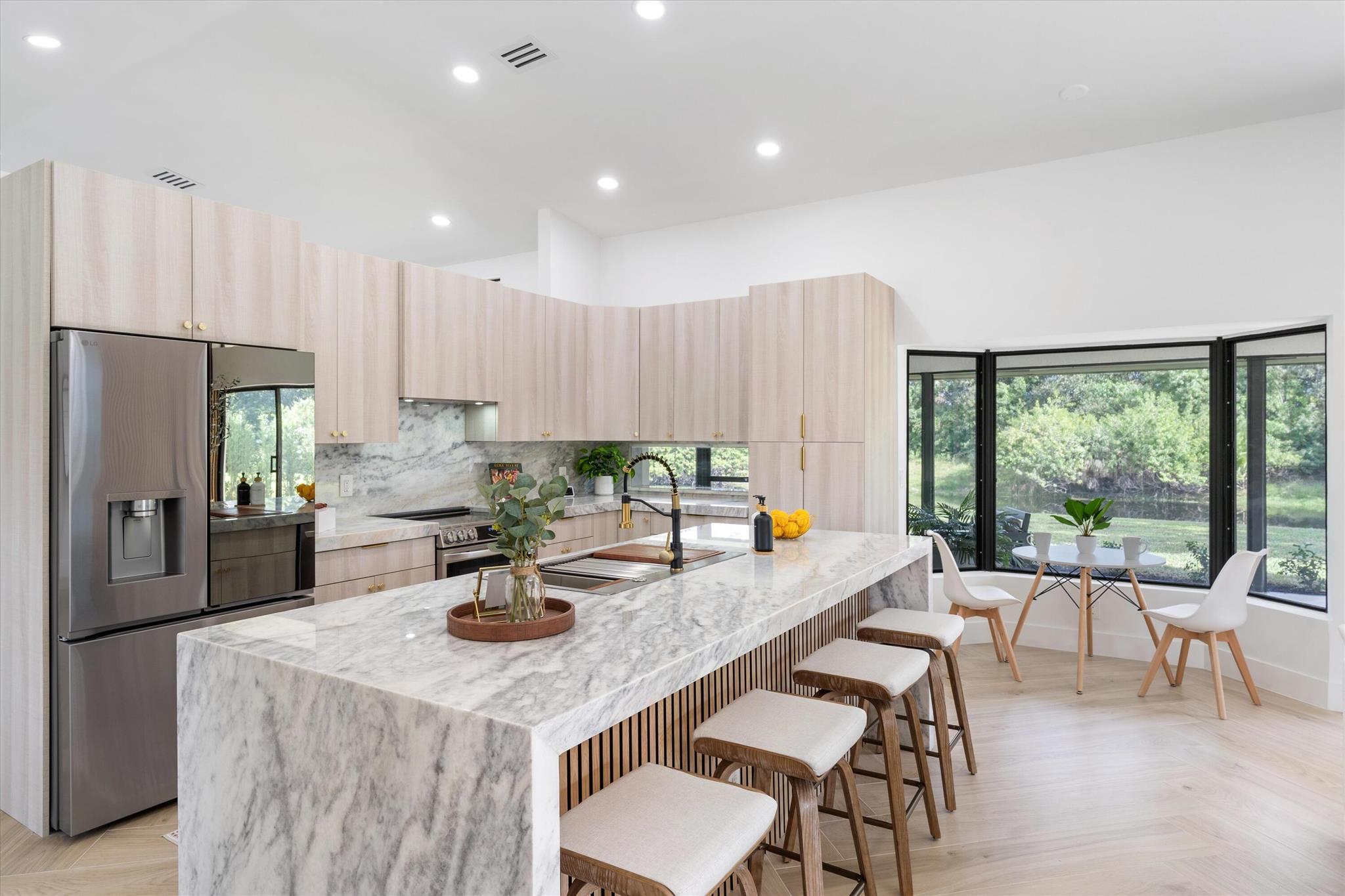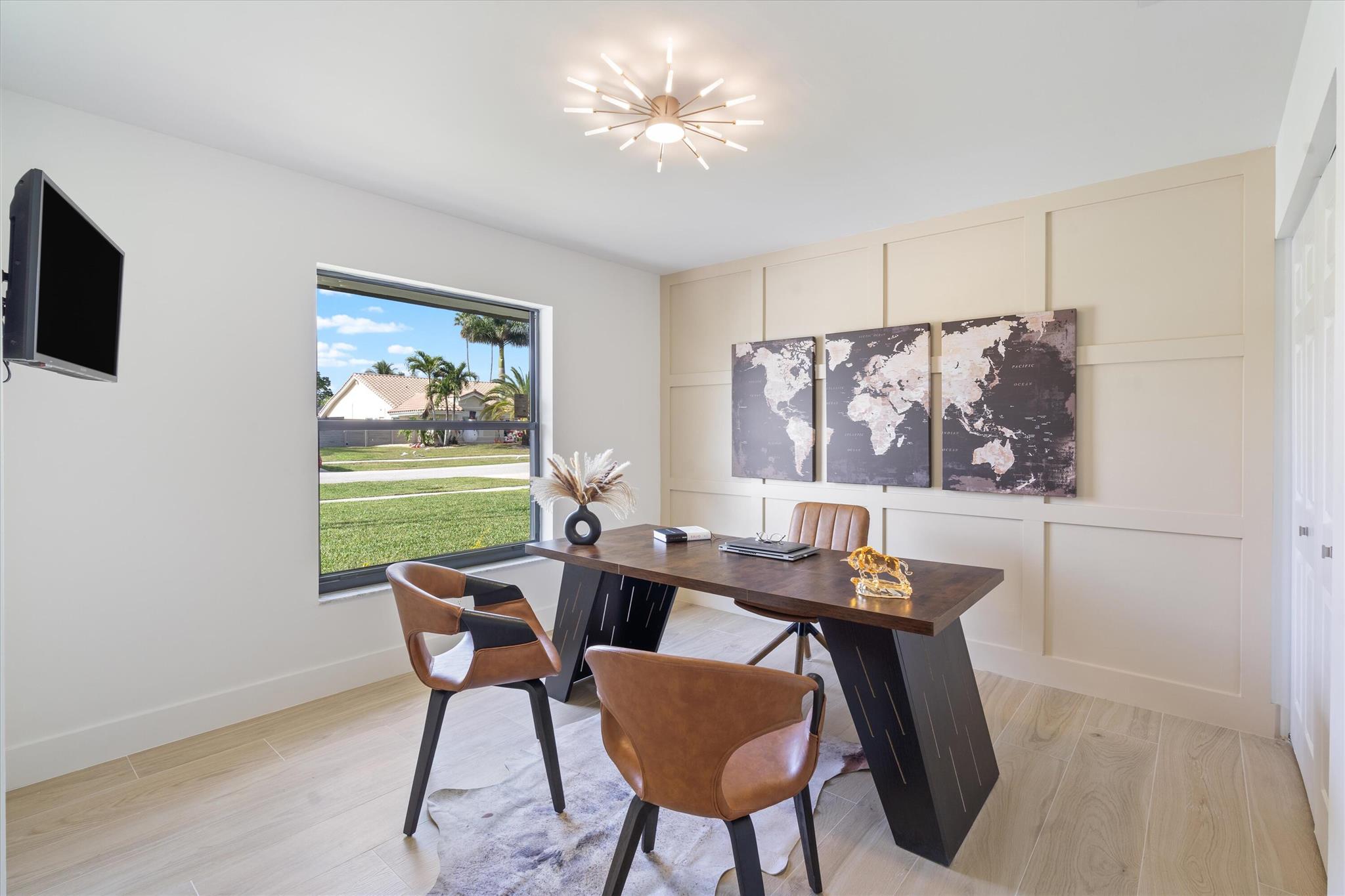 FIRST SHOWINGS THIS WEEKEND. Walking distance to Loggers Run Park you'll find this spectacularly updated 4 bedroom sprawling rancher in gated community of Island Lakes perfect for any sized family. Brand new high impact hurricane windows and doors, 4 ton AC from 2022 plus smart Alexa thermostat. The elegant kitchen includes ventless range hood, smart tech stove and LG refrigerator that makes craft ice, built in island counter microwave, chef's sink and more. Separate laundry room has plenty of space and includes LG ThinQ units which were just purchased and installed. Bathroom countertops are custom fabricated imported marble and are laid on floating vanities with under cabinet LED lighting elements.