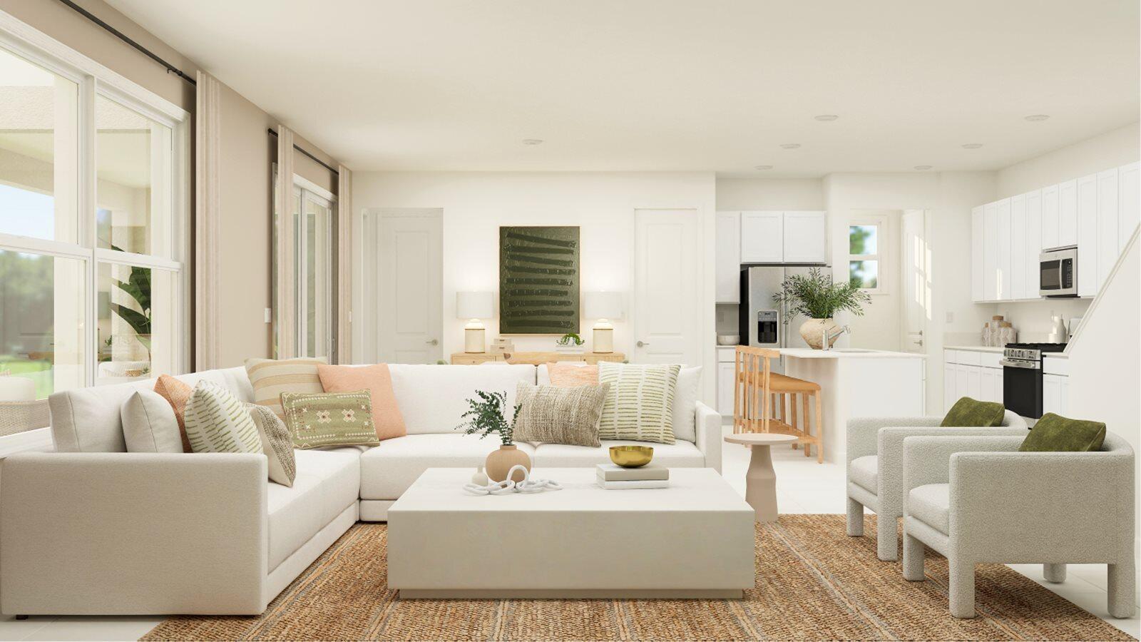 The first floor of this new two-story home is host to an inviting open-concept floorplan with access to a covered lanai for effortless entertaining, and a study is easily accessible off the foyer. Upstairs, four bedrooms surround a versatile loft, including the luxe owner's suite with a spa-inspired bathroom and walk-in closet.Prices, dimensions and features may vary and are subject to change. Photos are for illustrative purposes only.