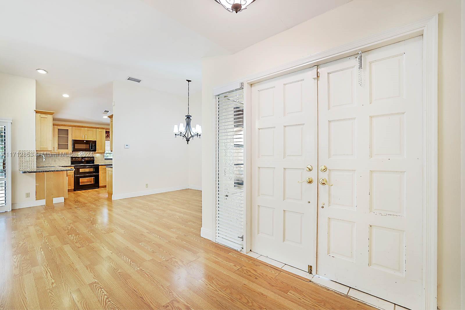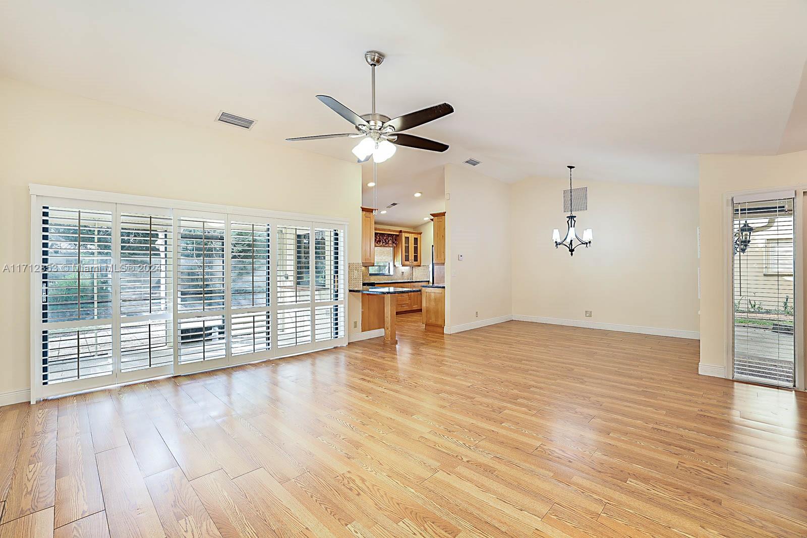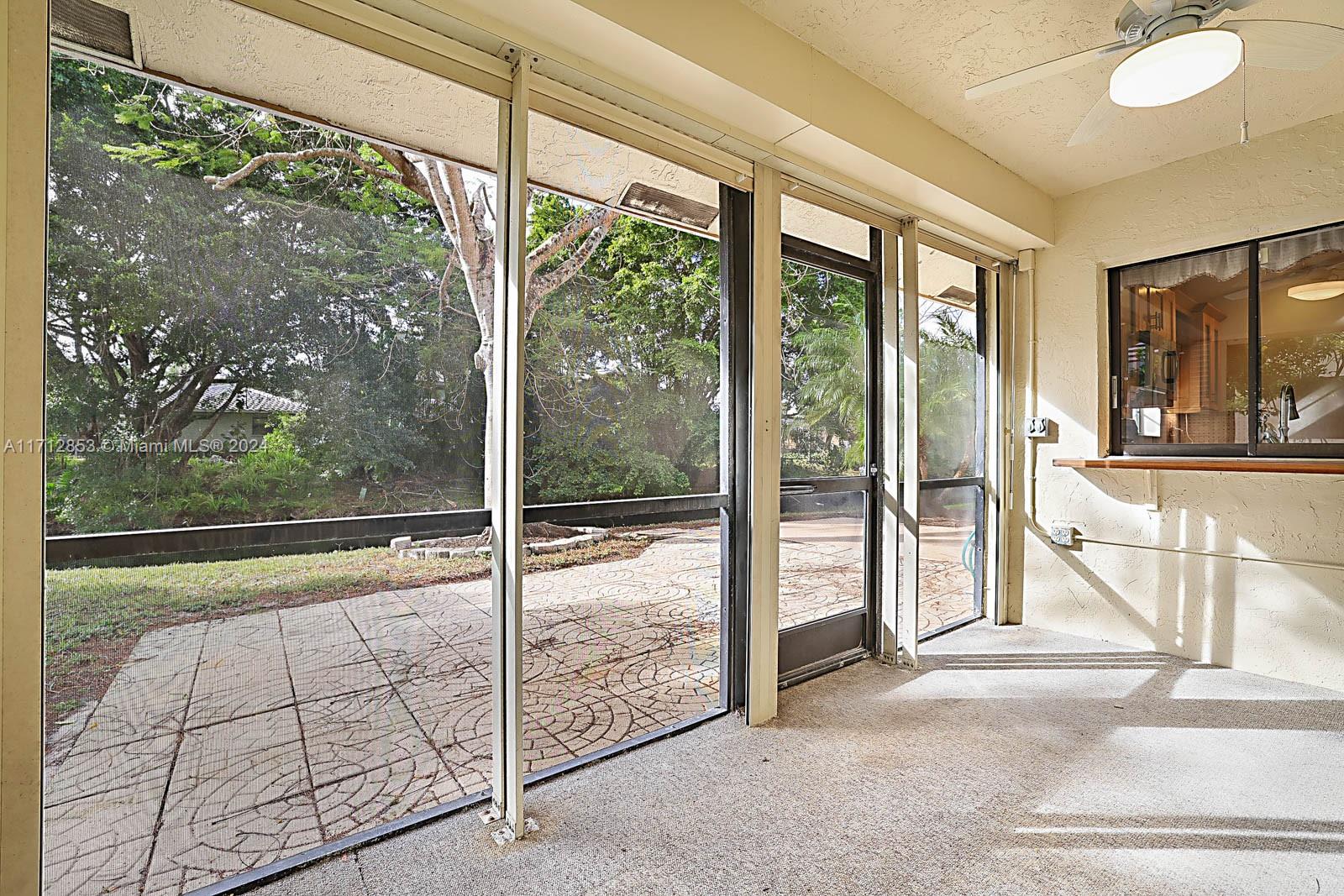 Located in the highly sought after community of Ramblewood Villas. Surrounded by lush landscaping. Located on a spacious waterfront lot. Park on your extended driveway & enter through the front doors & you are immediately greeted by the vaulted ceiling & natural lighting with views out to your screened patio & water view! 3 bedrooms 2 bathrooms and 1 car garage. Upgraded kitchen w/ granite countertops. Primary Bedroom features large walk-in closet and upgraded en-suite bathroom w/ walk in shower and dual vanities. Spacious bedrooms. Over 1,665 total square feet. Full size washer & dryer in the garage. New roof (2022) Hurricane Shutters. Community Pool. All ages community. HOA only $160 a month. Great location & surrounded by parks, shopping, dining and all that Coral Springs has to enjoy!
