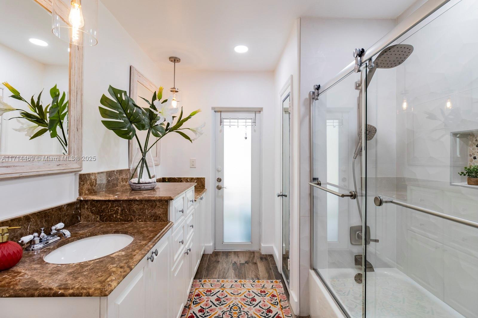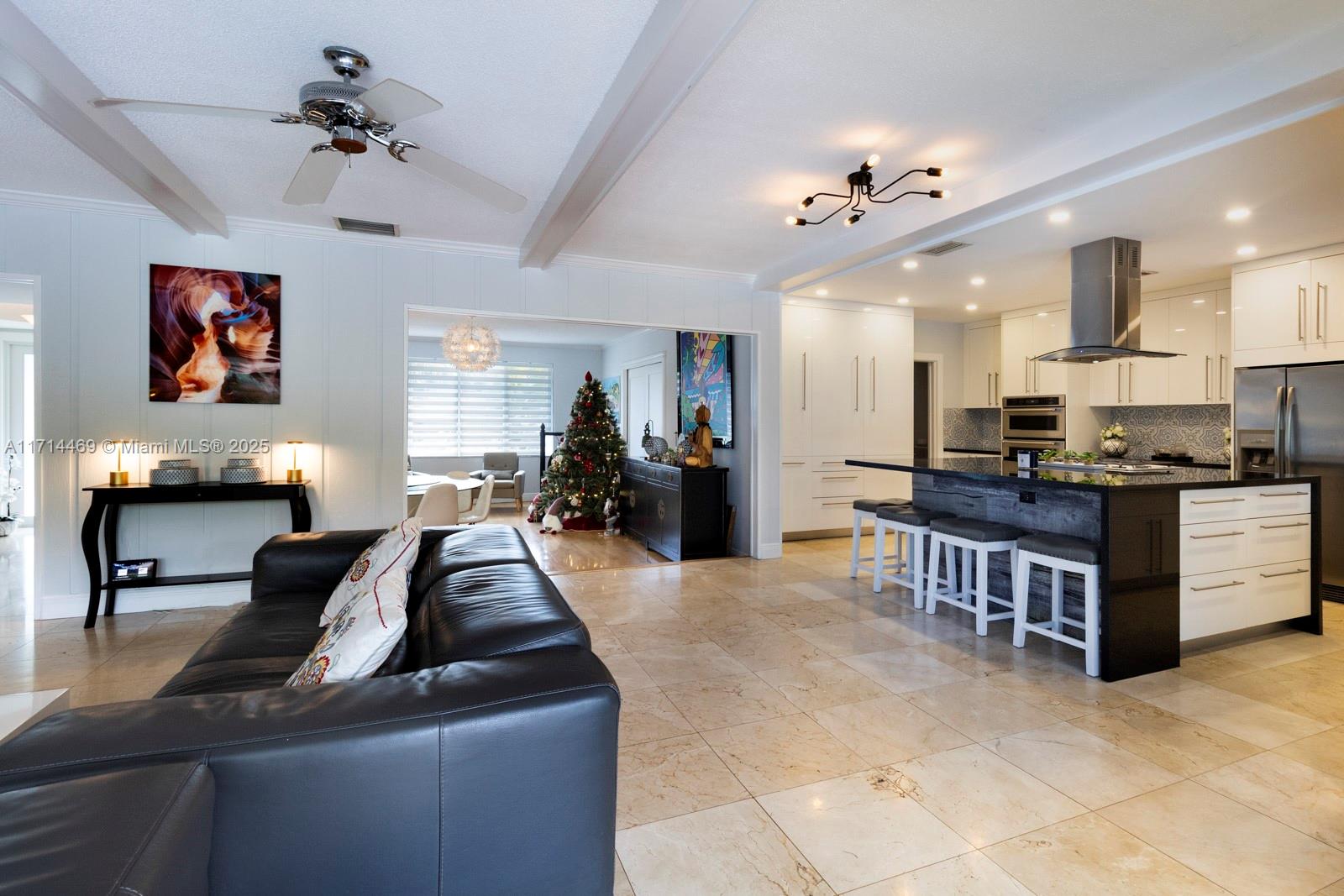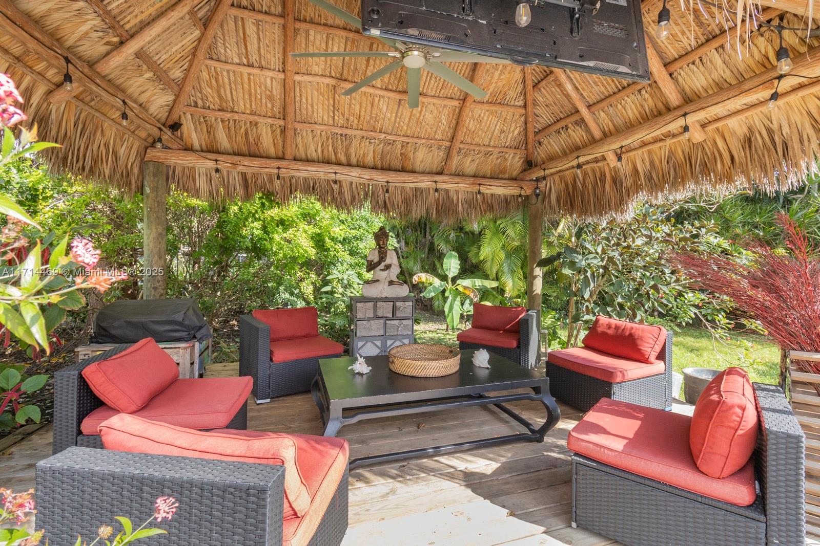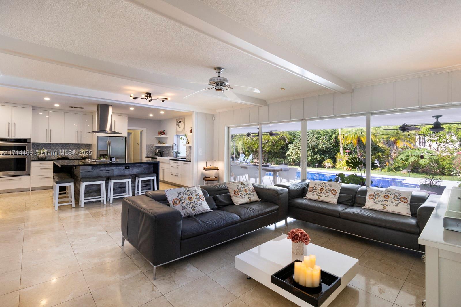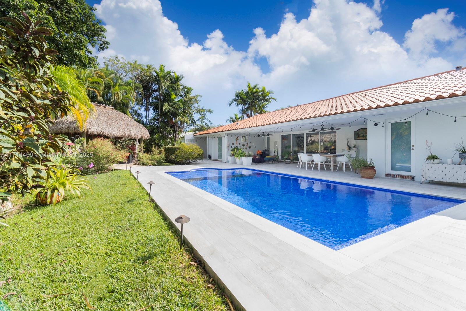 If a large open modern kitchen and spectacular pool/patio/ garden are what you are looking for, then this is the home for you!! Gorgeously updated family oasis located on a quiet street in one of the most sought after locations steps from Coral Reef Park in North Palmetto Bay! Major updates done between 2020-2024 include: beautiful state-of-the-art kitchen w/large island, impact glass windows and doors, new pool-patio area which includes stunning tiled pool, non-slippery/heat resistant porcelain patio deck, and fully refurbished Tiki hut ideal for entertaining! Newer AC units, bathrooms, and more! Big open living spaces, foyer, indoor laundry room. 3/2 (including primary bedroom) split from other 1/1.