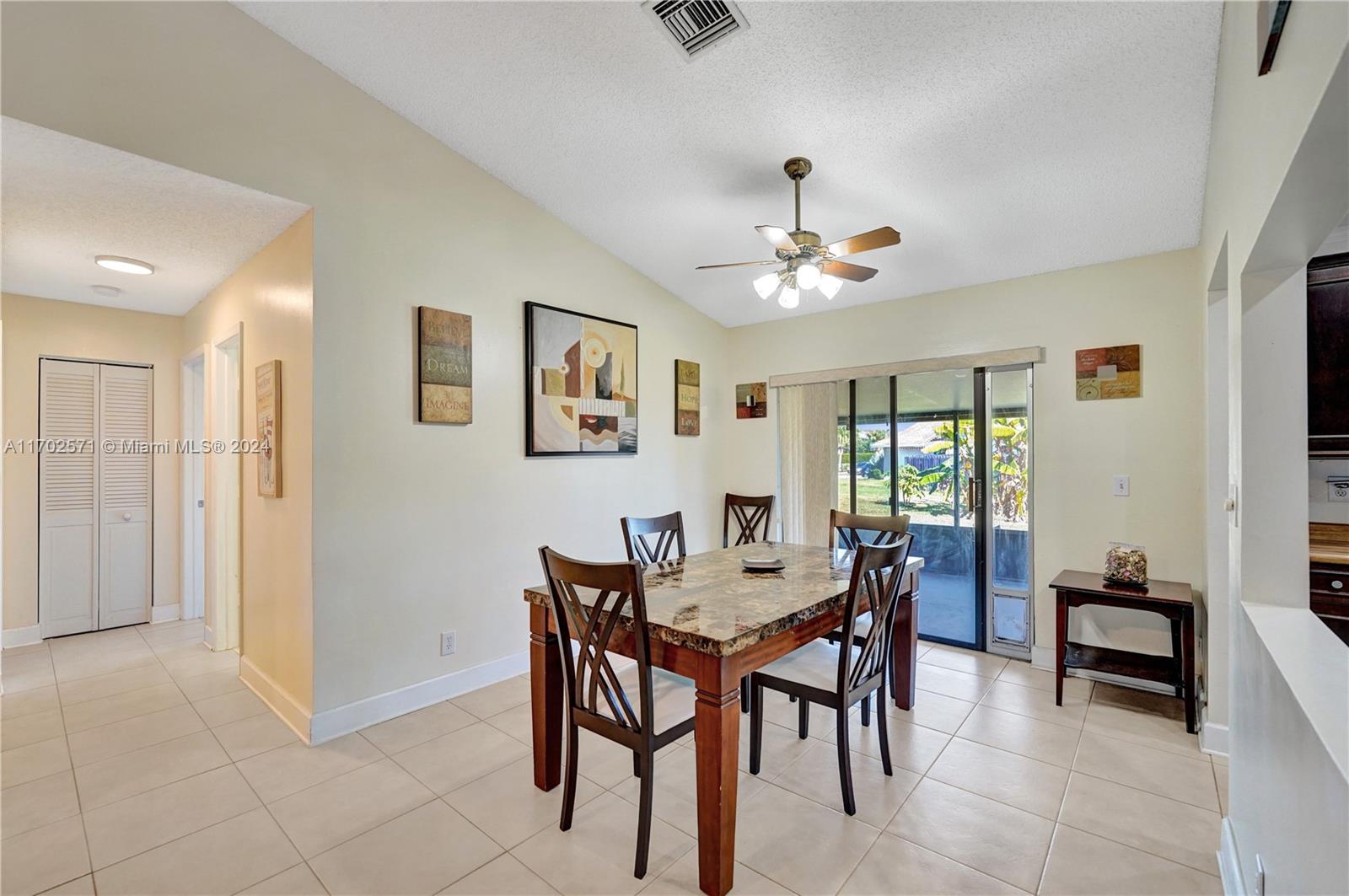 Light and bright, this 3 bed, 2 bath, 2 car garage home is waiting for you! Enjoy an open concept floor plan with tile flooring throughout, a spacious kitchen with newer appliances (2020-2021) and breakfast nook, tastefully remodeled baths, soaring vaulted ceilings and natural light in abundance. Outside, find a covered and screened patio perfect for lounging. Your comfort and energy efficiency are further enhanced with a newer A/C (2018) and roof installed in July 2016! Ideally located in the heart of Sunrise near top-rated schools, shopping, dining, parks, highways & more! No HOA!