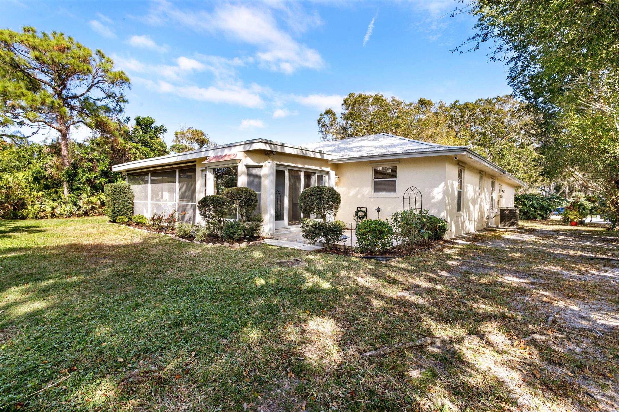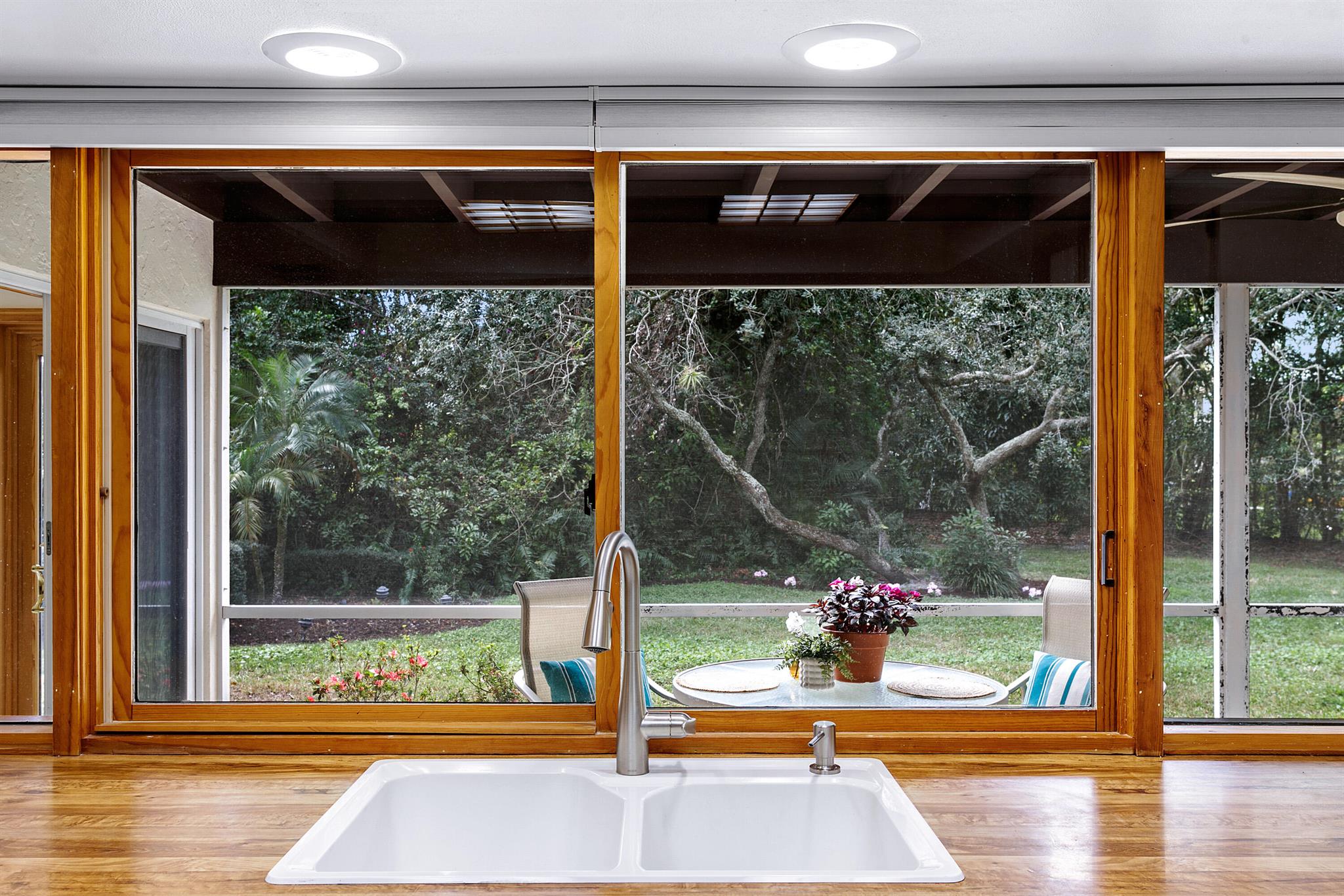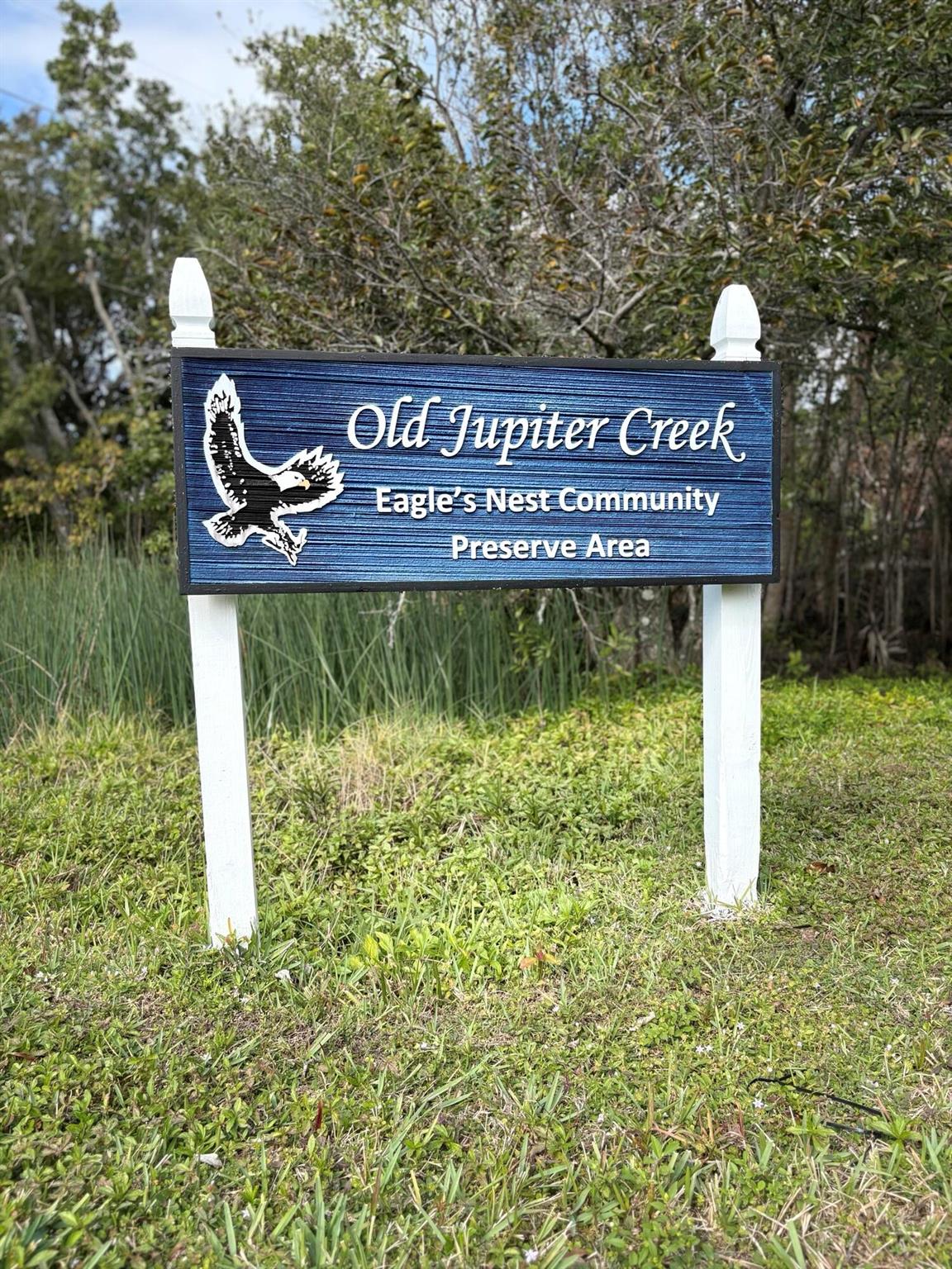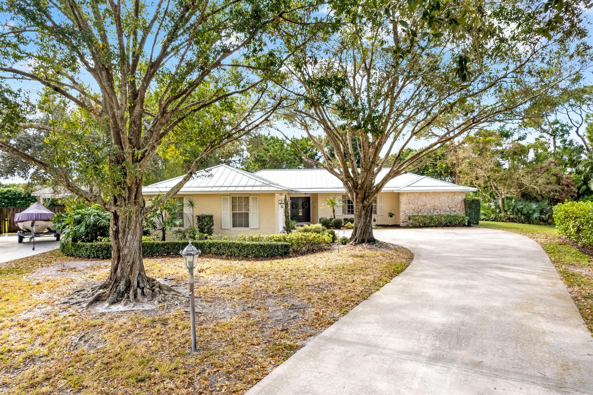Eagle's Nest consists of 98 homes and residents enjoy exclusive access to their HOA owned boat ramp and park on the Loxahatchee River. This 2000 sq foot home offers solid concrete block construction, 3 bedrooms, 2 baths, and is situated on a 1/2 acre cul-de-sac lot. Features include NEW METAL ROOOF (Dec 2024), hurricane protection, and a convenient split floorplan. The kitchen is bright & sunny with a wall of south facing windows overlooking the patio and private backyard. Ample closet space throughout plus additional storage in the laundry room. Plenty of room for a big pool, boat storage, guest cottage, and gardening. HOA fees = $750 / year. A-rated Jupiter schools. Here you are about 10 minutes from the beach, and close to shopping and I-95 & the Turnpike.