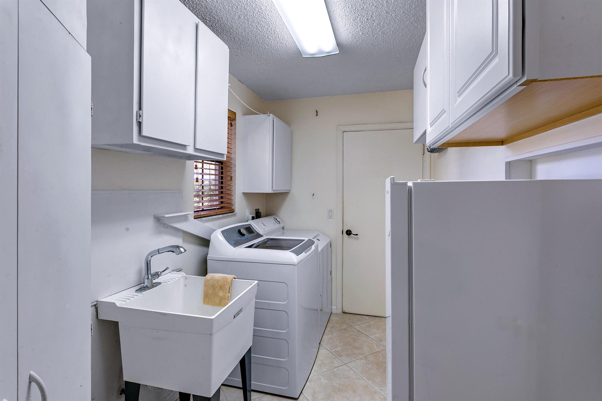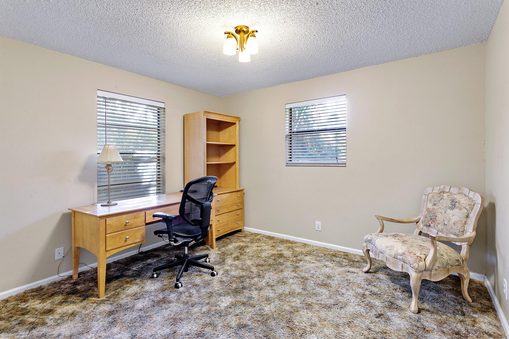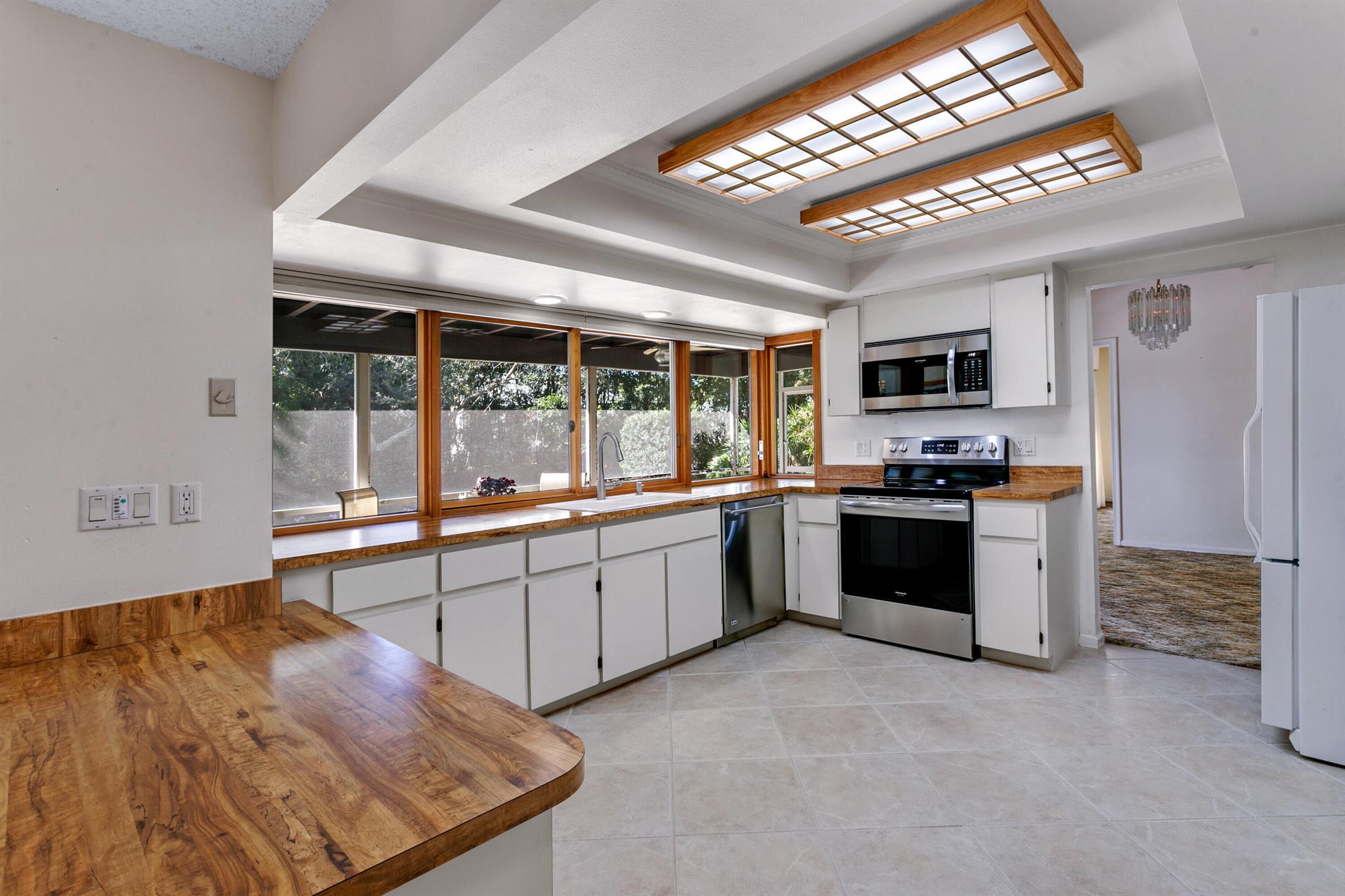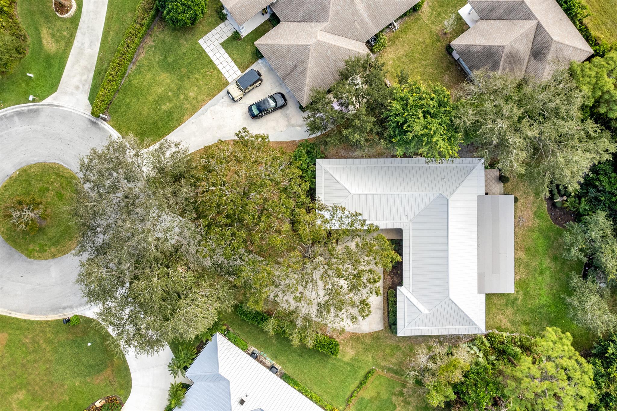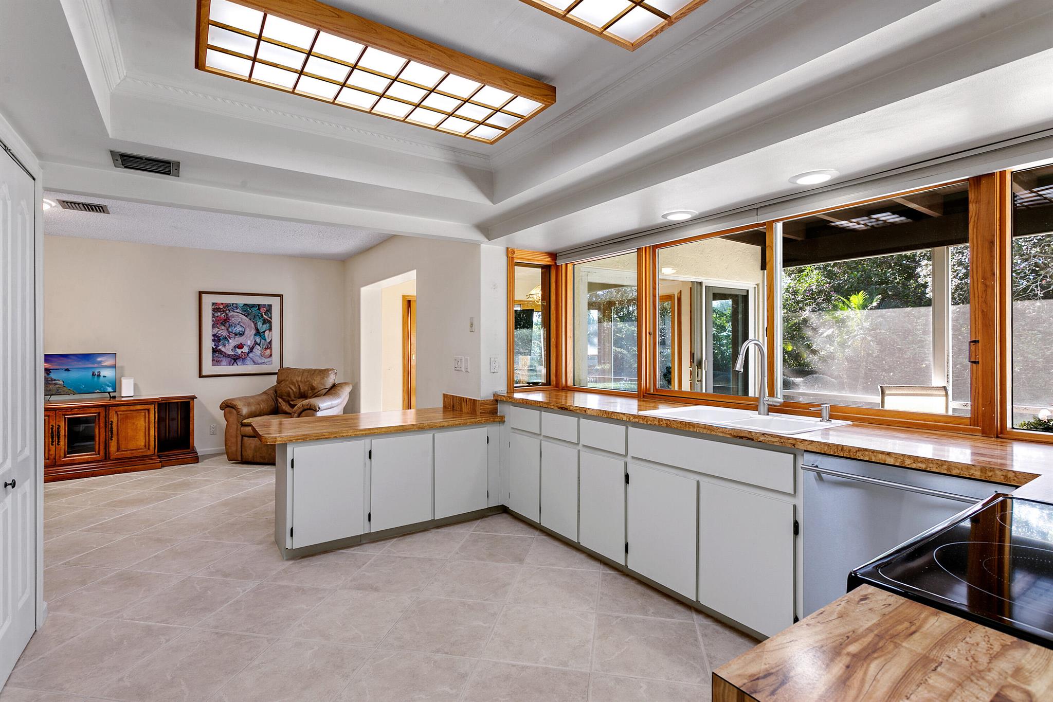 Eagle's Nest consists of 98 homes and residents enjoy exclusive access to their HOA owned boat ramp and park on the Loxahatchee River. This 2000 sq foot home offers solid concrete block construction, 3 bedrooms, 2 baths, and is situated on a 1/2 acre cul-de-sac lot. Features include NEW METAL ROOOF (Dec 2024), hurricane protection, and a convenient split floorplan. The kitchen is bright & sunny with a wall of south facing windows overlooking the patio and private backyard. Ample closet space throughout plus additional storage in the laundry room. Plenty of room for a big pool, boat storage, guest cottage, and gardening. HOA fees = $750 / year. A-rated Jupiter schools. Here you are about 10 minutes from the beach, and close to shopping and I-95 & the Turnpike.
