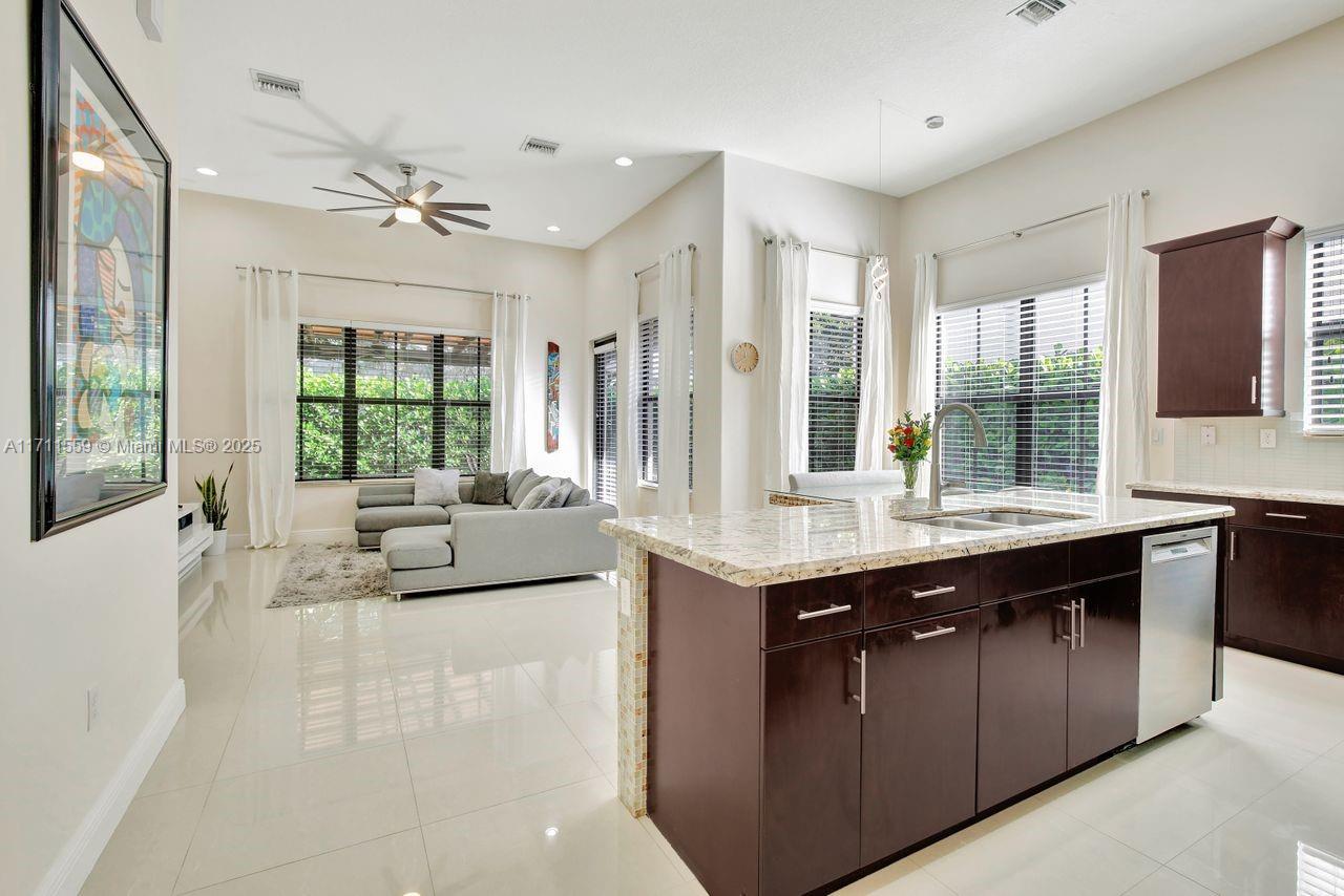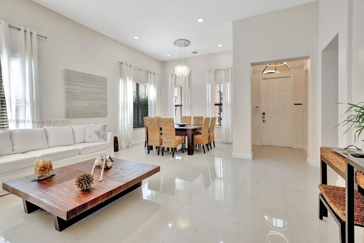 Welcome to Monterra, Cooper City's most sought after gated community. This resort-style neighborhood offers top-tier security, a clubhouse with state-of-the-art fitness center, pool, waterpark, tennis, basketball courts, walking trains & 3 playgrounds. Four-bedroom, three-bathroom home that blends elegance with comfort. The kitchen features 42” wood cabinetry, upgraded stainless steel appliances, complemented by an expansive pantry & a sunlit breakfast nook. Impact windows throughout. Soaring 12+ ft ceilings. Home warranty available. Custom closets throughout. New A/C (2 Years) The newly added pergola and private fully-fenced backyard are perfect for outdoor entertaining or enjoying peaceful evenings at home, surrounded by lush trees. A+ Rated schools, minutes from airport.