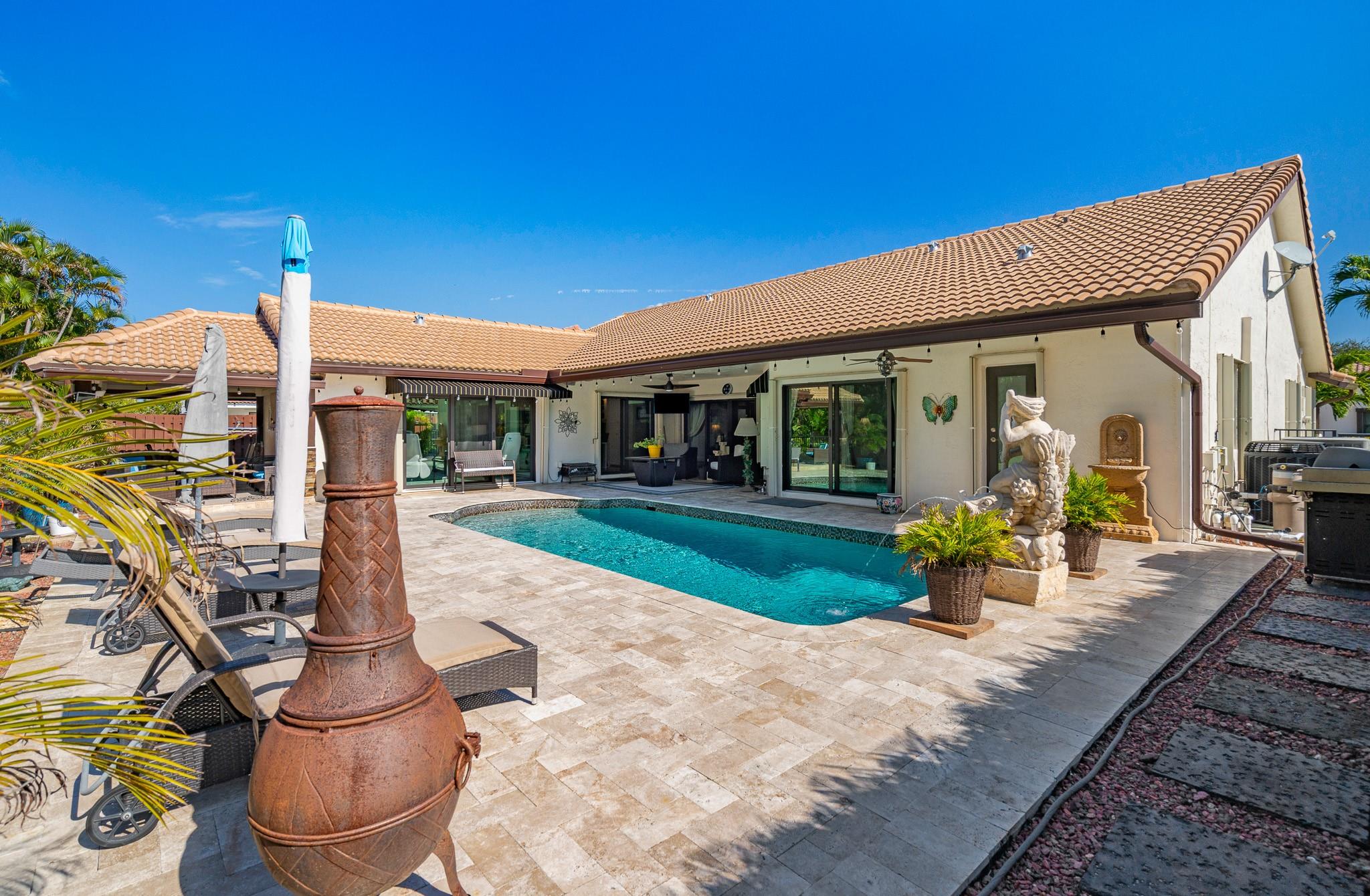 Welcome Home to your own slice of paradise w tons of homeowner pride, canal w private resort-like setting. Open floor plan, family room, formal dining room & great room boasting w natural light. Circular driveway, tropical lush landscaping & breathtaking sunsets. Owner spared no expense w endless list of upgrades. NEW roof, Hurricane Impact sliders, skylight, front doors & windows, NEW pool heater, Entire home w NEW filtration system, removed old & NEW attic insulation, removed popcorn, NEW tile in primary bedroom, 2 bedrooms & family room, NEW kit appliances, quartz counters & LED lighting, NEW interior & exterior paint, NEW garage motor, NEW gutters, driveway stripped & resealed, NEW awnings & iron fence/gate. Tons of parks, restaurants & shops to choose from. Close to all major hwys.