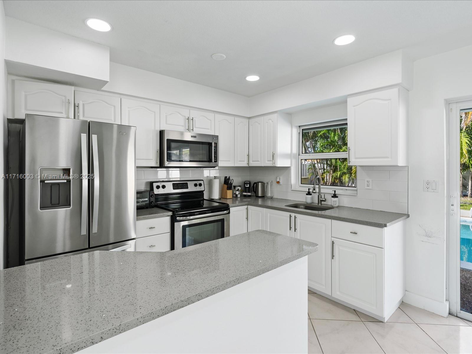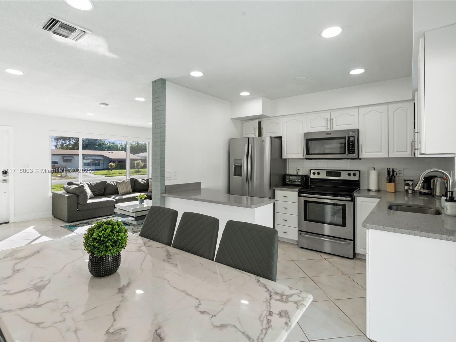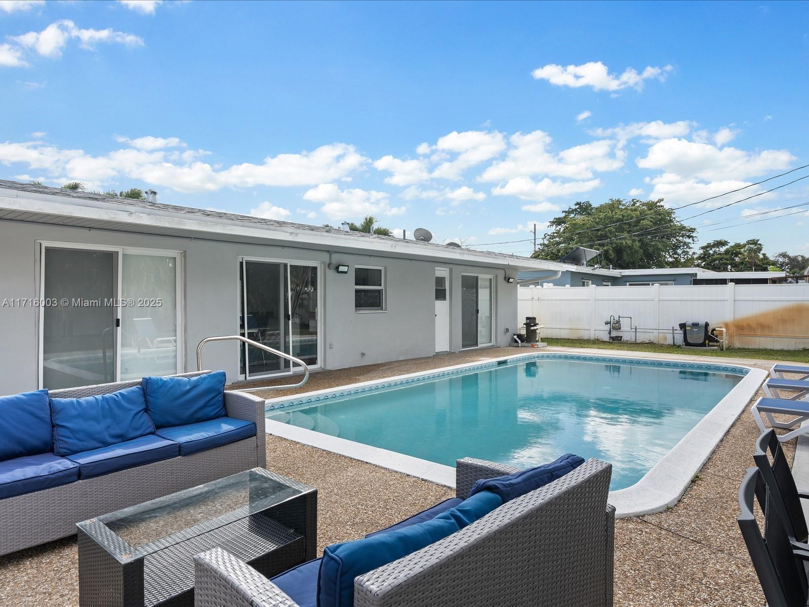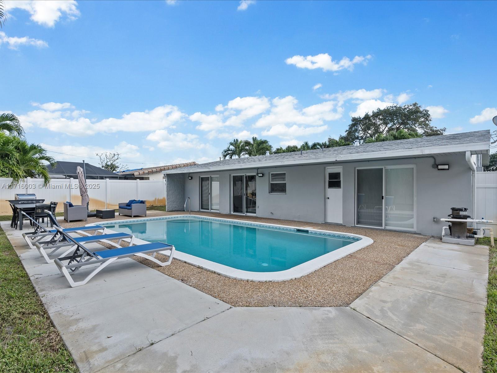 Step into modern living with this 3-bedroom, 2-bathroom gem featuring a 2020 roof, impact windows, and a 2021 A/C system. The sleek kitchen boasts stainless steel appliances and a spacious layout, perfect for entertaining. Enjoy Florida's sunshine year-round with a heated pool and lush backyard, visible through large sliding glass doors. Outdoor storage adds convenience, while the stylish front facade enhances curb appeal. Located in a sought-after neighborhood, this home is perfect for families or investors. Don't miss out—schedule a tour today!