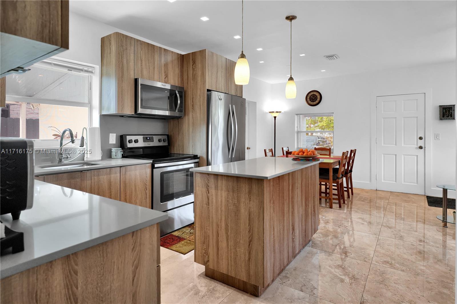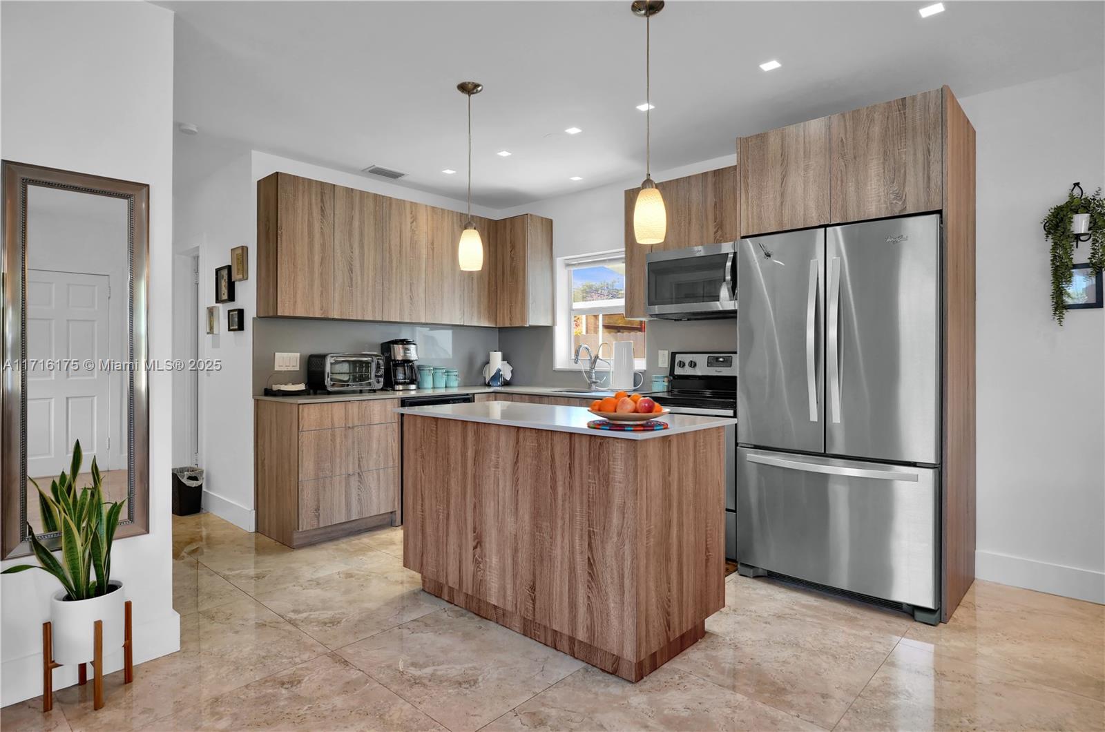 This beautifully remodeled 3-bedroom, 2-bathroom Home is nestled in a quiet, Family-friendly neighborhood just minutes from the vibrant Aventura. The spacious Open Floor living room is perfect for entertaining guests or relaxing with your Family. The updated Kitchen is a chef's dream, with Stainless Steel Appliances, Granite countertops, and plenty of cabinet space. The primary Bedroom has an en-suite Bathroom and a walk-in Closet. The two additional Bedrooms share a well-appointed Bathroom. But the Home's highlight is the amazing Backyard. The expansive patio is perfect for hosting barbecues or simply enjoying the Florida sunshine. The lush landscaping provides plenty of Privacy. Minutes to Aventura Mall, fine dining at some of the best Restaurants, and a variety of places of worship.