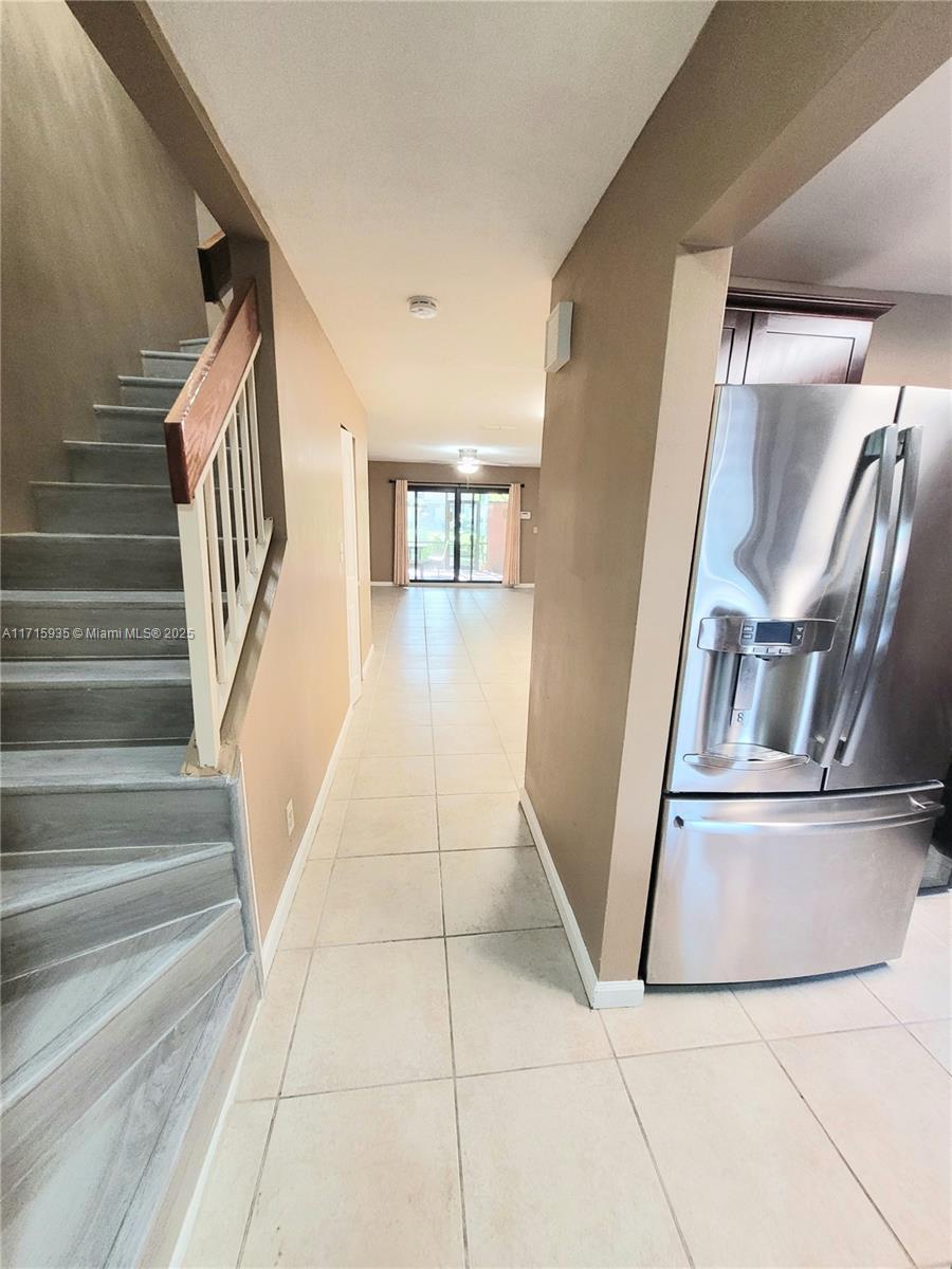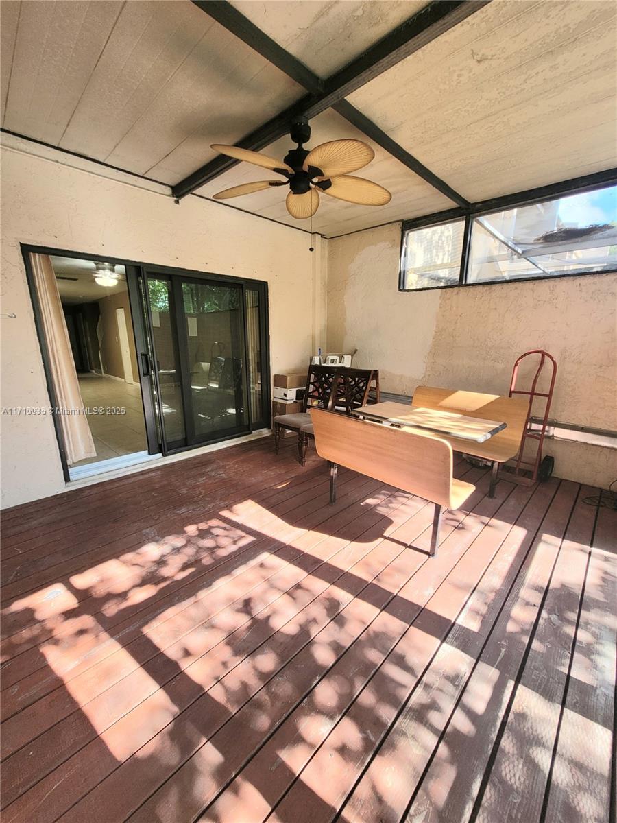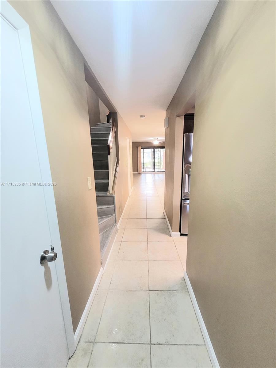 SPACIOUS 2BDRM & 2.5BATHS. Get ready for school ahead of time with it's secluded location at the dead end of the street, children can play safely! Check out the photos! Miami-Dade County impact windows throughout. Additional glass-door cupboards and countertop as well as a wine cooler, pull-out pantry and lazy Susan in kitchen. Stainless steel appliances. Art-deco lighting fixtures throughout. Art-deco half bath. Remote-controlled fans and detail in each bedroom. New WOOD FLOOR upstairs. Tile flooring downstairs. Party on your enclosed deck with a lovely lake view.