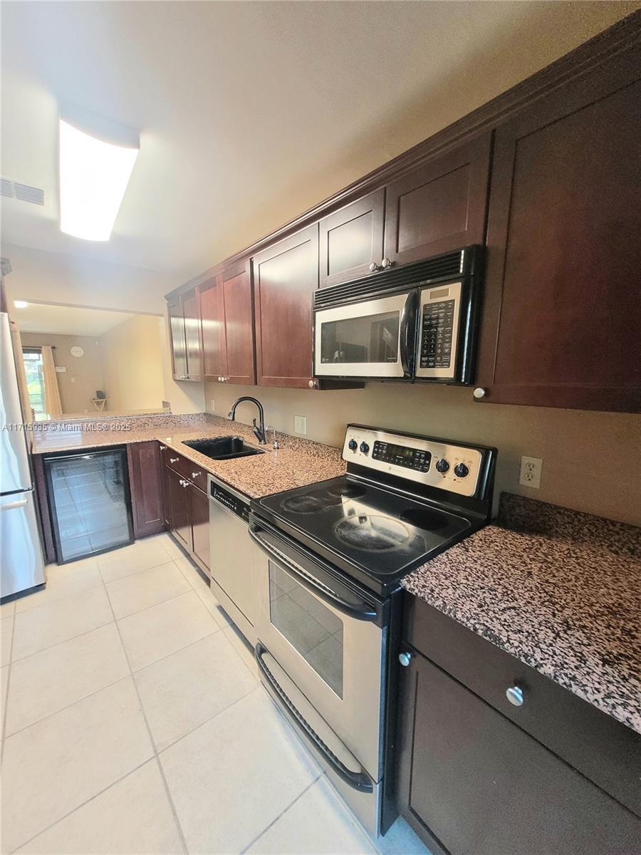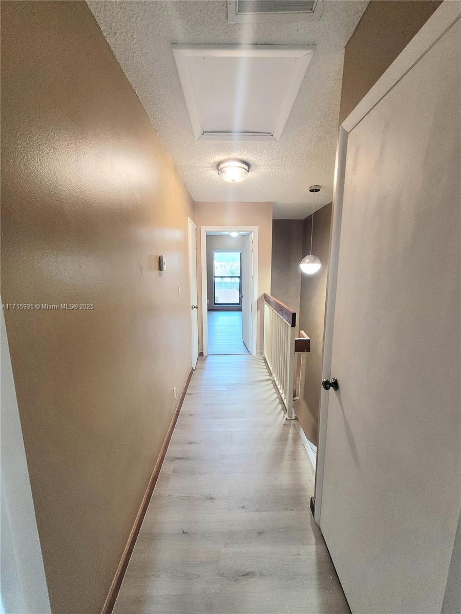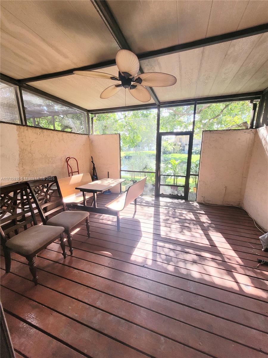 SPACIOUS 2BDRM & 2.5BATHS. Get ready for school ahead of time with it's secluded location at the dead end of the street, children can play safely! Check out the photos! Miami-Dade County impact windows throughout. Additional glass-door cupboards and countertop as well as a wine cooler, pull-out pantry and lazy Susan in kitchen. Stainless steel appliances. Art-deco lighting fixtures throughout. Art-deco half bath. Remote-controlled fans and detail in each bedroom. New WOOD FLOOR upstairs. Tile flooring downstairs. Party on your enclosed deck with a lovely lake view.