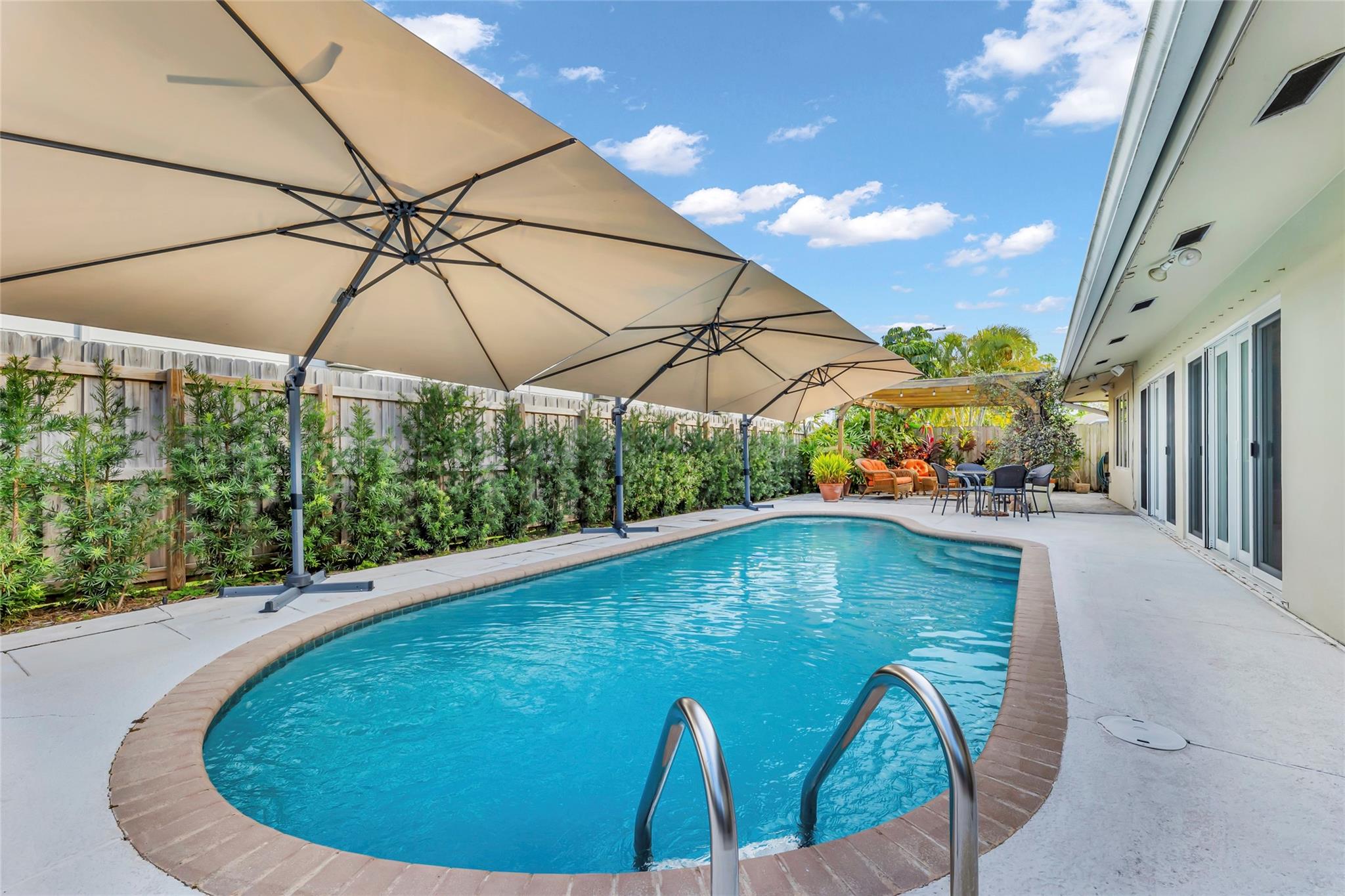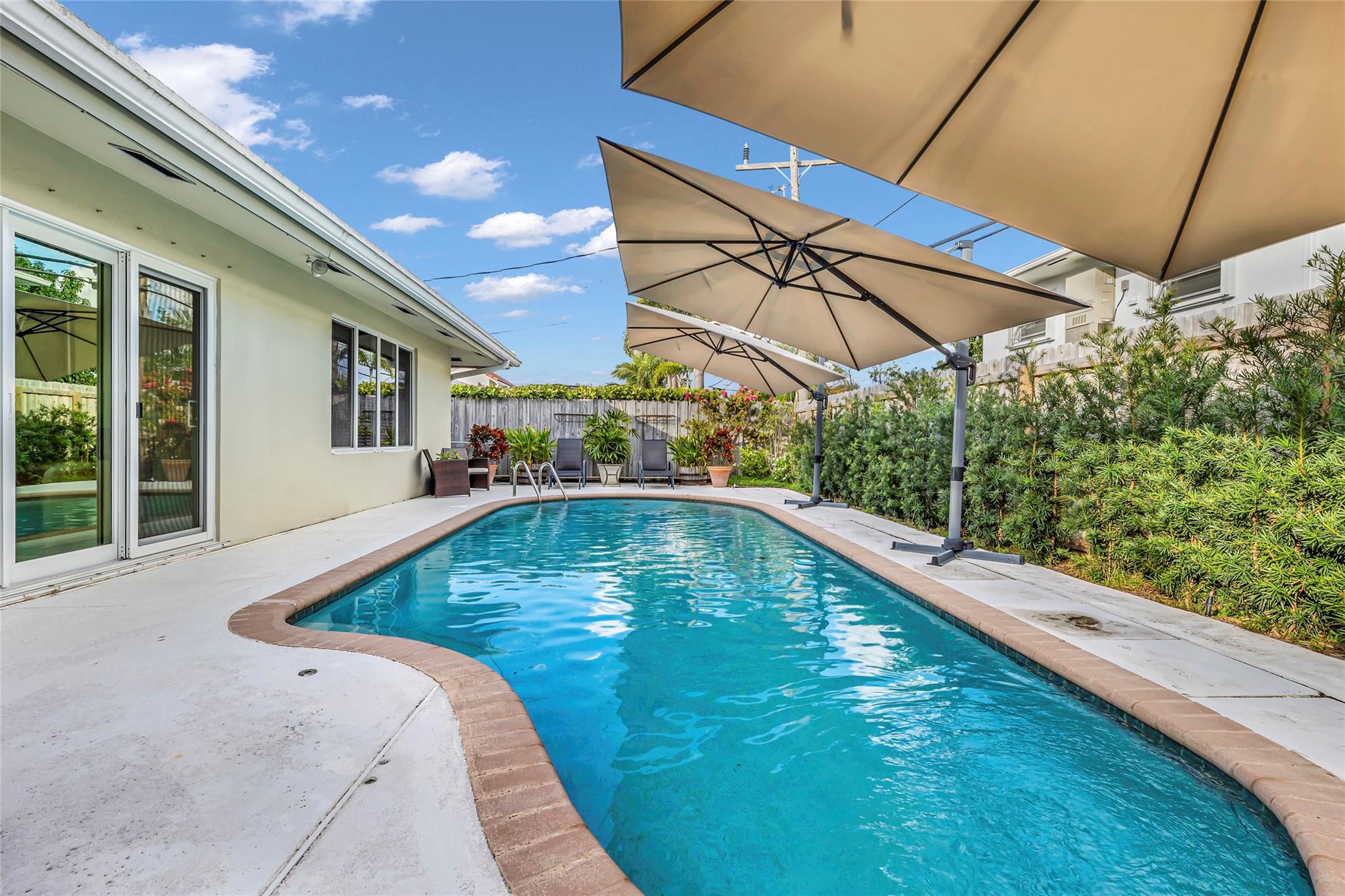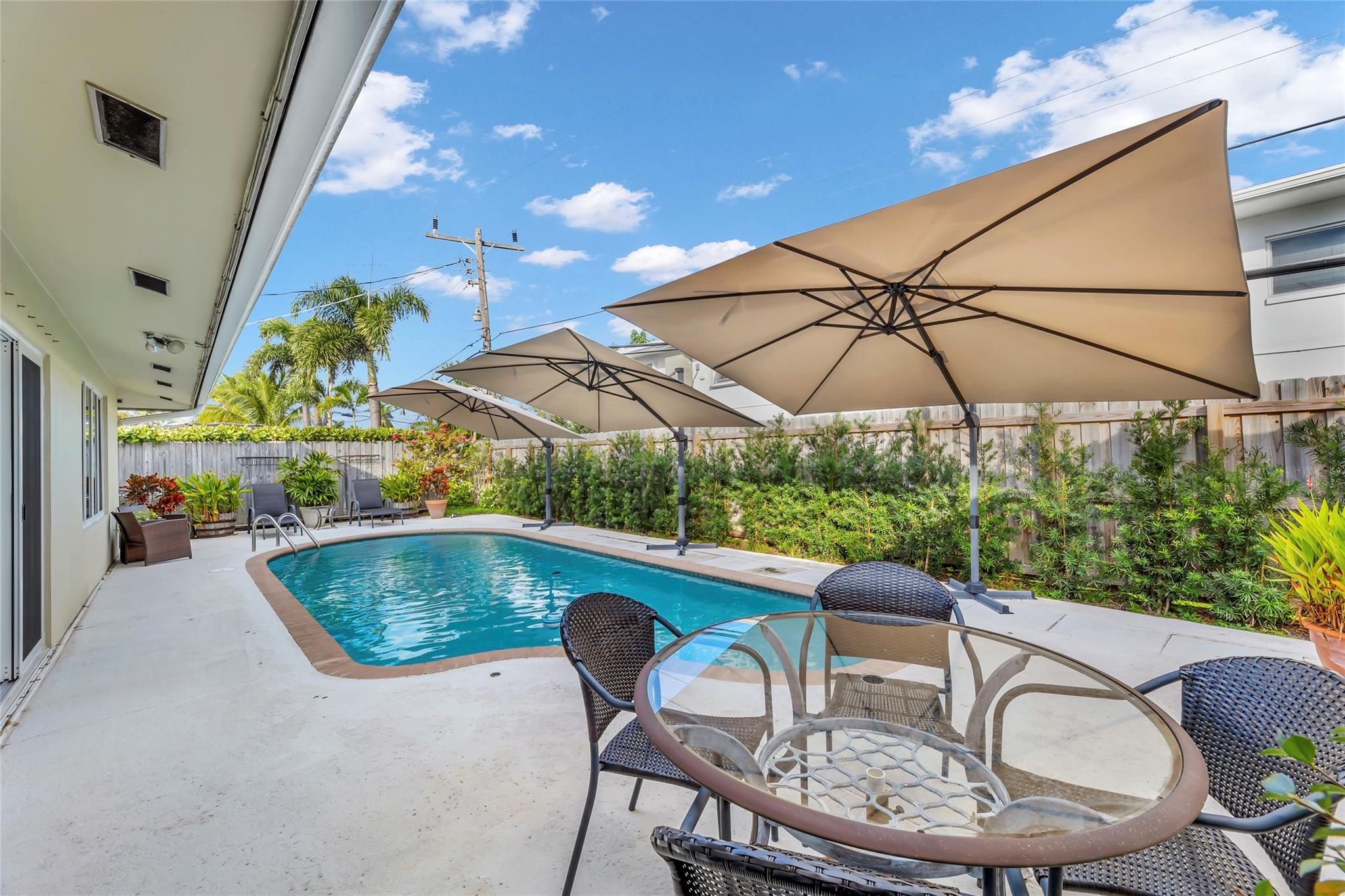 Discover the ultimate Pompano Beach lifestyle in this inviting home, set on a spacious, expanded lot surrounded by swaying palm trees and lush, tropical landscaping. This serene property offers the perfect retreat with its private, no-HOA setting, allowing you to enjoy peace and tranquility in a welcoming community. The home with new roof is designed for comfort and security, featuring impact windows, doors, and a reinforced garage door for added protection. Stay cool year-round with a brand-new AC system (backed by a 10-year transferable warranty). The outdoor oasis includes a sparkling swimming pool and a charming pergola, ideal for lounging or entertaining. Additional highlights include natural gas service and a small generator hookup for convenience and peace of mind.
