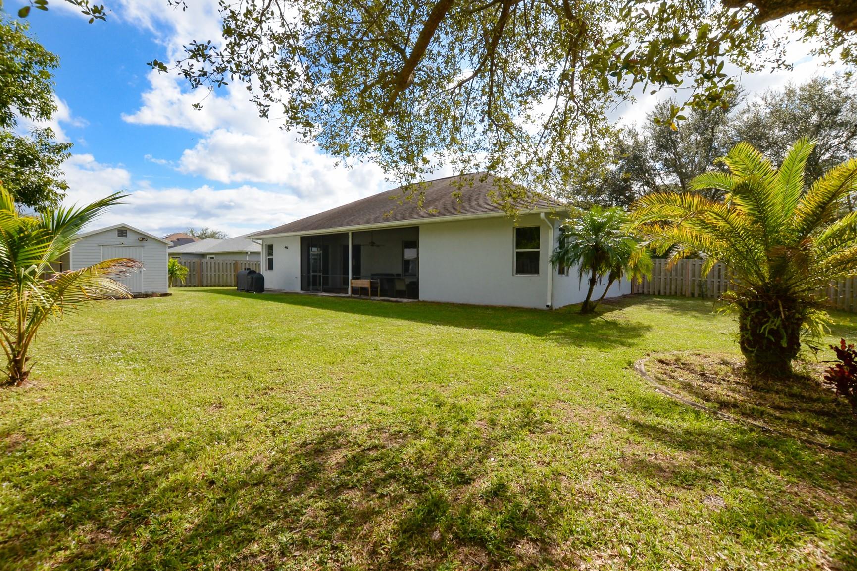 Spacious and Open 3 Bedroom 2 bath Home with over 2,000 square feet under air, situated on a Large Oversized Fenced Corner Lot. NO HOA FEES -Den can be a 4th bedroom. Oversized bedrooms, Master and Guest bedroom have access to the tiled screened in porch. Brand new Tankless Water Heater just installed. Newer tile throughout entire home. Air Conditioner replaced 2 years ago and Washer and Dryer replaced 2 years ago. Backyard backs up to city owned lot for great privacy. Large Corian kitchen countertop with bar seating, Stainless Steel Refrigerator and Dishwasher. Master Suite has walk in shower and large soaking tub with jets. Large Shed is included. This home won't last.
