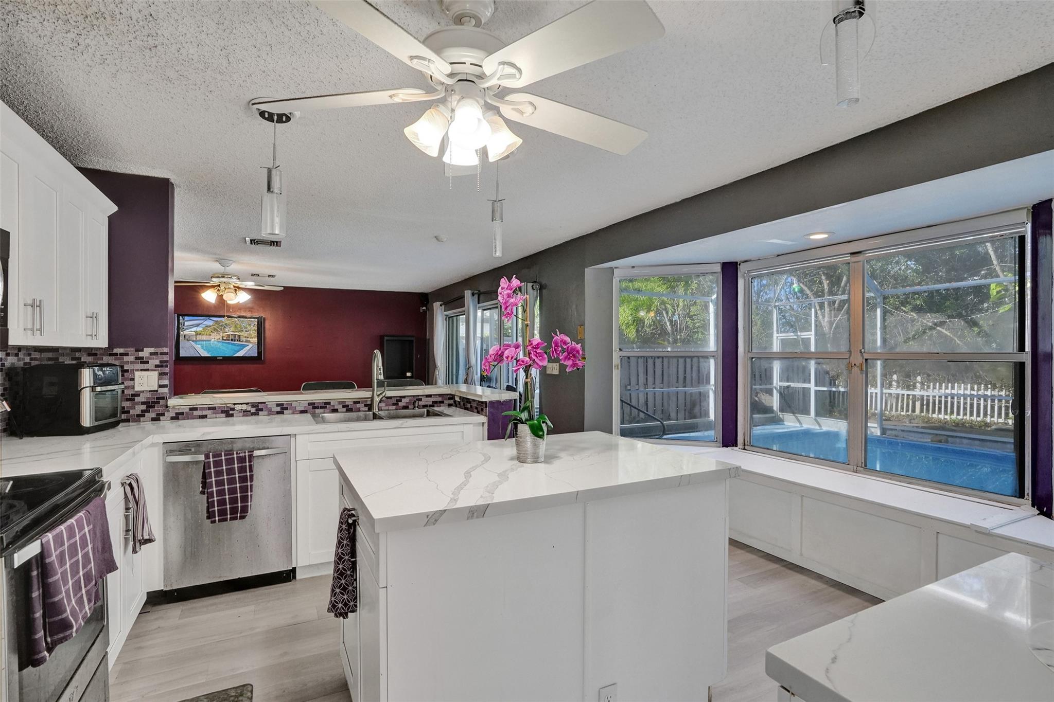 Welcome to your dream home in the sought-after gated community of The Landings of Pembroke Pines! This spacious 2-story home has a brand new roof currently being installed and just passed the final inspection! Step inside to be greeted by vaulted ceilings that create a bright, welcoming atmosphere. The open floor plan is perfect for entertaining, with a large entryway, dining area, and living space. The kitchen was fully renovated in 2020, and has views of the oversized pool, which was also resurfaced in 2019. Additional features include a 2-car garage, large backyard with no neighbors behind you, screened in patio, and 24/7 security in the community. Conveniently located near top-rated restaurants, Publix, parks, and outstanding schools. Don’t miss out!