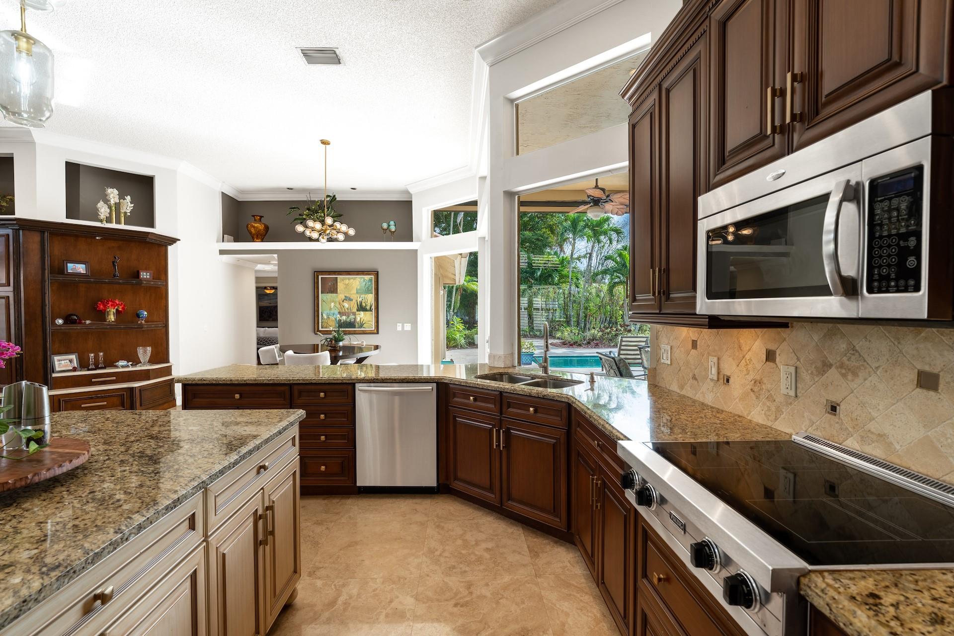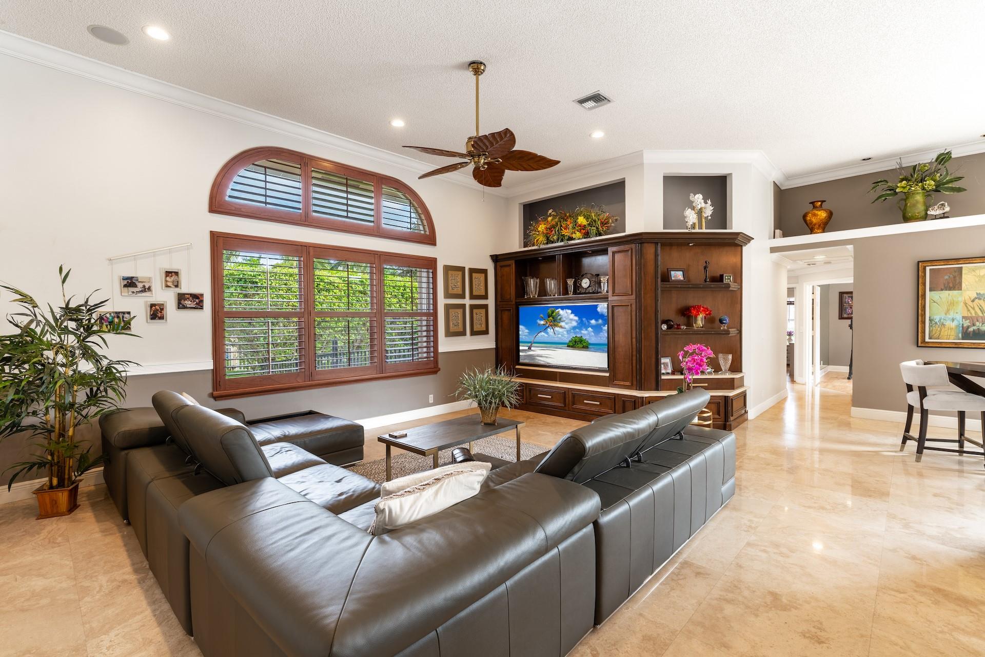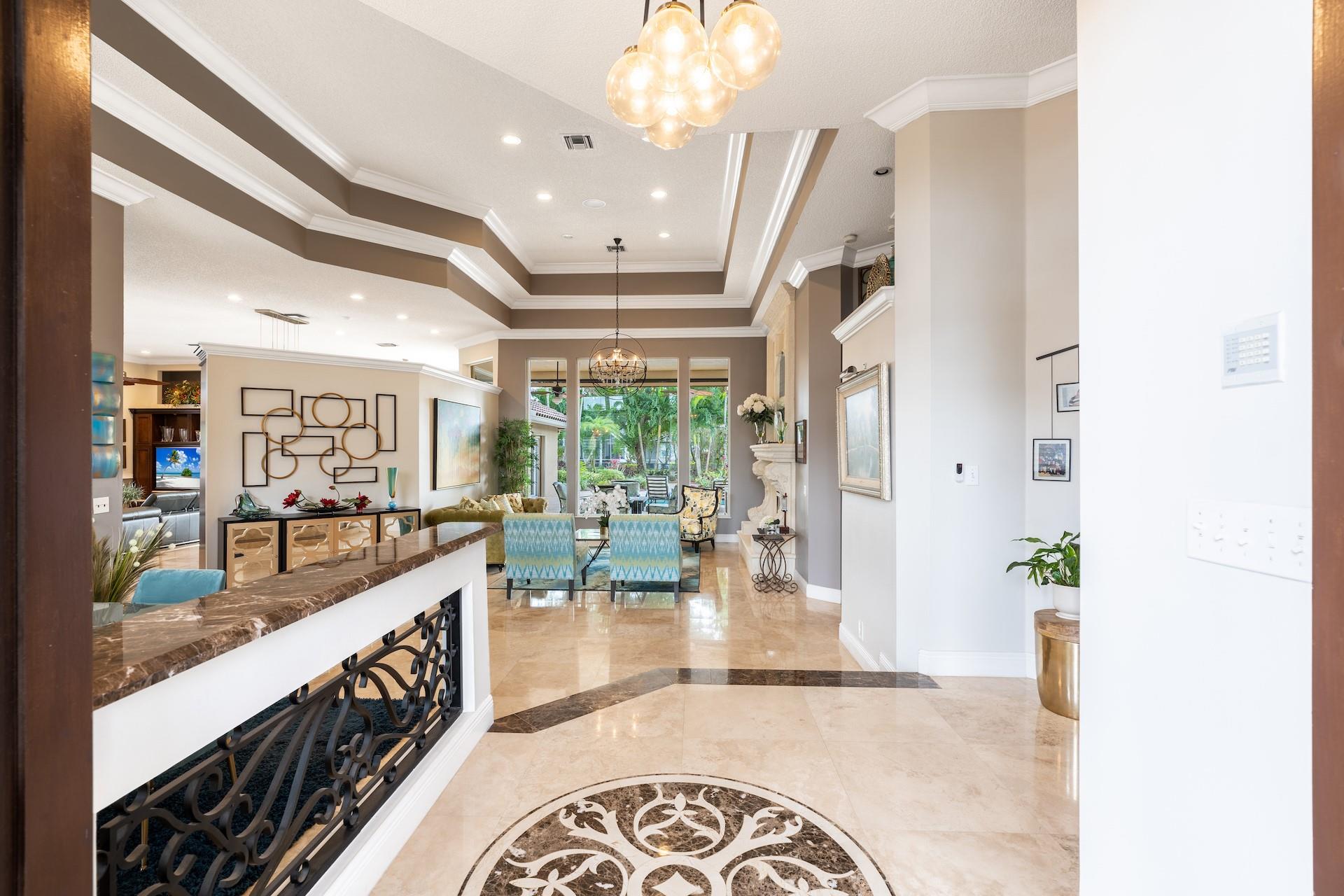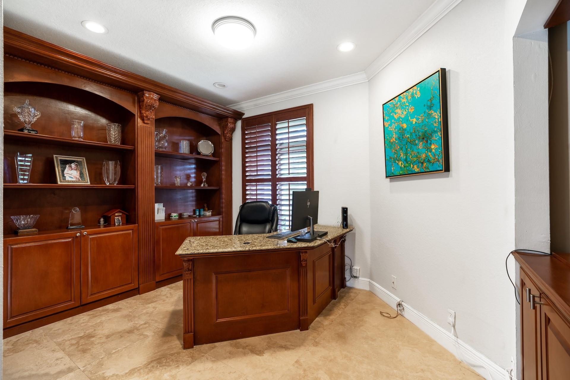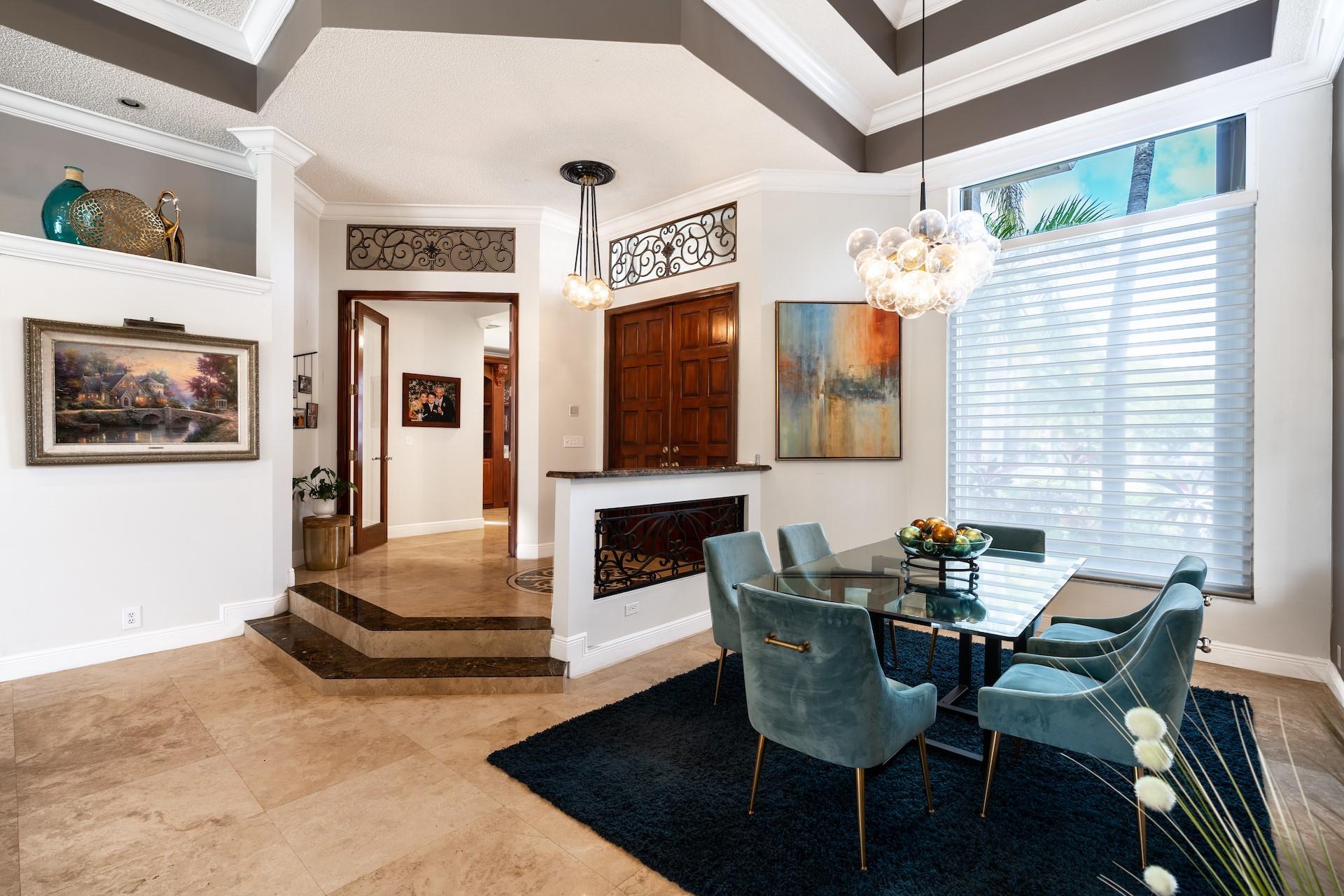 Luxurious home on spacious .42 acre cul-de-sac lot. This meticulously maintained home features soaring double tray ceilings, marble flooring in main living areas, custom kitchen with beautiful dark wood cabinetry, premium stainless-steel appliances and granite countertops. Master bedroom has 2 walk-in closets, motorized shades and updated ensuite bathroom. 5th bedroom is used as an office with custom built-ins. One of the bedrooms is currently used as a gym, complete with a private sauna. The pool/patio area recently received a 60k upgrade with new travertine tiles, remarcited pool and new spa equipment. Roof was replaced in 2017. 2 new a/c units in 2022. Motorized hurricane screen covers back patio and accordion shutters elsewhere. Furniture negotiable.