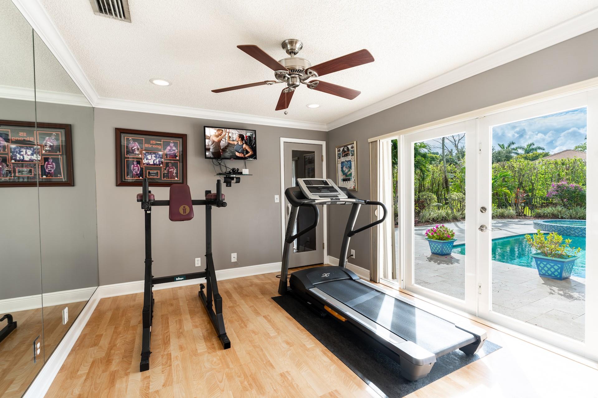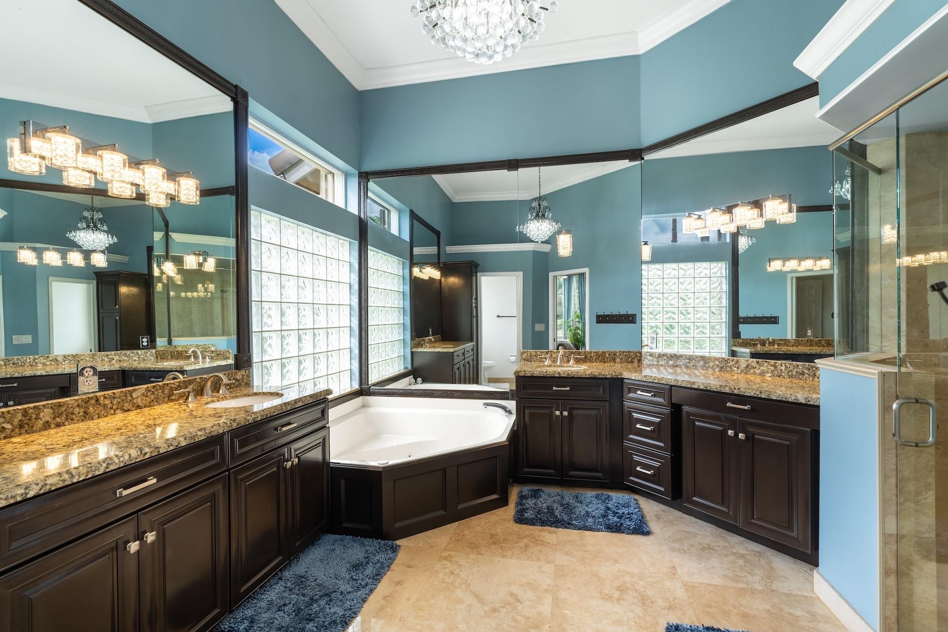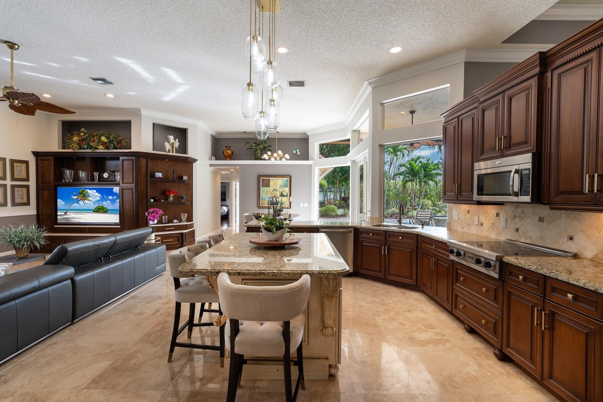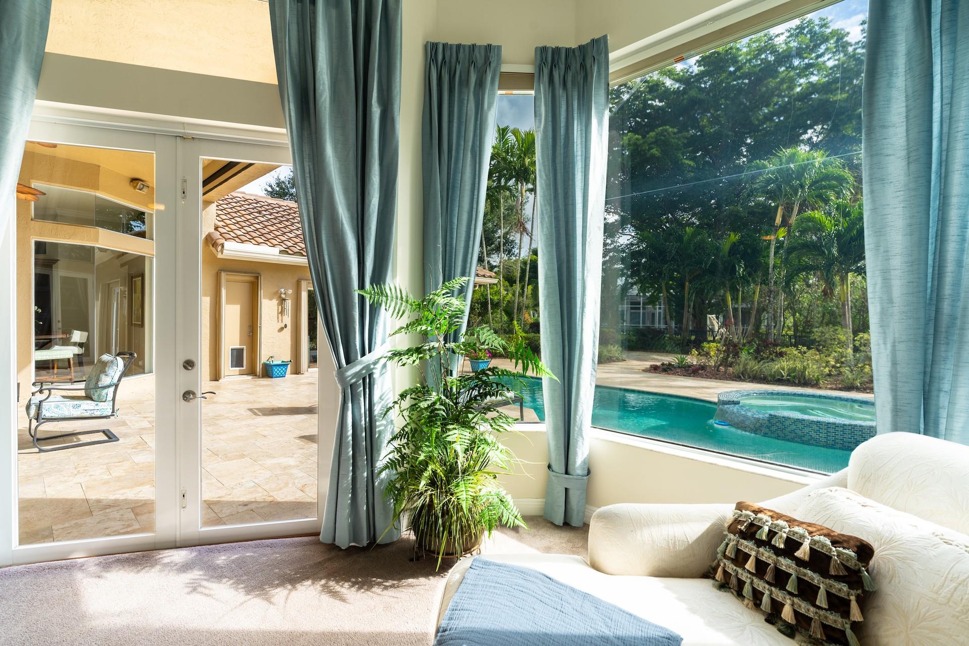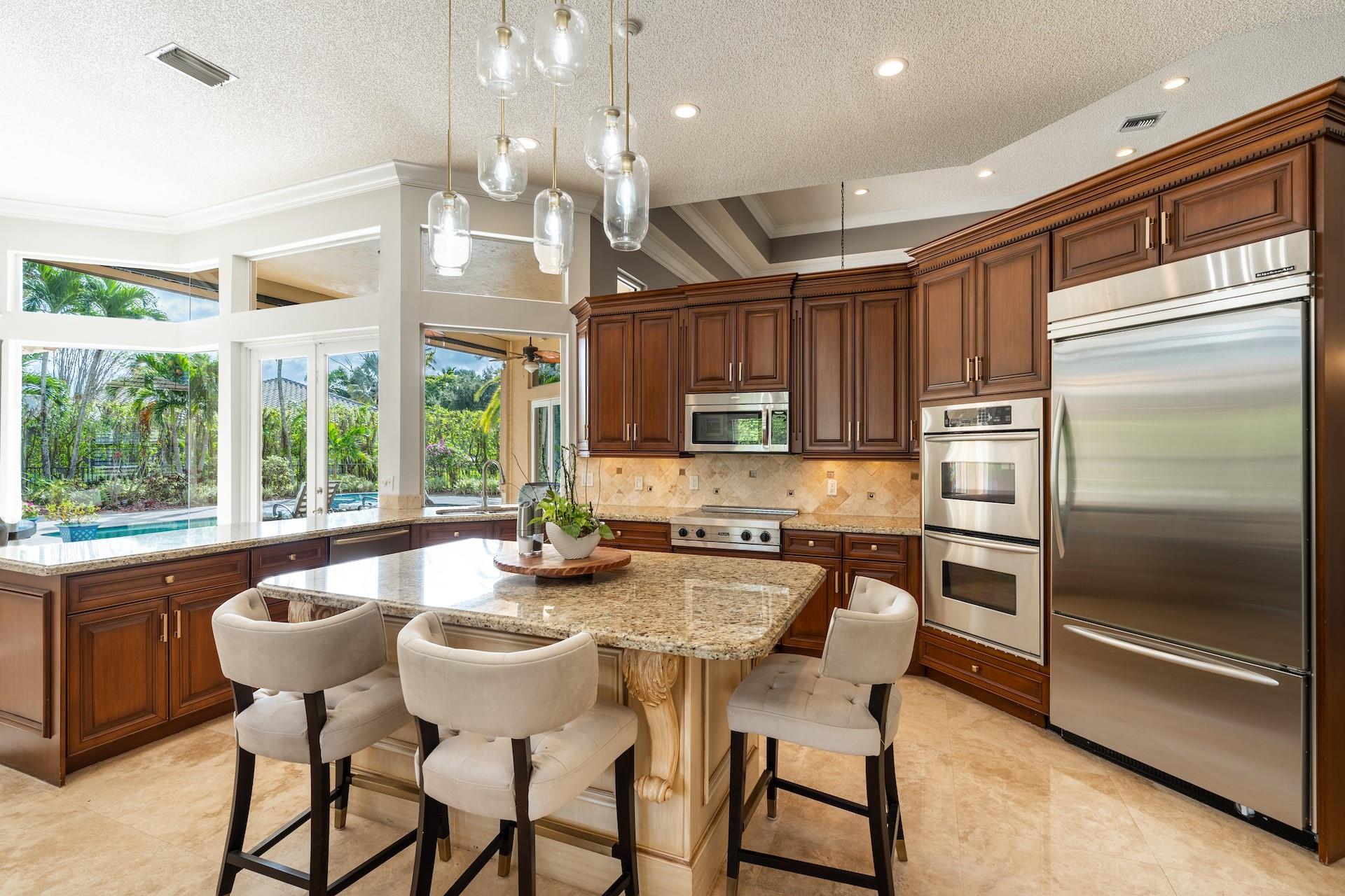 Luxurious home on spacious .42 acre cul-de-sac lot. This meticulously maintained home features soaring double tray ceilings, marble flooring in main living areas, custom kitchen with beautiful dark wood cabinetry, premium stainless-steel appliances and granite countertops. Master bedroom has 2 walk-in closets, motorized shades and updated ensuite bathroom. 5th bedroom is used as an office with custom built-ins. One of the bedrooms is currently used as a gym, complete with a private sauna. The pool/patio area recently received a 60k upgrade with new travertine tiles, remarcited pool and new spa equipment. Roof was replaced in 2017. 2 new a/c units in 2022. Motorized hurricane screen covers back patio and accordion shutters elsewhere. Furniture negotiable.