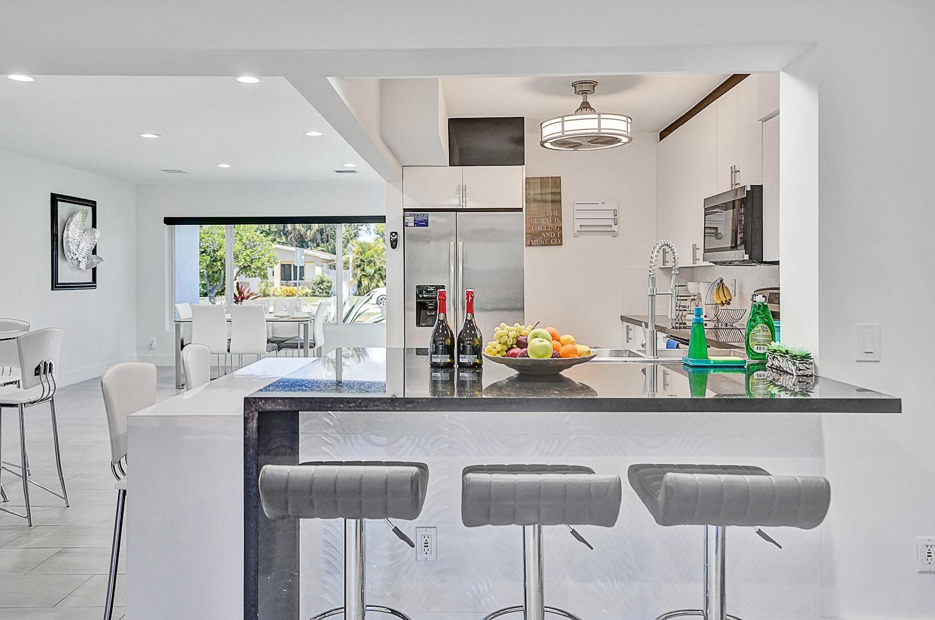 Fully remodeled with permits, open concept, salt water pool with new diamond bright surface, excellent location for a vacation rental, 5 minutes from the beach and Young Circle, I-95 quickly and easily accessible, 15 minutes away from Ft Lauderdale Airport, large driveway that fits up to 6 cars, furniture negotiable, beautiful tropical landscaping