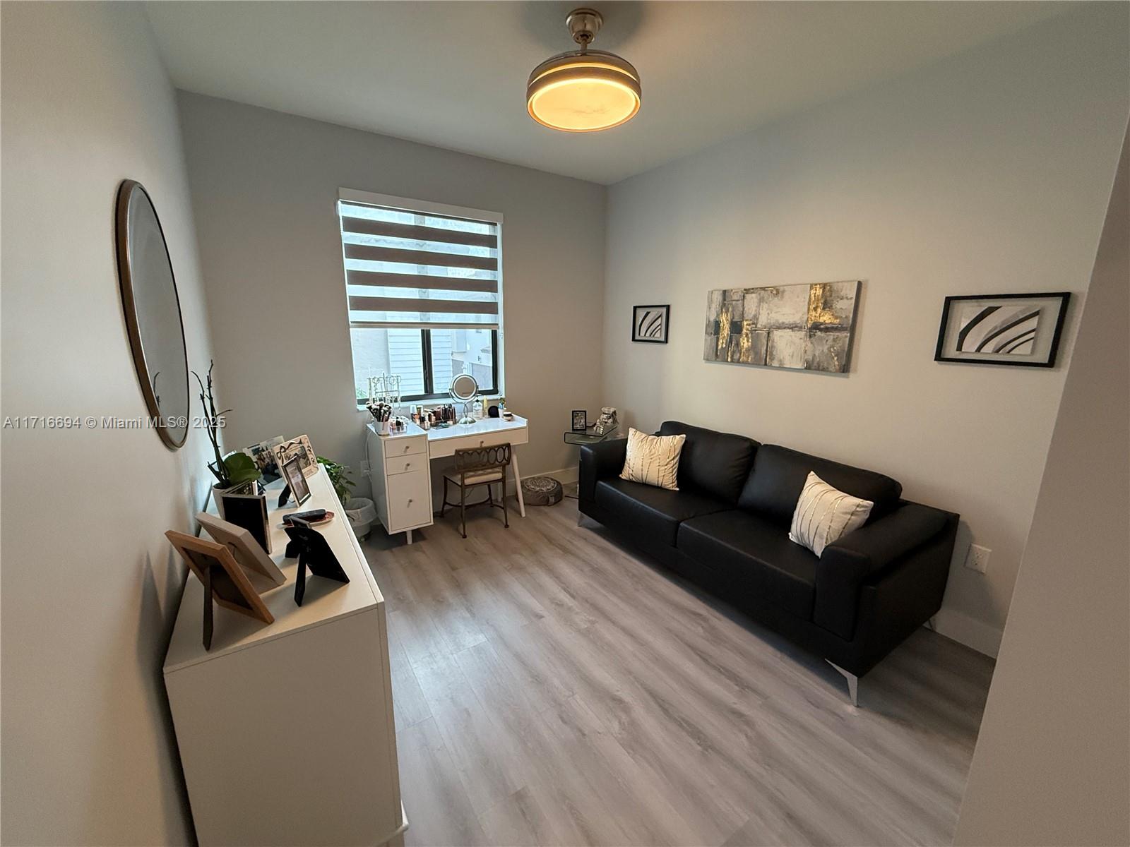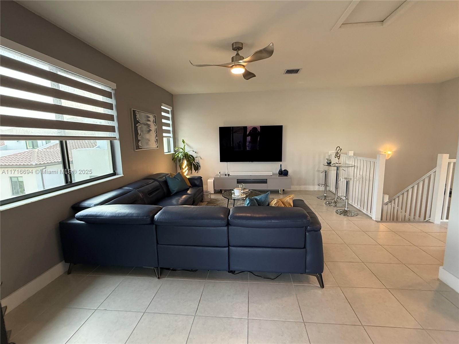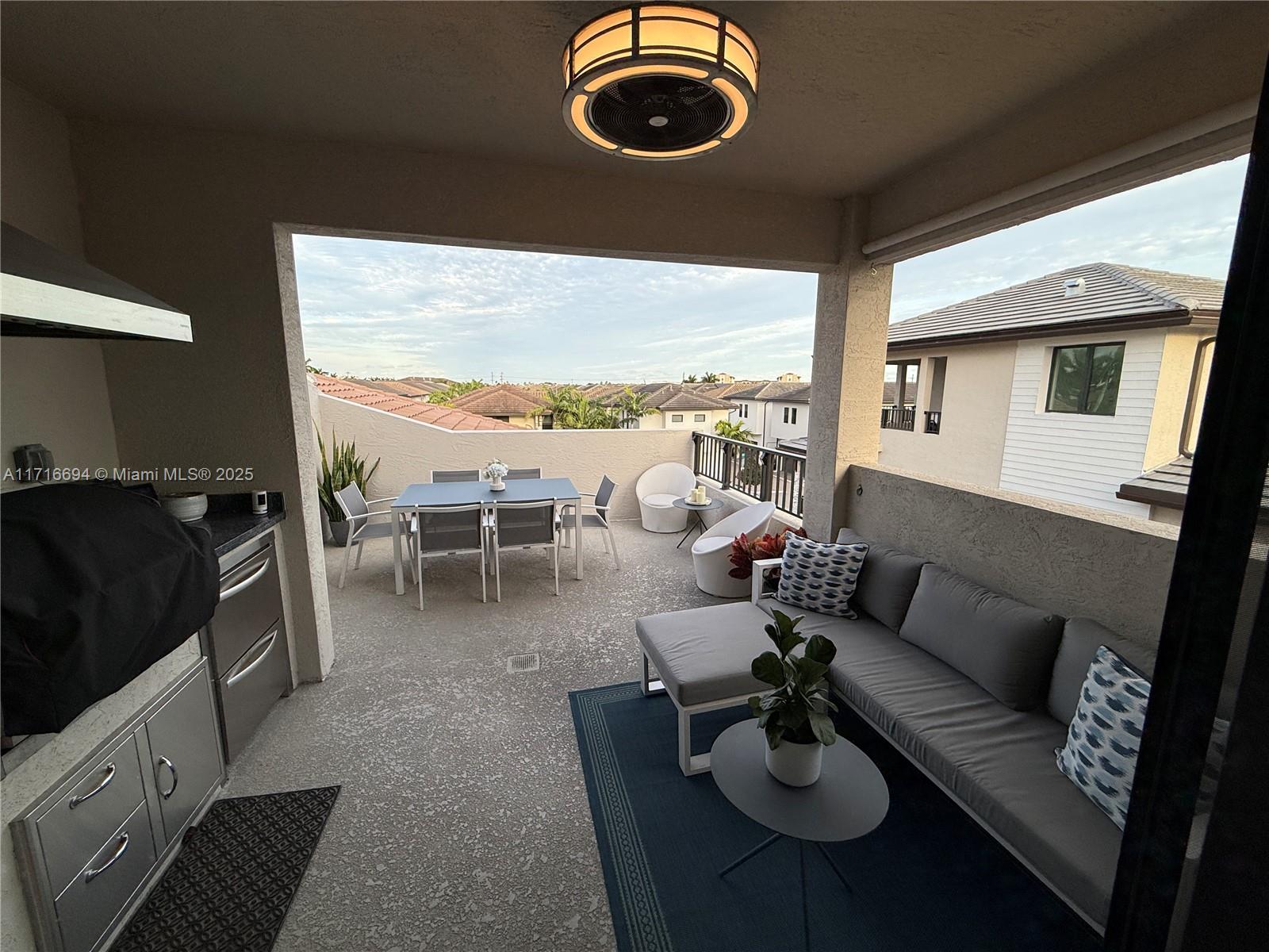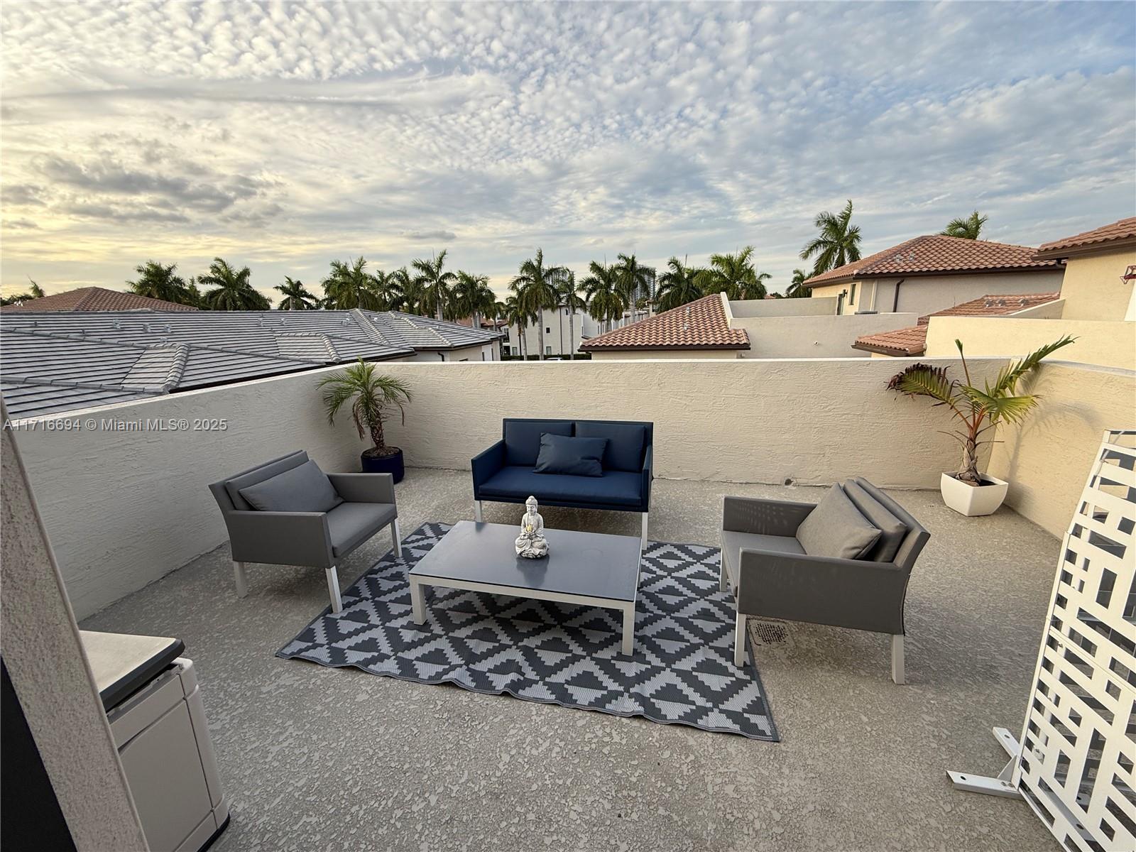 Upgraded luxury 3 story corner townhouse with two roof top terraces. Views of the Paseo Urbana and downtown Doral Skyline. All new vinyl plank floor covering throughout living area on first and second floor with ceramic tiles on third floor and bathrooms. 3 full bedrooms with custom closets, 2 full bathrooms and two 1/2 bathrooms. Laundry area and pantry with custom built ins. Outdoor covered summer kitchen in 3rd floor terrace as well as a second open terrace. Custom floor covering in two car garage with custom storage shelfs. Wired for electric car charging. Smart home with both front door and garage door accessed from app as well as central AC, lights and security system.