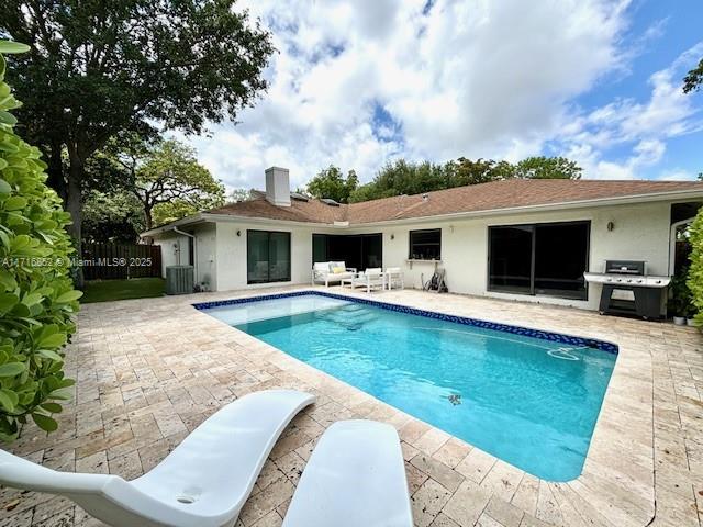 Welcome to this stunning 3-bedroom, 3-bathroom single-family home, fully remodeled and designed to impress! Located in a gated and well-maintained community, this home features sleek porcelain floors, modern bathrooms, and high-impact windows for added safety and style. The gourmet kitchen is equipped with premium Bosch appliances, while the primary suite boasts an oversized custom closet. Step outside to a private oasis with a sparkling pool and spacious patio, perfect for entertaining. With a double garage and space to park two additional cars, this home offers both luxury and convenience. Ideally situated near top schools, shopping, and within walking distance to churches, this property is the perfect blend of comfort and accessibility!