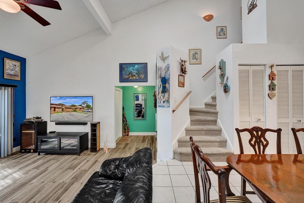 Big Price Reduction! Welcome to Reflections: A beautiful & tranquil community nestled in the heart of Davie! This inviting 2 bedroom, 2 bathroom home boasts 1,336 sq. ft. of bright and airy living space. As you step inside, you'll be captivated by the high soaring ceilings and abundant natural light. The main floor features a versatile bedroom and full bathroom, perfect for guests, children or a home office. The upstairs primary suite offers a peaceful retreat with a large walk in closet, remodeled ensuite bathroom & private balcony. Enjoy your morning coffee on the screened porch with stunning lake views & relaxing breezes. This charming home is ideally located near Bamford Park and just minutes from Nova, shoppes & restaurants. FHA & VA welcome!