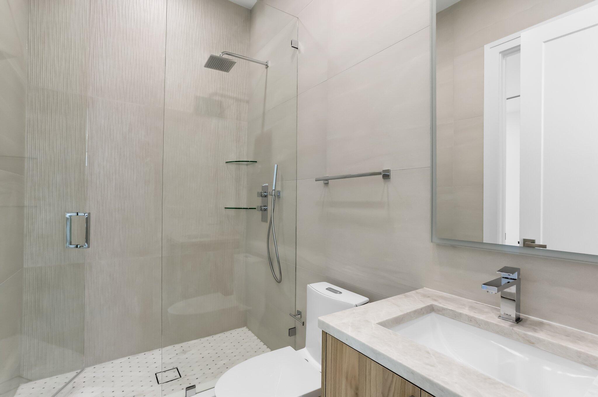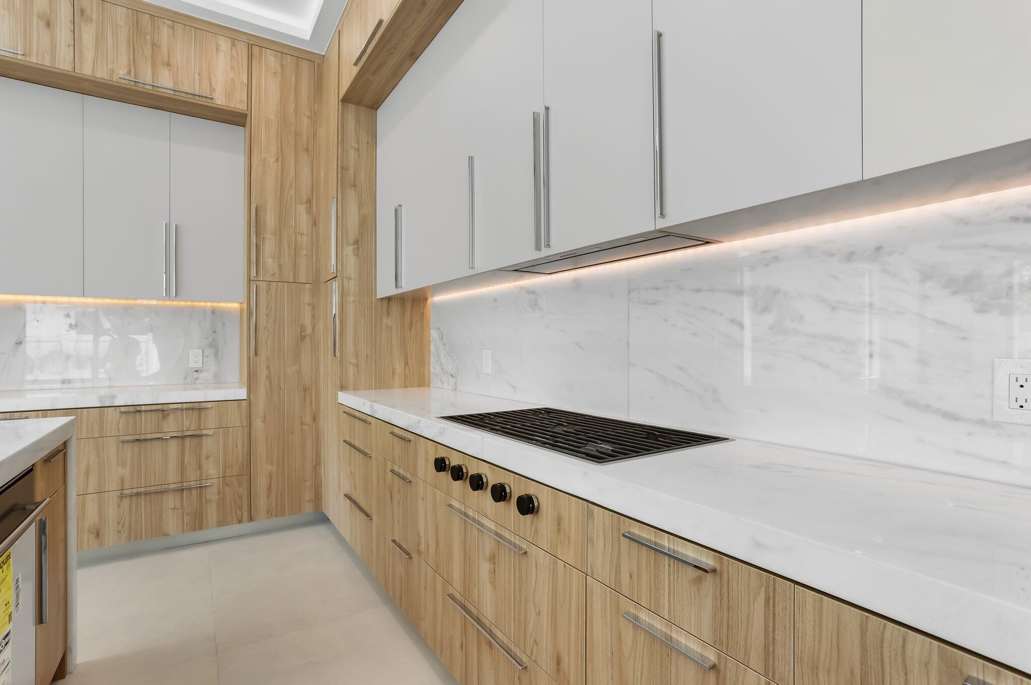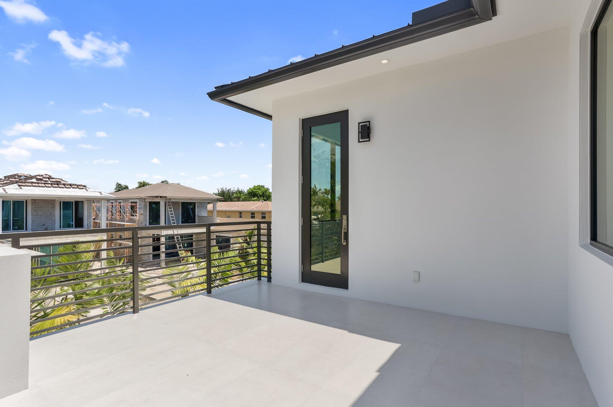 Newly constructed luxury residence with soaring ceilings, impact windows, a metal roof, and porcelain tile throughout. Features include an elevator, CAT6 wiring, Wolf & Sub-Zero kitchen appliances, natural stone waterfall island, and custom 8' doors. The spa-like primary bath offers a frameless shower, soaking tub, and designer finishes. Outdoors: a complete kitchen, marble paver patio, saltwater pool with spa, and privacy fencing. Additional highlights: dual-zone HVAC, smart home prewiring, 2-car garage with tiled floor, and full outdoor kitchen. Don't miss out on this opportunity for luxurious urban living.