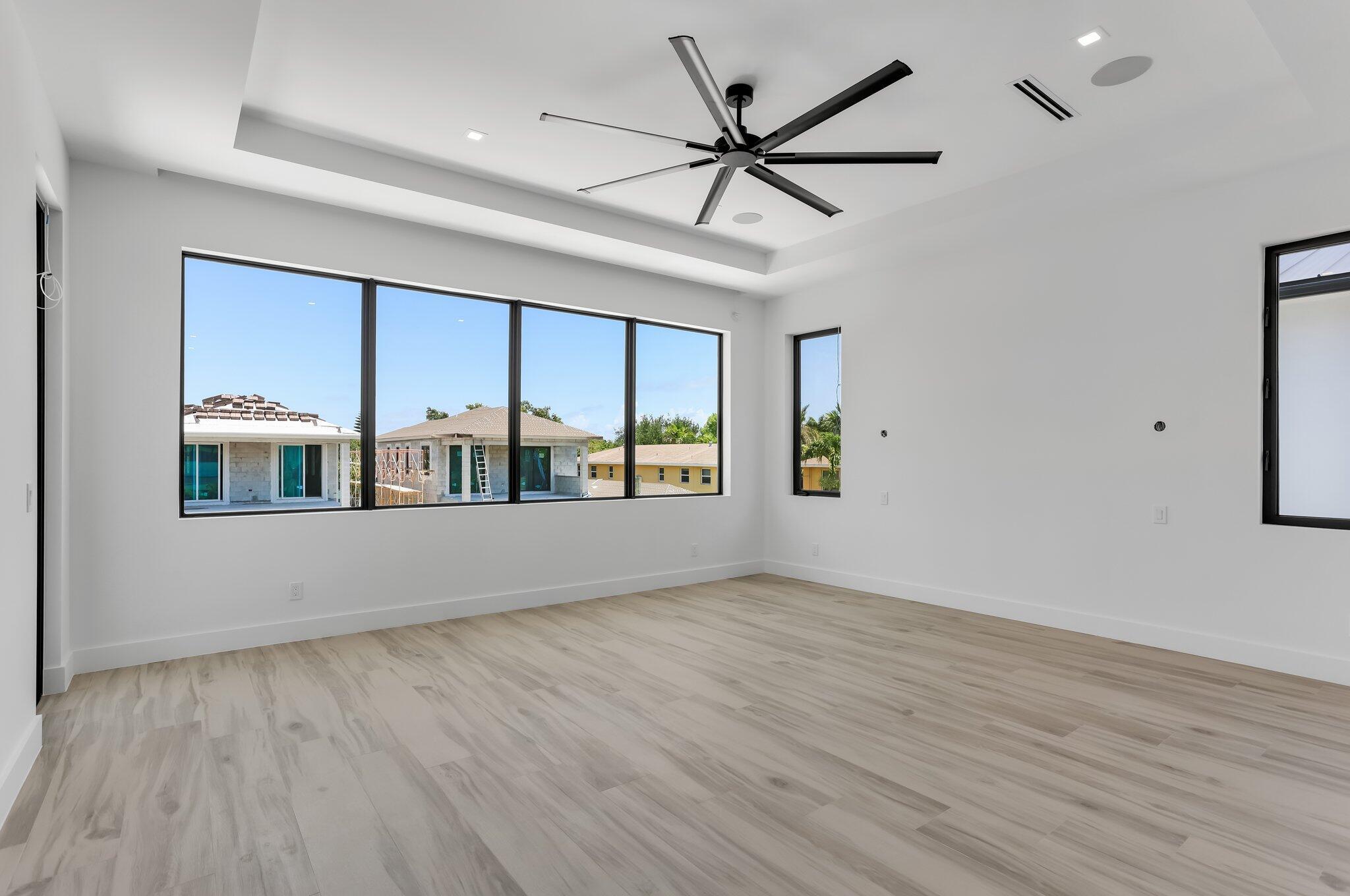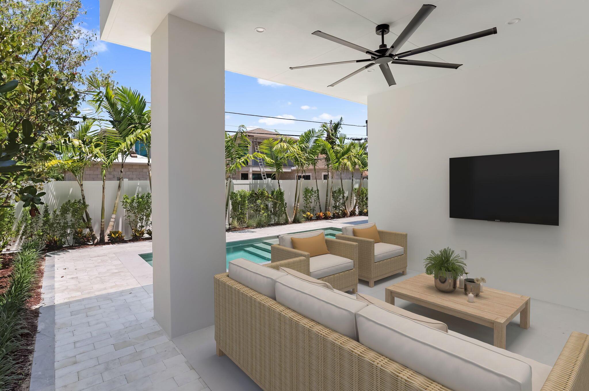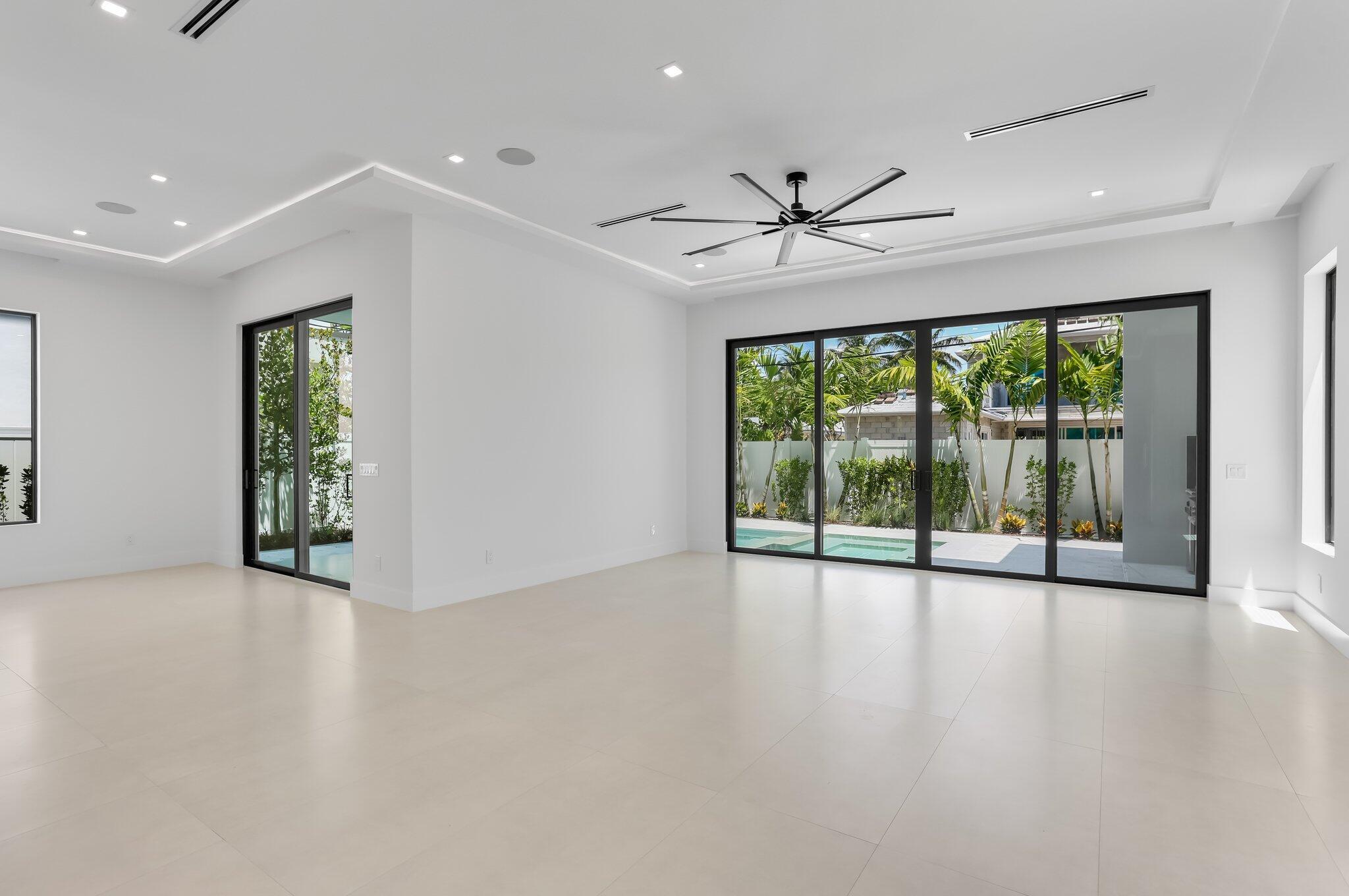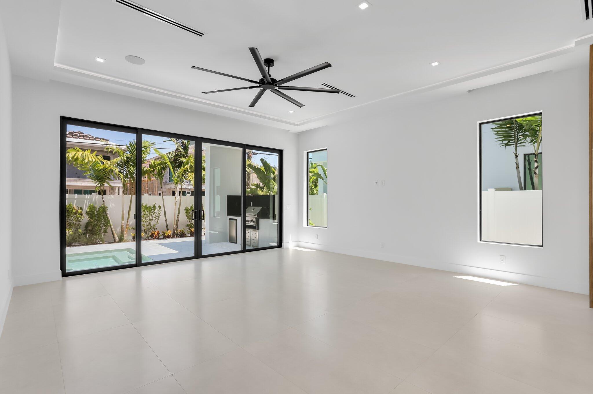 Newly constructed luxury residence with soaring ceilings, impact windows, a metal roof, and porcelain tile throughout. Features include an elevator, CAT6 wiring, Wolf & Sub-Zero kitchen appliances, natural stone waterfall island, and custom 8' doors. The spa-like primary bath offers a frameless shower, soaking tub, and designer finishes. Outdoors: a complete kitchen, marble paver patio, saltwater pool with spa, and privacy fencing. Additional highlights: dual-zone HVAC, smart home prewiring, 2-car garage with tiled floor, and full outdoor kitchen. Don't miss out on this opportunity for luxurious urban living.
