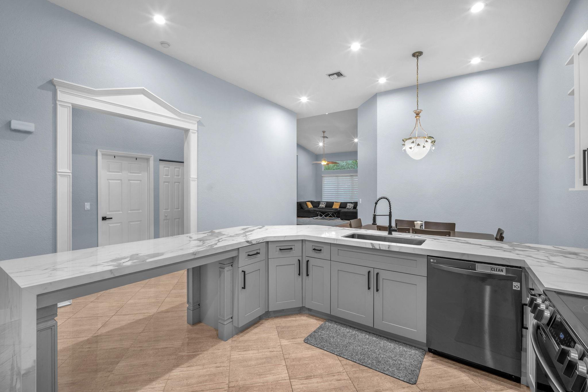 Newly-Renovated, single level Townhouse with four bedroom and 2.5 bathroom, in the community of Madison Lakes. Modern Features: - Open Concept: Perfect for hosting and entertaining, with a seamless flow between living, dining, and kitchen areas - Gourmet Kitchen: Completely renovated modern sleek design - Luxurious Bathrooms: All bathrooms fully renovated - High Ceilings: Soaring ceilings and ample lighting - Versatile Garage Conversion: Converted into a 4th bedroom or living space - Fresh New Look: Newly painted interior Prime Location: - Top-Rated School District: Perfect for families, with access to highly-rated schools - Convenient Access: Close proximity to Nova University, Cooper City High school, and Florida Turnpike - Corner Unit: Providing extra privacy