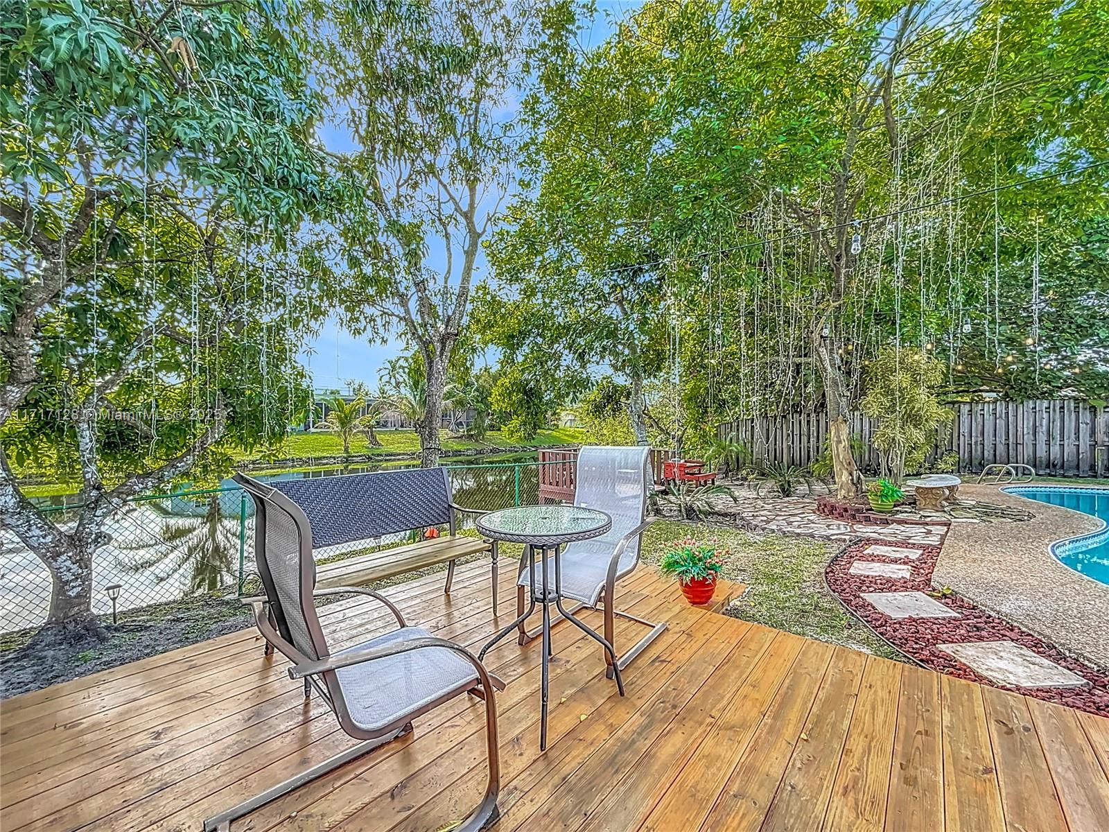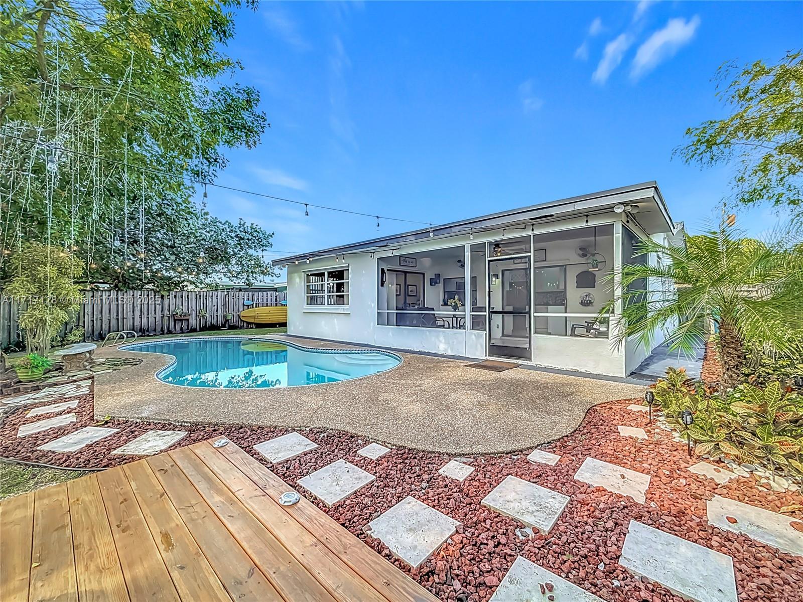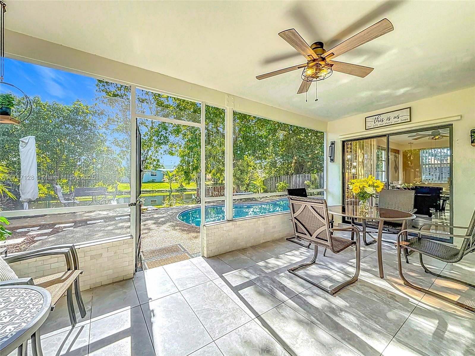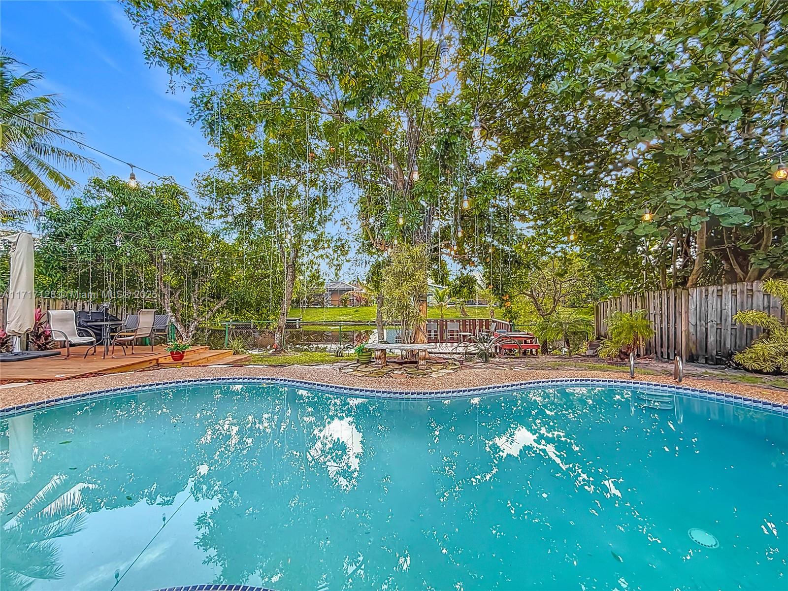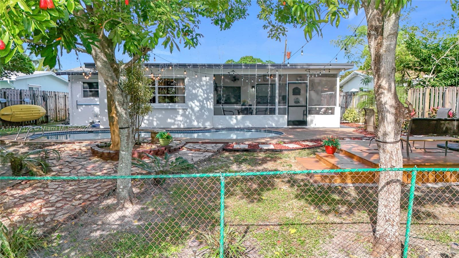 Step into this beautifully updated home featuring 3-bedroom, 2-bathroom with a spacious split floor plan with elegant tile flooring throughout. The updated bathrooms and kitchen feature newer appliances and modern finishes. The large fenced backyard is a private oasis with a dock, a designed landscaping with trees, and a well-maintained pool. The large screened patio provides a serene water view for relaxing or entertaining. Additional features include a 1-car garage, circular driveway, and windows equipped with hurricane shutters. Don’t miss this move-in-ready home in a fantastic Sunrise location with no HOA!!!! Schedule your showing today—it won’t last! Call LA