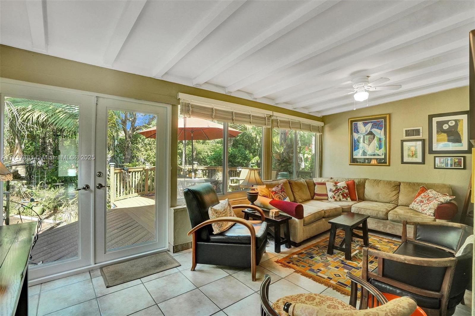 A tropical oasis on oversized lot in central Miami Shores just blocks away from the commercial district and the Little River/Citadel areas. This home is lushly landscaped with predominantly native flora. Three large bedrooms, updated kitchen and Florida room that has a panoramic view of the backyard and spacious deck give you a sense of suburban living while being minutes from beaches, downtown Miami and the airports. Plenty of room for a pool. Convenient one car garage with extra storage room. Seller willing to contribute toward Buyer's interest buy down or closing costs... Agent/owner