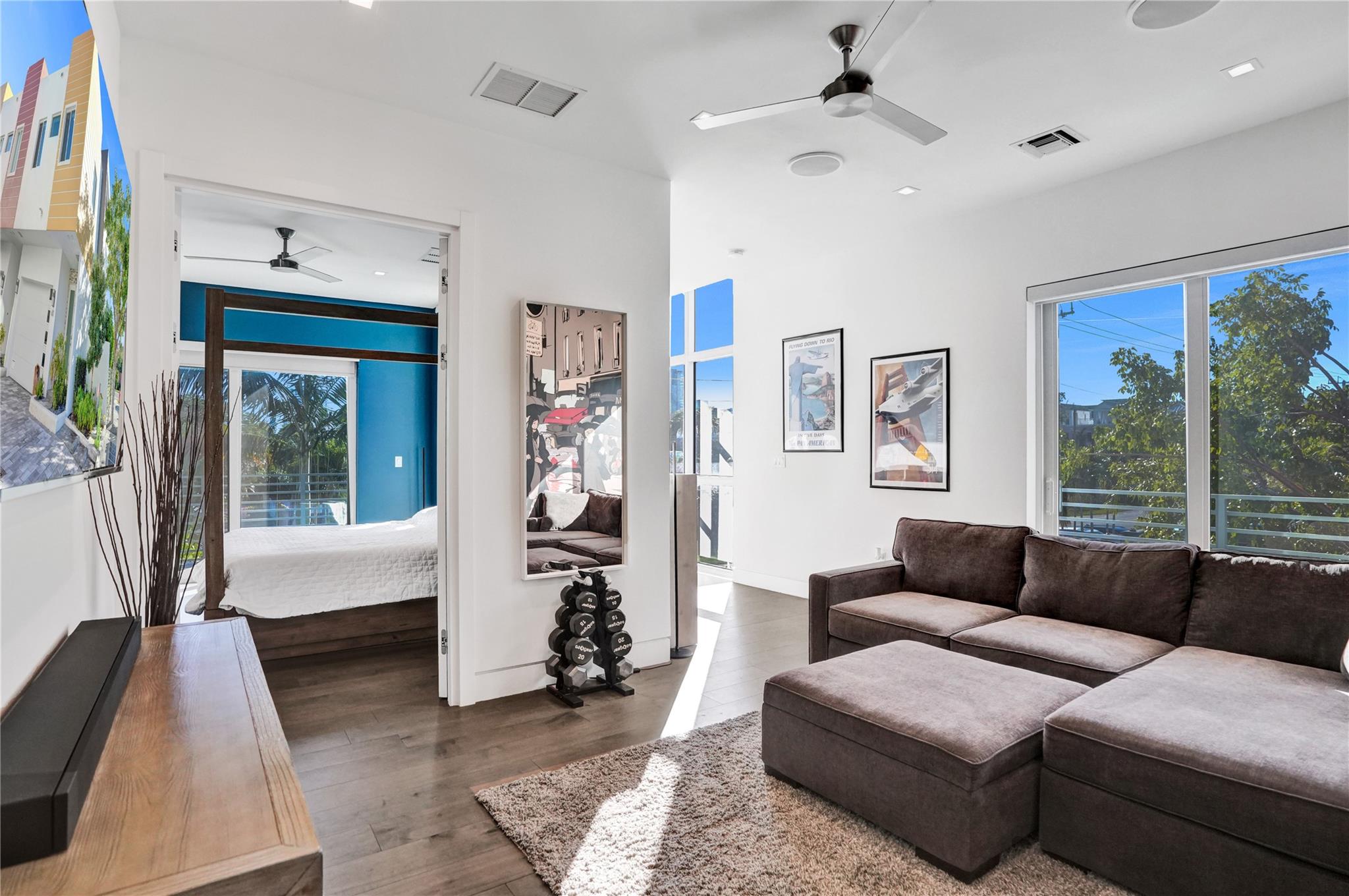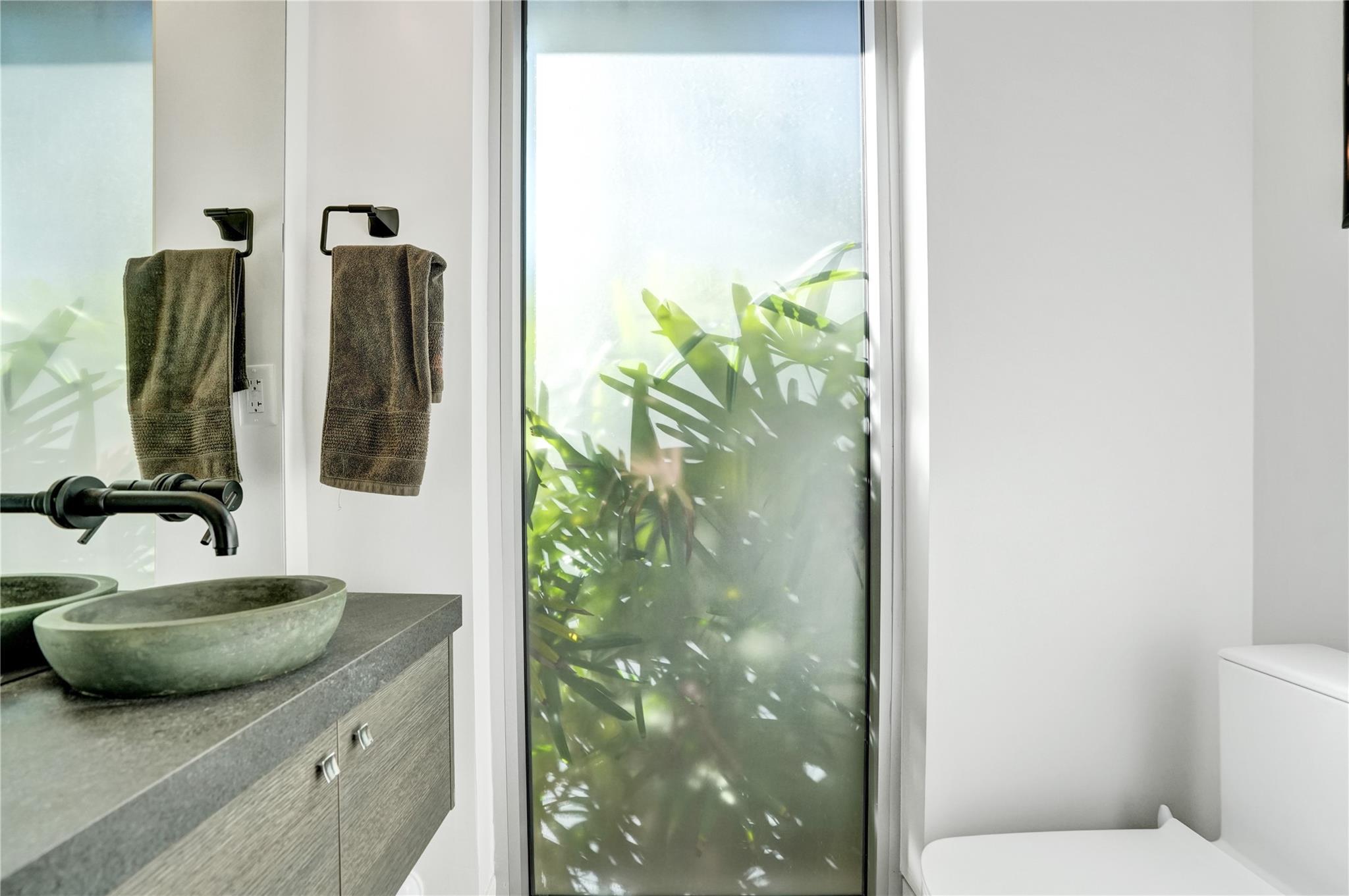 Glass at Victoria Park is an exclusive, 8-unit contemporary community with unmatched convenience steps from restaurants, shopping, fitness centers, & entertainment. An open floor plan corner unit, soaring 10ft ceilings, and stunning two-story glass walls blur the line between indoor and outdoor living. Designed with the future in mind; a tankless gas water heater, cooktop, dryer, SS Jenn Air appliances, and sustainable Dell Anno cabinetry & smart home technology throughout. Outside: connections for a pool, and summer kitchen. Upstairs, ensuite bedrooms & additional stylish second-floor loft/media room. The primary suite is a true retreat w/spacious walk-in closet, a luxurious spa-inspired bathroom with a wet area & a private covered balcony. "A" rated elementary & high school.