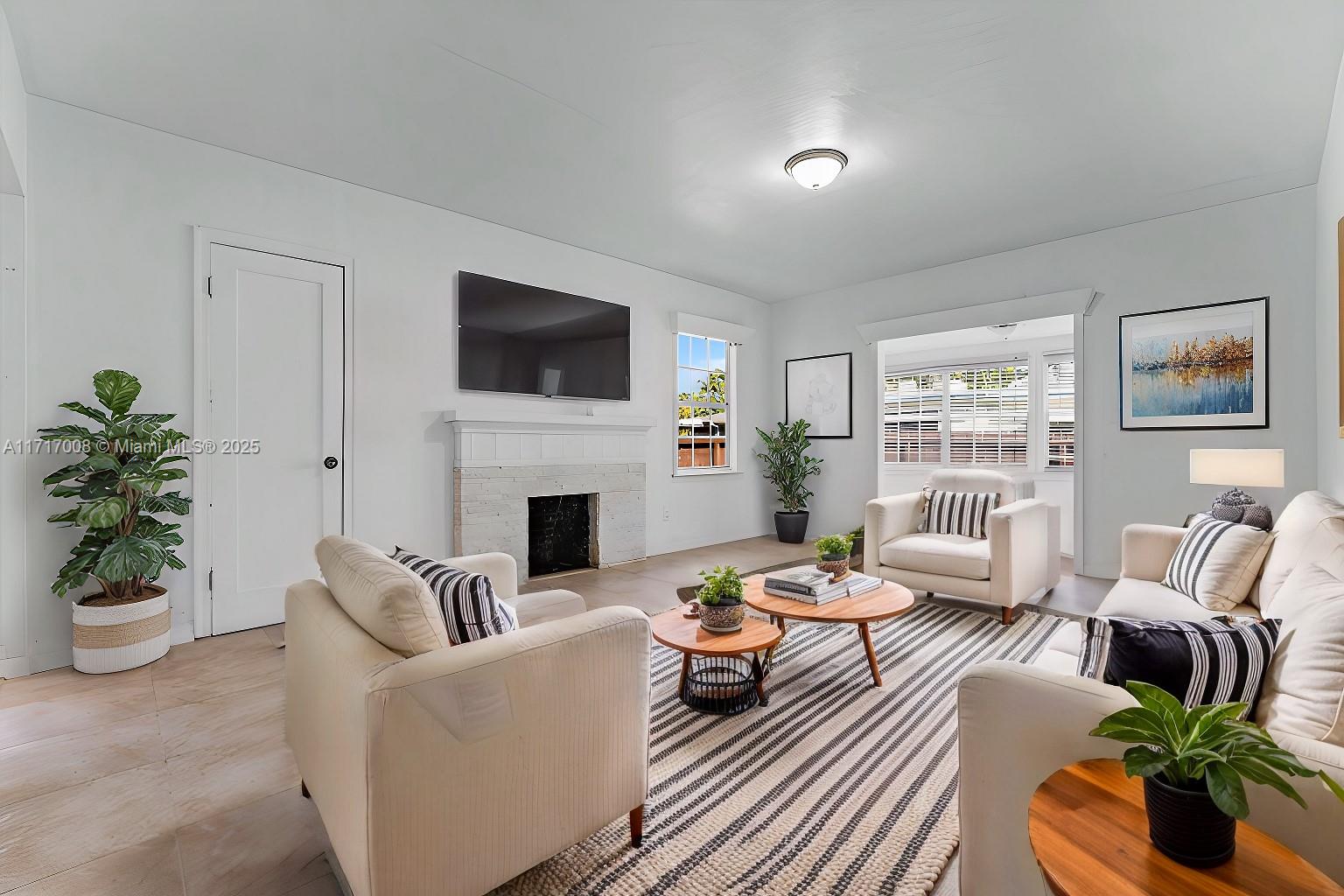 This beautifully remodeled home features new floors throughout, with the original charm of wood floors in the bedrooms. The updated kitchen is a chef's dream, complete with modern appliances and a convenient wet bar with a mini fridge, perfect for entertaining. The cozy living room features a real wood fireplace, adding warmth and character to the space. The guest bathroom has been completely renovated for a fresh, modern feel. Step outside to the oversized backyard, fully fenced for privacy, and enjoy the brand new deck—ideal for outdoor dining or relaxation. Located in the heart of Hollywood, this home is just a short 10 minute drive to the beach, Hallandale, and Aventura, and offers the added benefit of NO HOA. A perfect blend of comfort, style, and location—schedule your showing today!