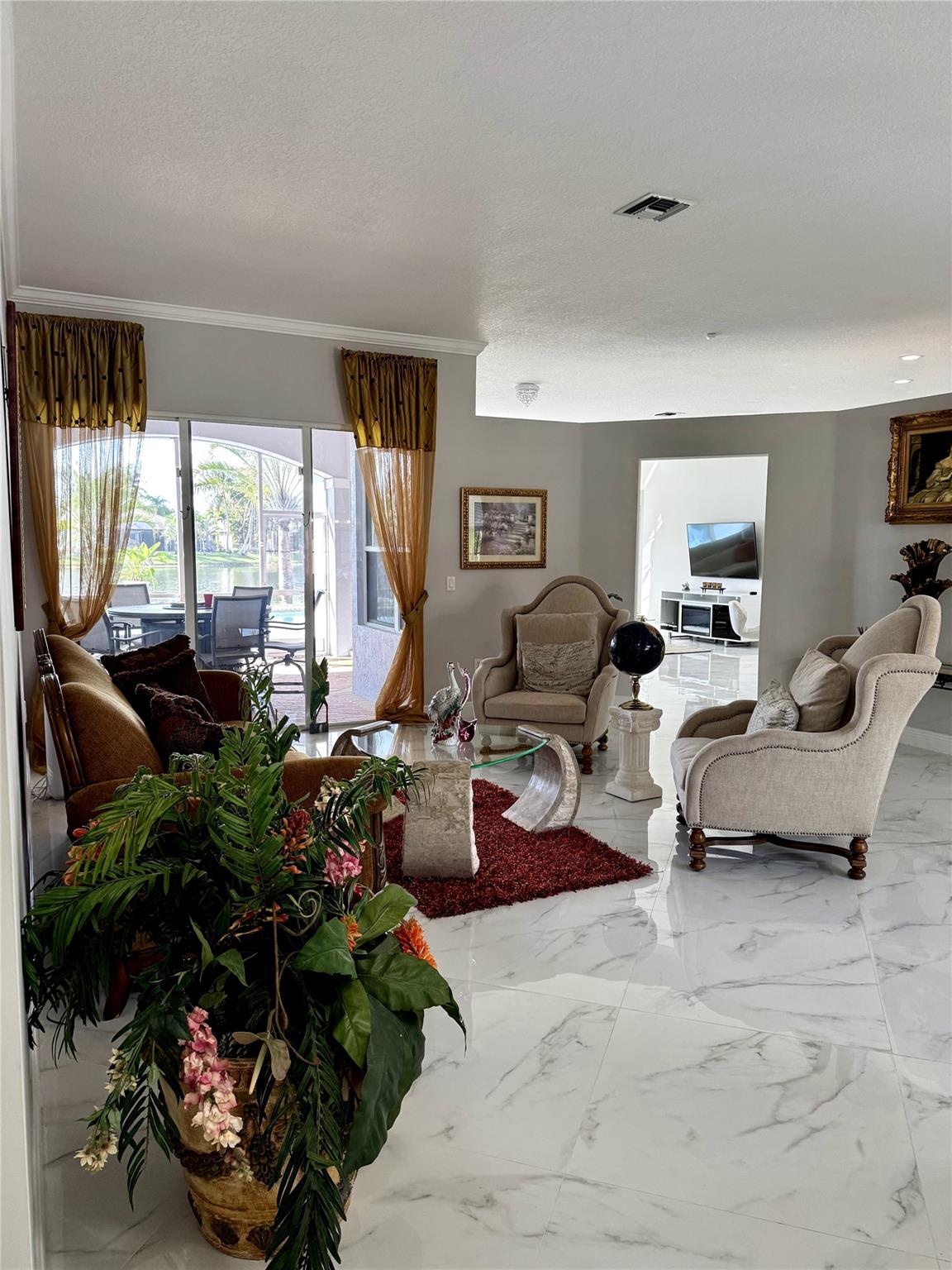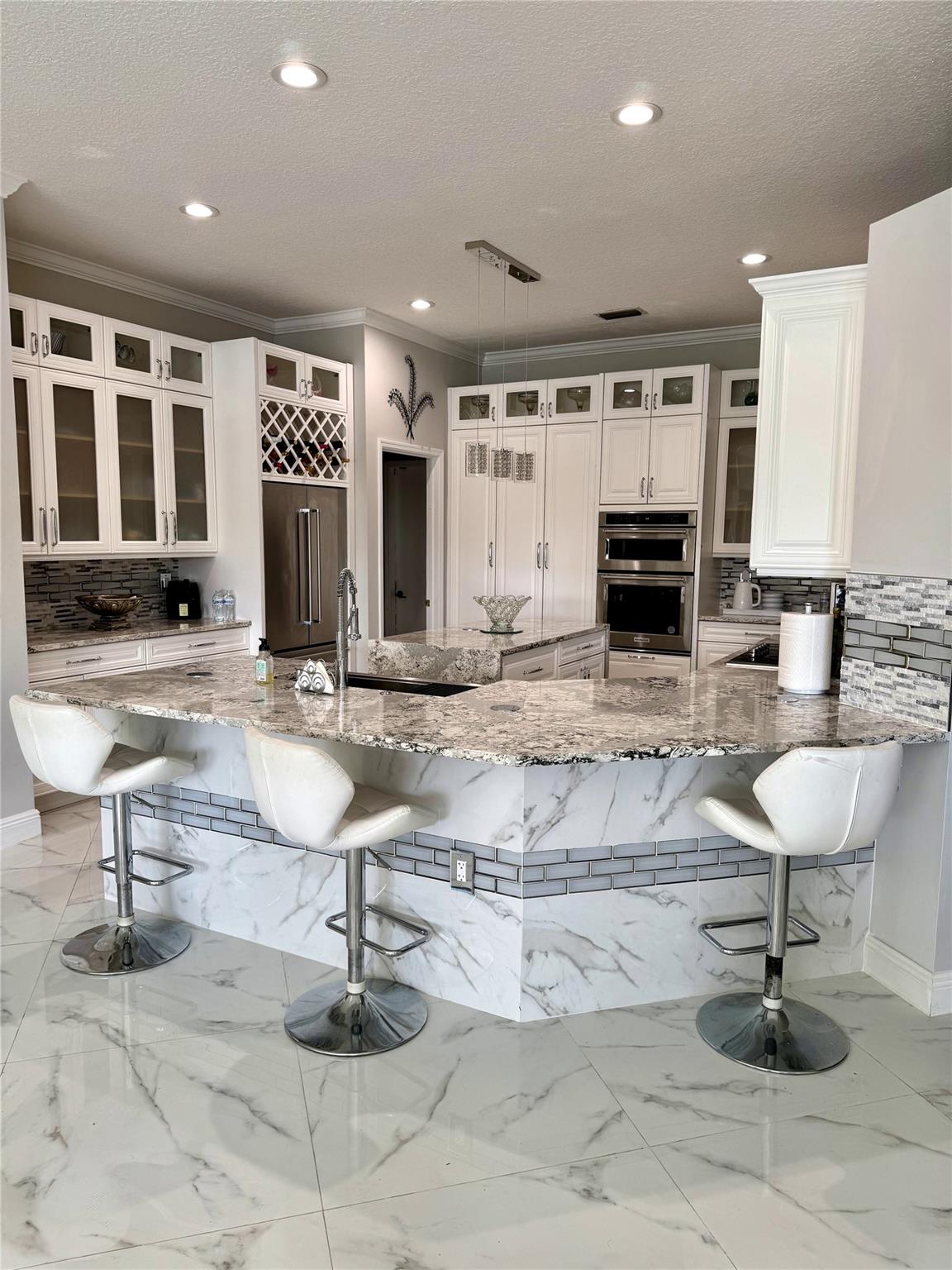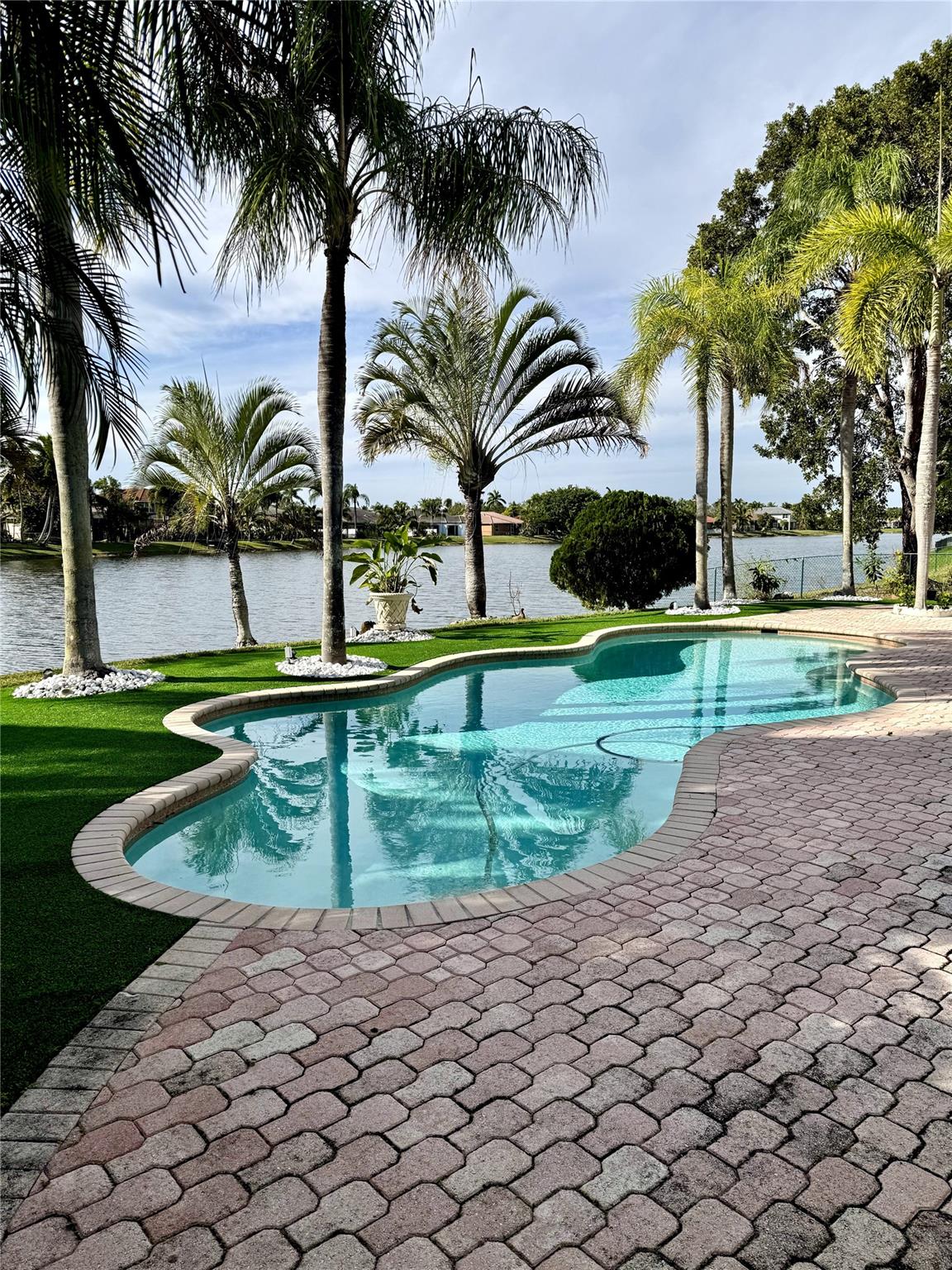 Discover this exquisite single-family home in the coveted Estates of Pembroke Shores neighborhood. Meticulously upgraded, this 4-bedroom, 3-bathroom residence features elegant marble flooring throughout and offers both privacy and luxury with a private pool and stunning waterfront access. The kitchen is a chef’s dream, complete with a large island, bar seating, high-end stainless steel appliances, and a dedicated coffee bar. The remodeled bathrooms exude sophistication, with the master suite showcasing a spa-inspired bathroom with a deep soaking tub and expansive walk-in shower. Outside, you'll find a tropical retreat with a covered patio, and a sparkling pool. This home seamlessly blends modern upgrades with tranquil waterfront living in one of Pembroke Pines' most desirable communities.