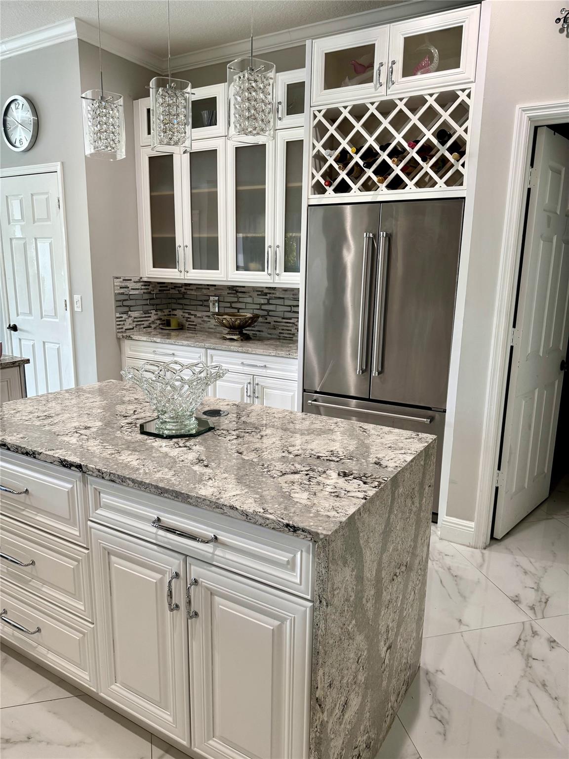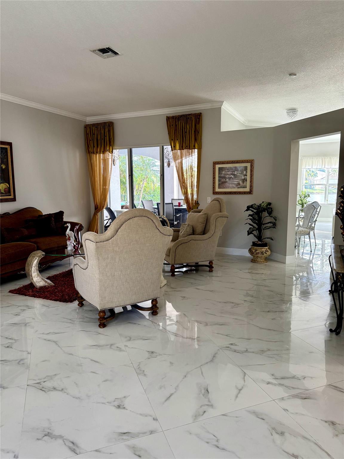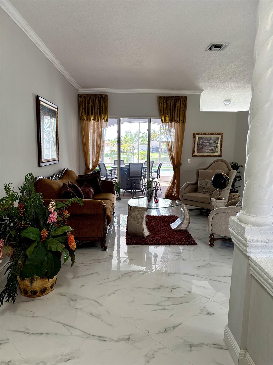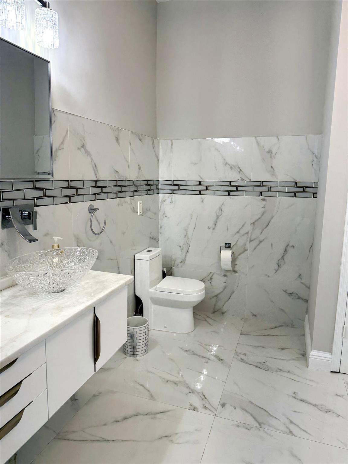 Discover this exquisite single-family home in the coveted Estates of Pembroke Shores neighborhood. Meticulously upgraded, this 4-bedroom, 3-bathroom residence features elegant marble flooring throughout and offers both privacy and luxury with a private pool and stunning waterfront access. The kitchen is a chef’s dream, complete with a large island, bar seating, high-end stainless steel appliances, and a dedicated coffee bar. The remodeled bathrooms exude sophistication, with the master suite showcasing a spa-inspired bathroom with a deep soaking tub and expansive walk-in shower. Outside, you'll find a tropical retreat with a covered patio, and a sparkling pool. This home seamlessly blends modern upgrades with tranquil waterfront living in one of Pembroke Pines' most desirable communities.