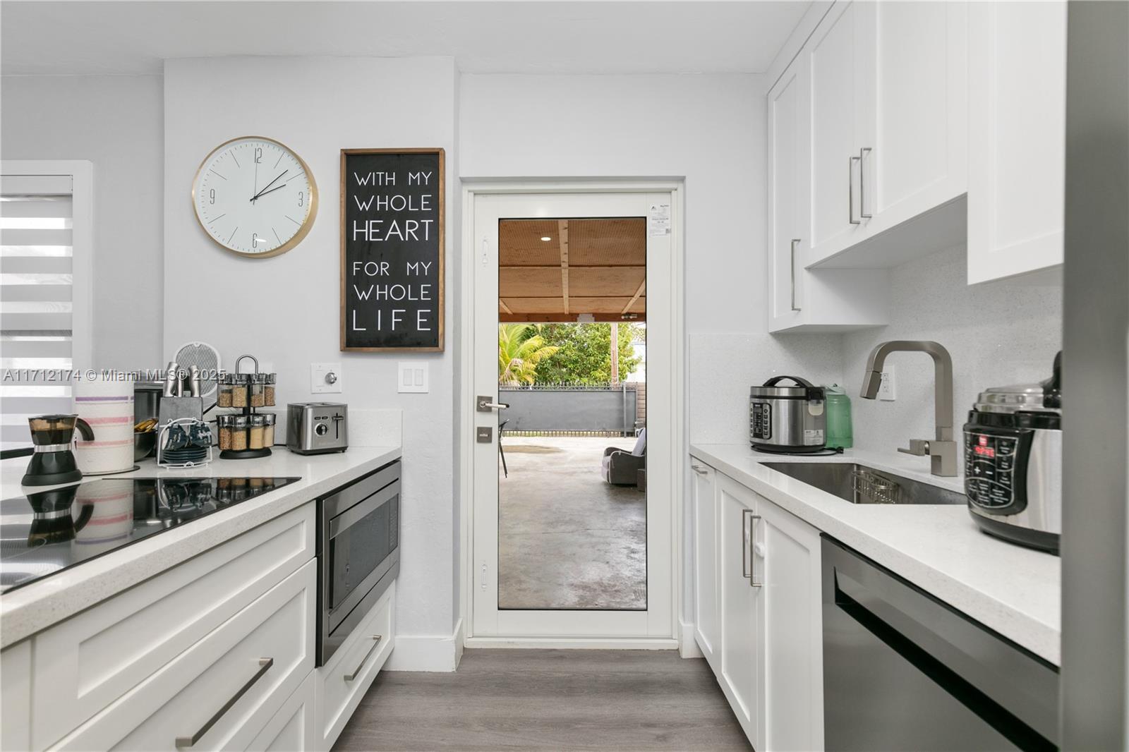 This beautifully remodeled 2-bedroom, 2-bathroom home is located in the highly sought-after city of Miami Springs. The home features brand-new flooring throughout, impact windows and doors for added safety and efficiency, and a completely updated interior. The fenced backyard offers privacy and includes a spacious terrace, perfect for outdoor entertaining or relaxing. The terrace is equipped with an electric gate and provides ample covered parking for multiple cars. Don’t miss the opportunity to own this stylish and functional property in a prime location!
